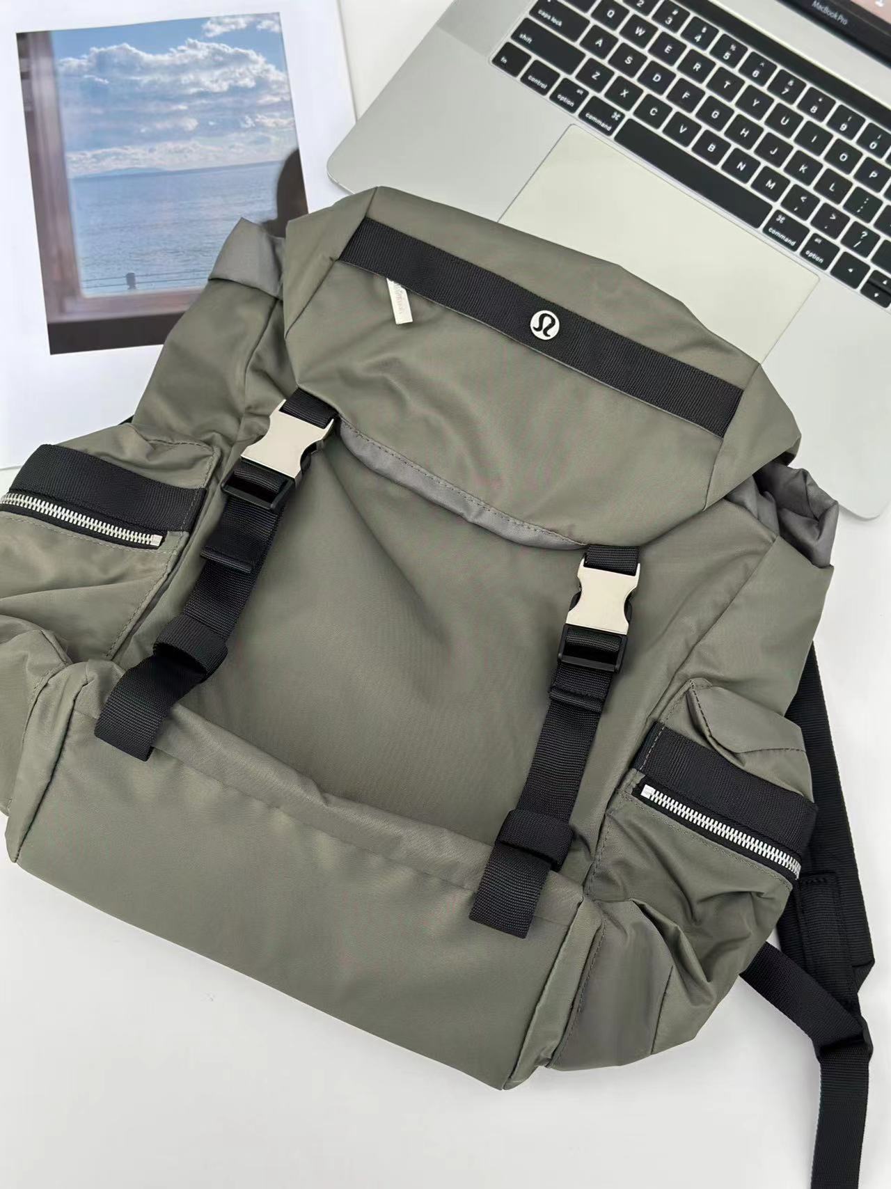 【Lululemon Wunderlust 14瑜伽健身书包运动休闲户外双肩背包】 设计理念: 日程满满的一天,正需要这款收纳空间充足的背包;开口处抽绳设计,方便取放物品,搭配卡扣闭合,安全封闭。 面料+特点: ✅ 面料不易被水沾湿 ✅侧面口袋设计,方便存取水壶和小物品 外侧拉链口袋 ✅外侧夹层可放置 16" 笔记本电脑 ✅外侧可调节环形绑带,可固定瑜伽垫或外套 ✅杆套设计,可固定于行李箱拉杆 ✅内侧口袋可分开存放汗湿衣物,规整有序 功能+版型: ✅尺寸: 25.5cm x 14cm x 35.5cm