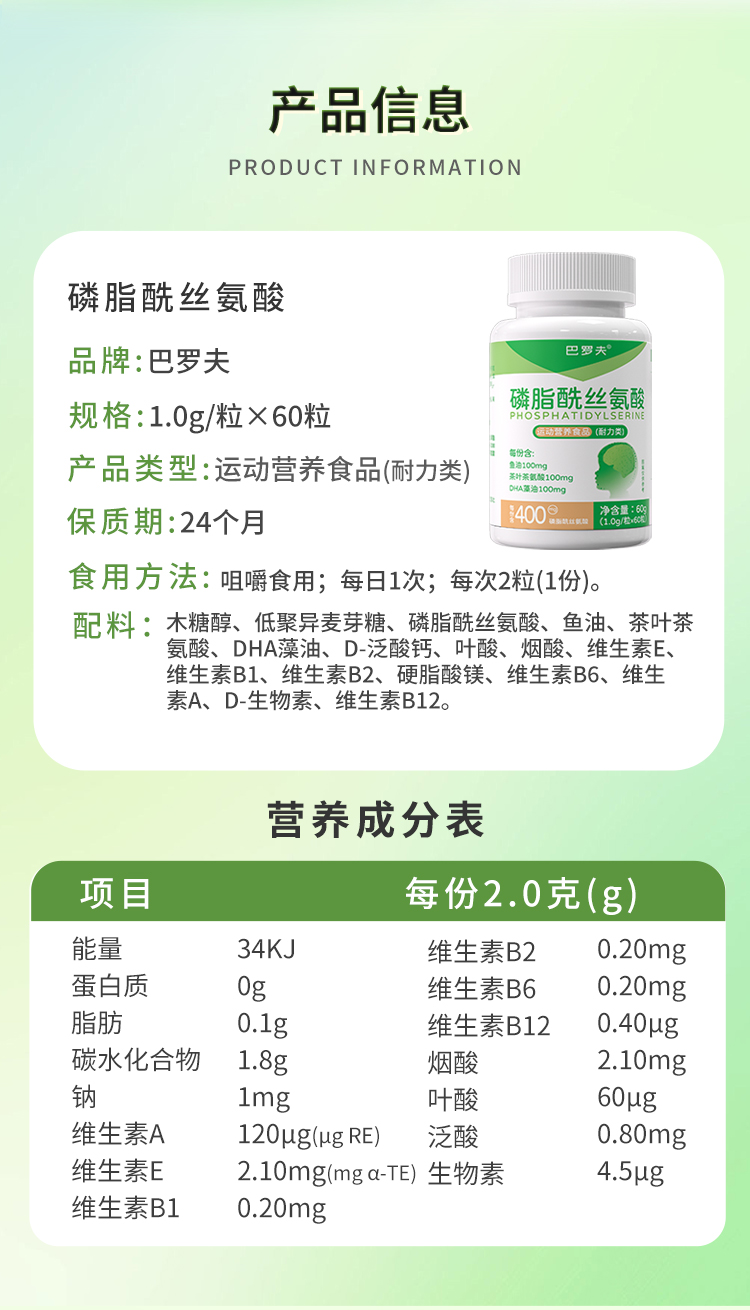 巴洛夫ps磷脂酰丝氨酸巴罗夫记忆专注力学生青少年学习动力巴罗芙