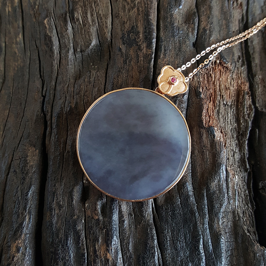 名称 | AU750玫瑰金镶天然细腻青海烟紫平安扣和田玉吊坠项链 |