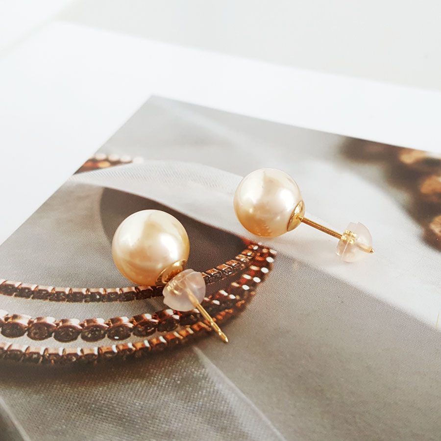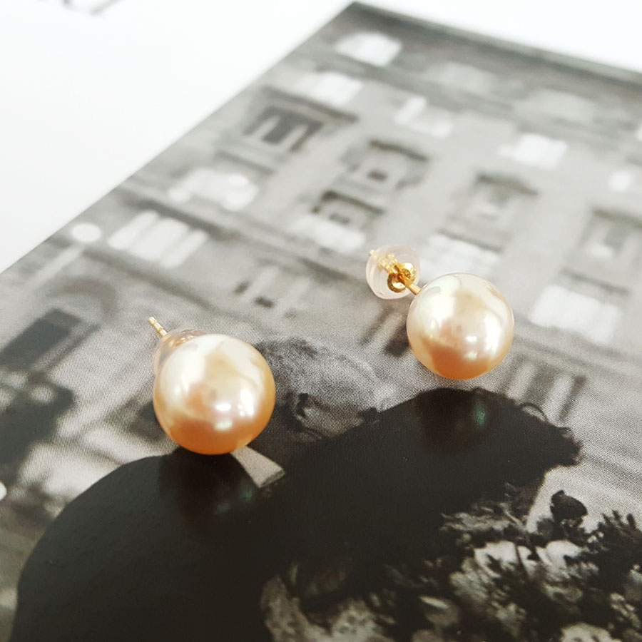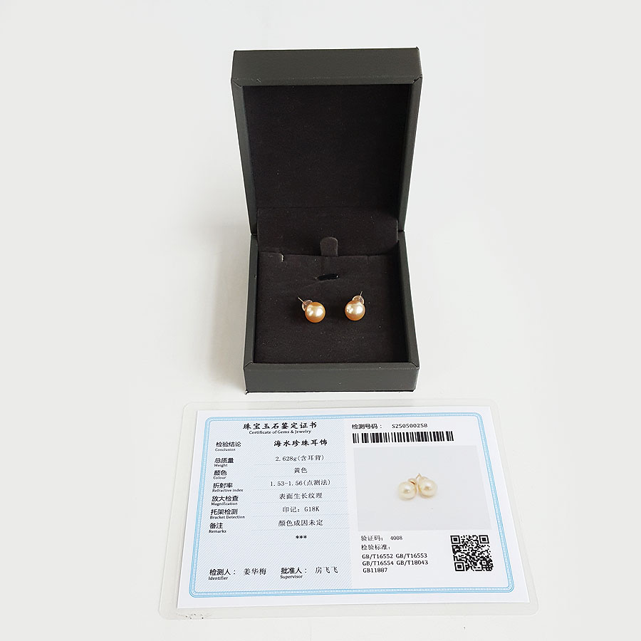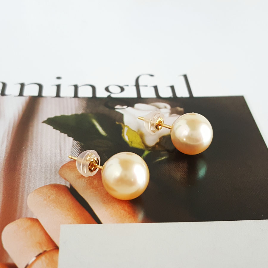 名称 | AU750黄金镶天然约9.2MM强晕彩香槟金色海水珍珠耳钉 |