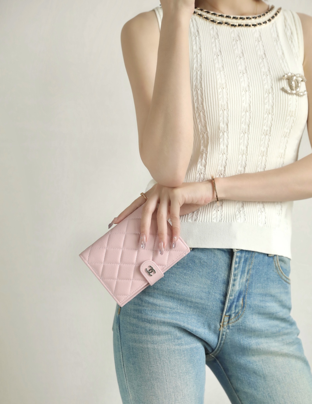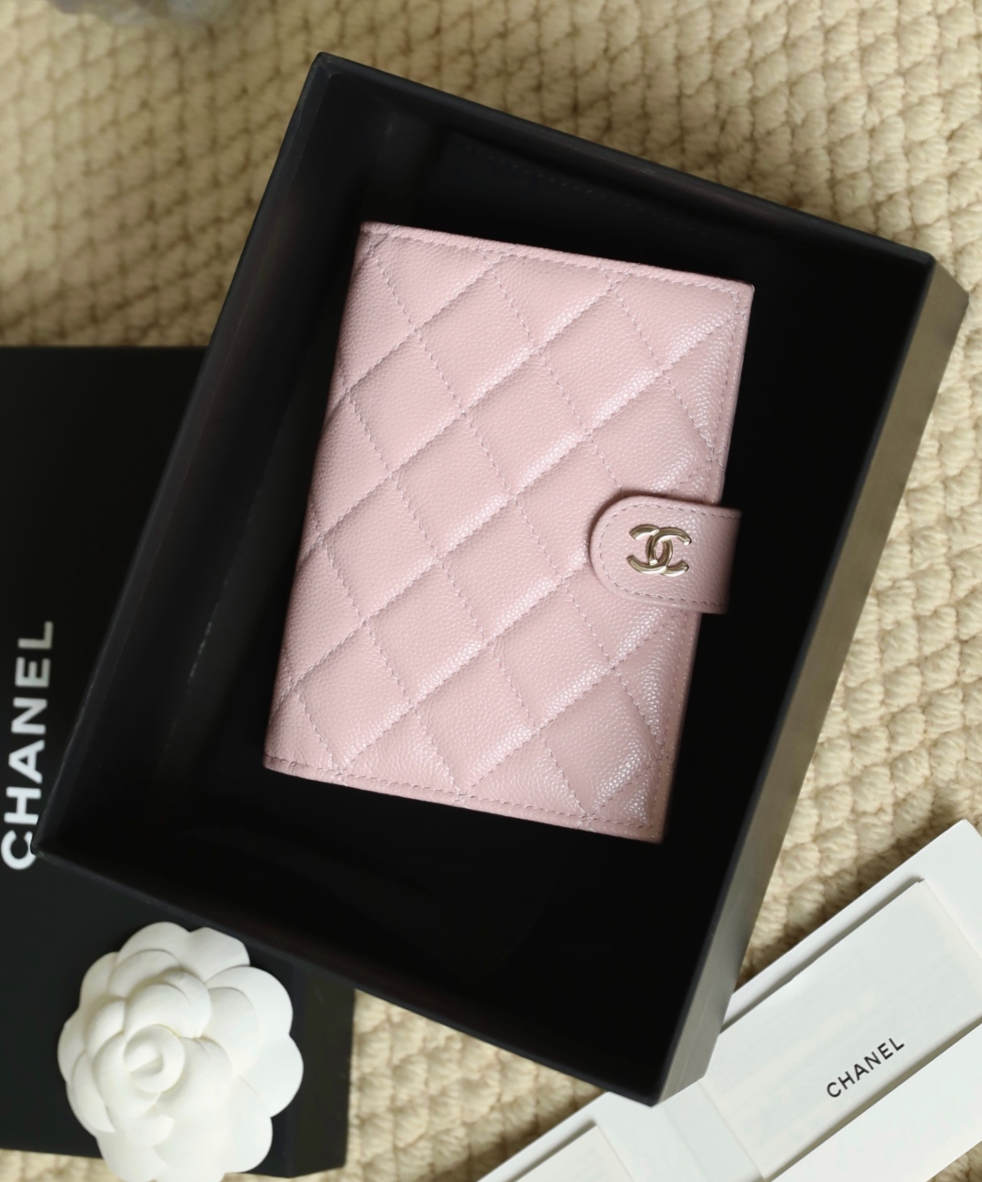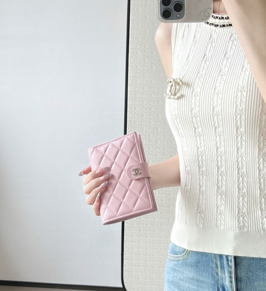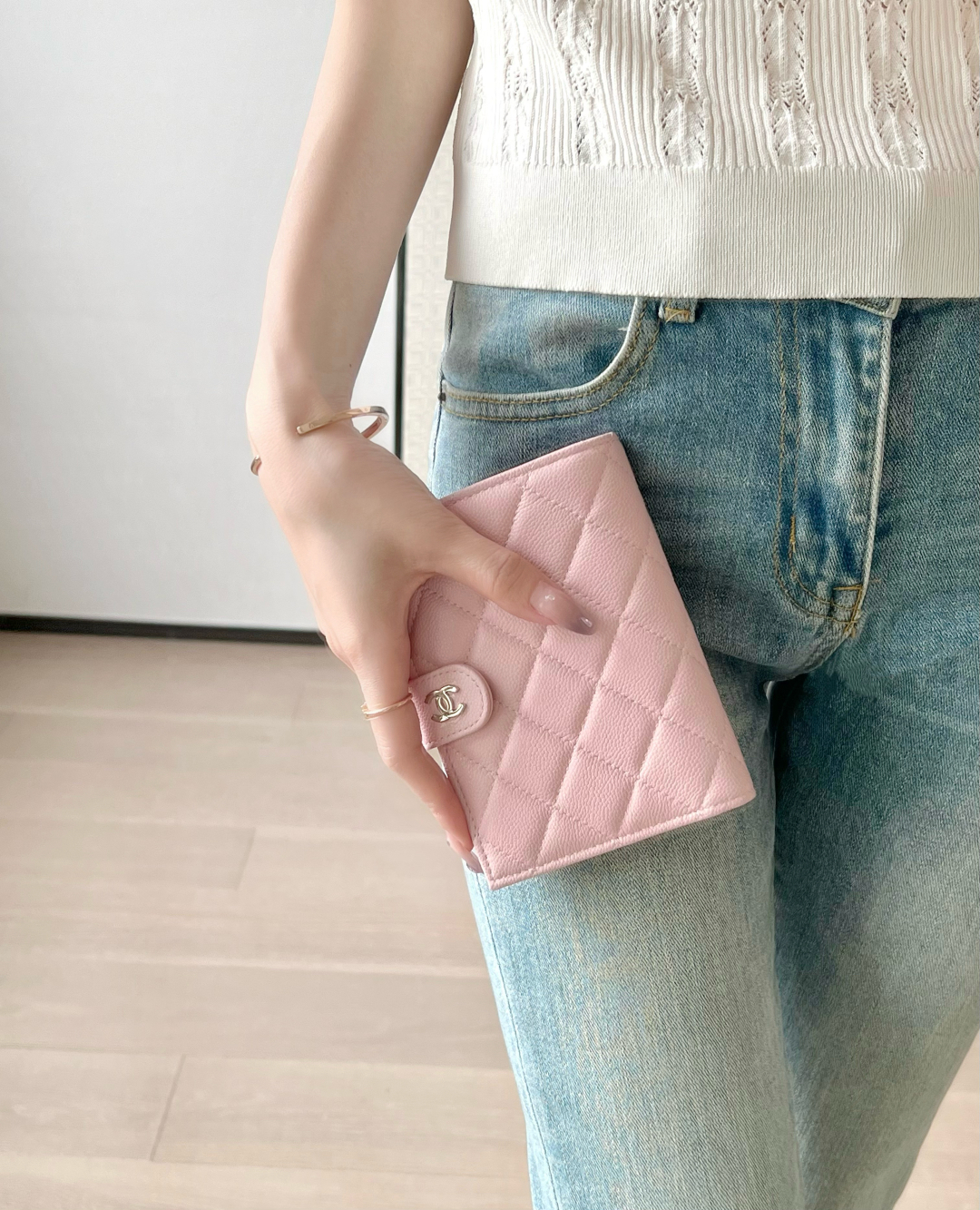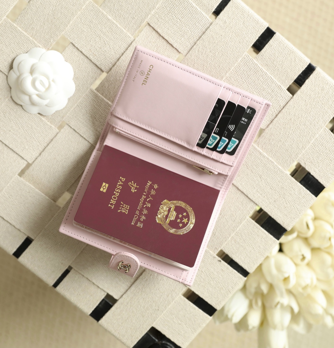 专柜售价𝟩𝟨𝟢𝟢𝗋𝗆𝖻购入开发~ 🔥火热上线𝖢𝗁𝖺𝗇𝖾𝗅按扣护照夹 中小球纹牛皮,邂逅粉色精致✨ 小巧𝖲𝗂𝗓𝖾轻松收纳护照、登机牌、 信用卡等...旅行必备〰️ 让你在旅途中也能保持优雅从容。