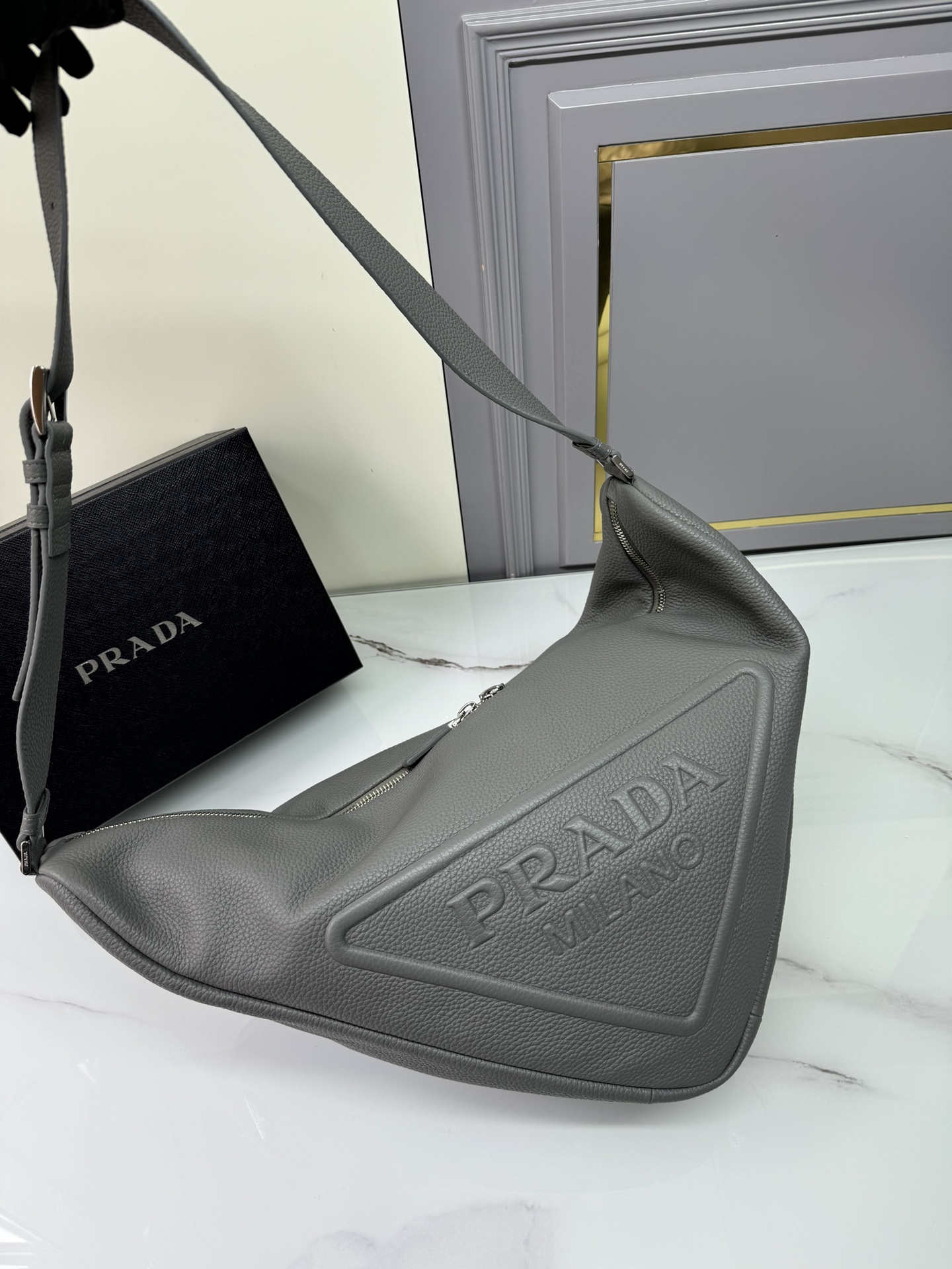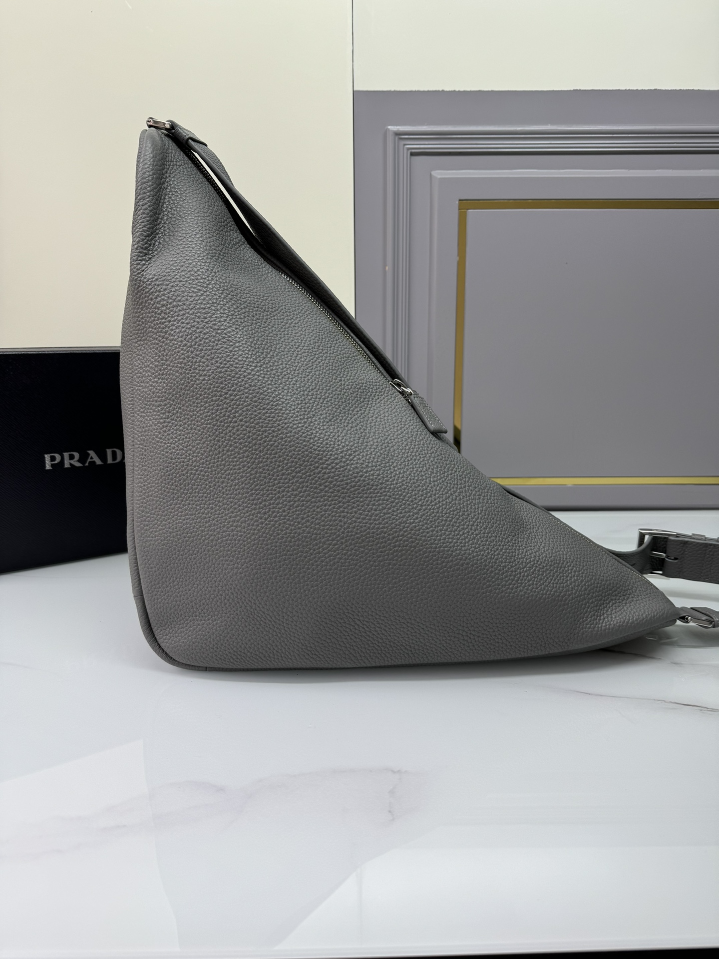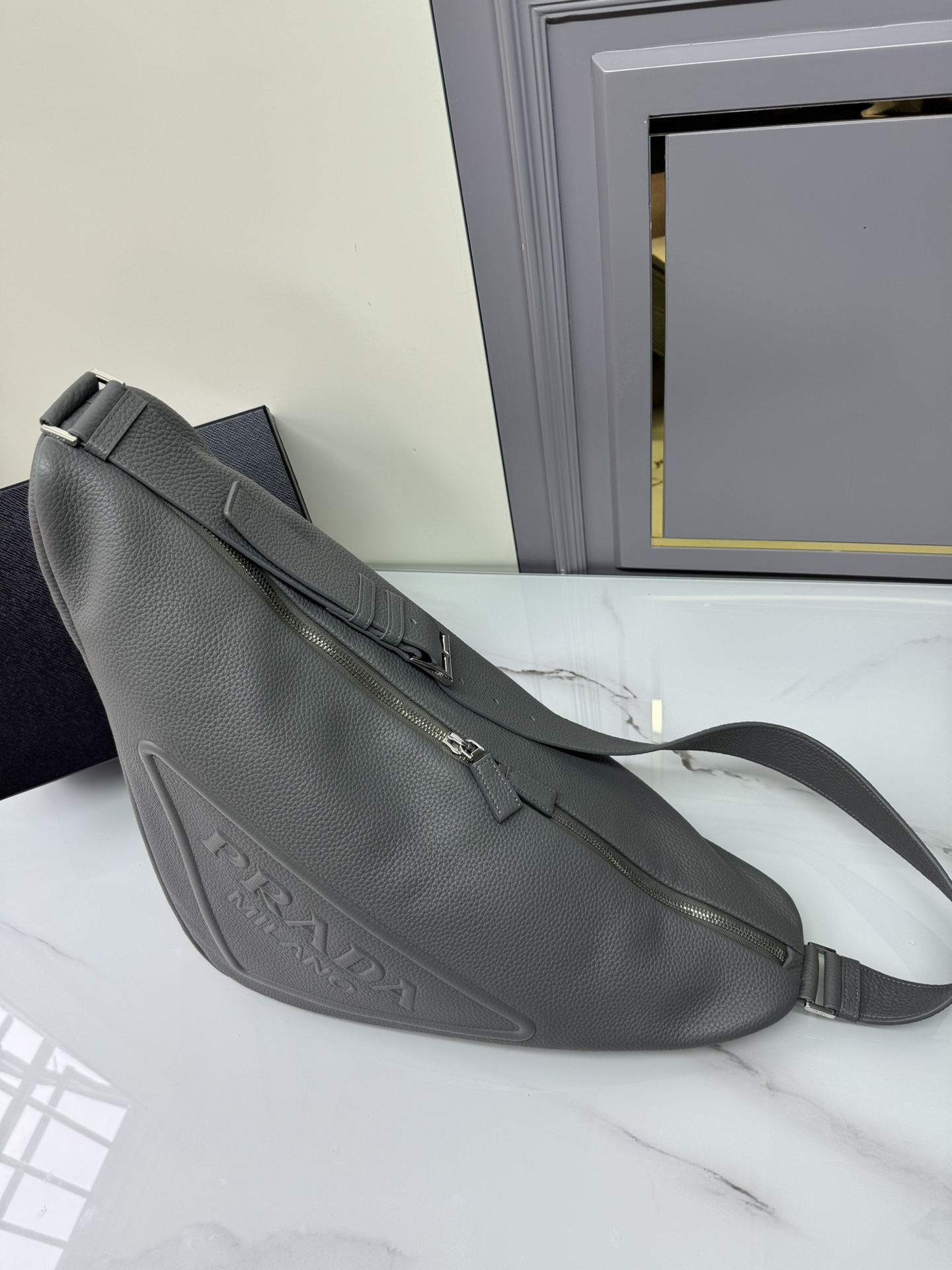全网红追爆大三角包来啦??,这款多功能的三角形皮革斜挎包配有可调式肩带,便于以不同方式背携。新颖的包身设计重释精美的同色大气,大三角设计能装能扛,战力十足,实在太塔了,休闲风格增加了大大少年感!太完美了,上街潮流十足????袋口长60底长22.5x高31x底宽28cm