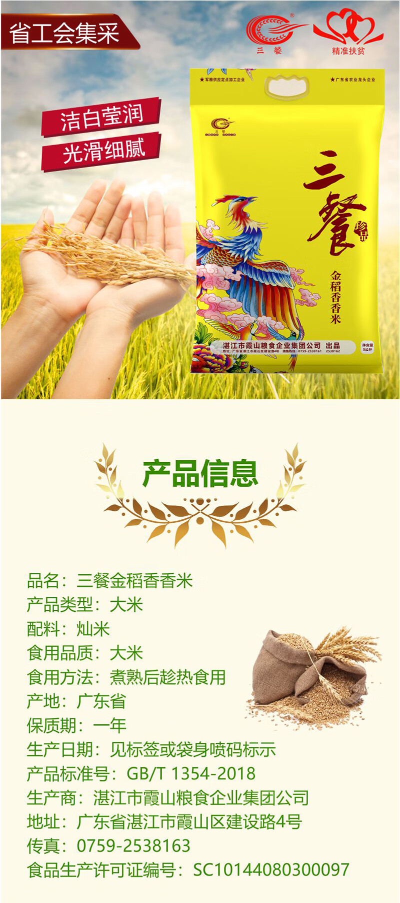 广东湛江 三餐 珍品金稻香香米5kg/包