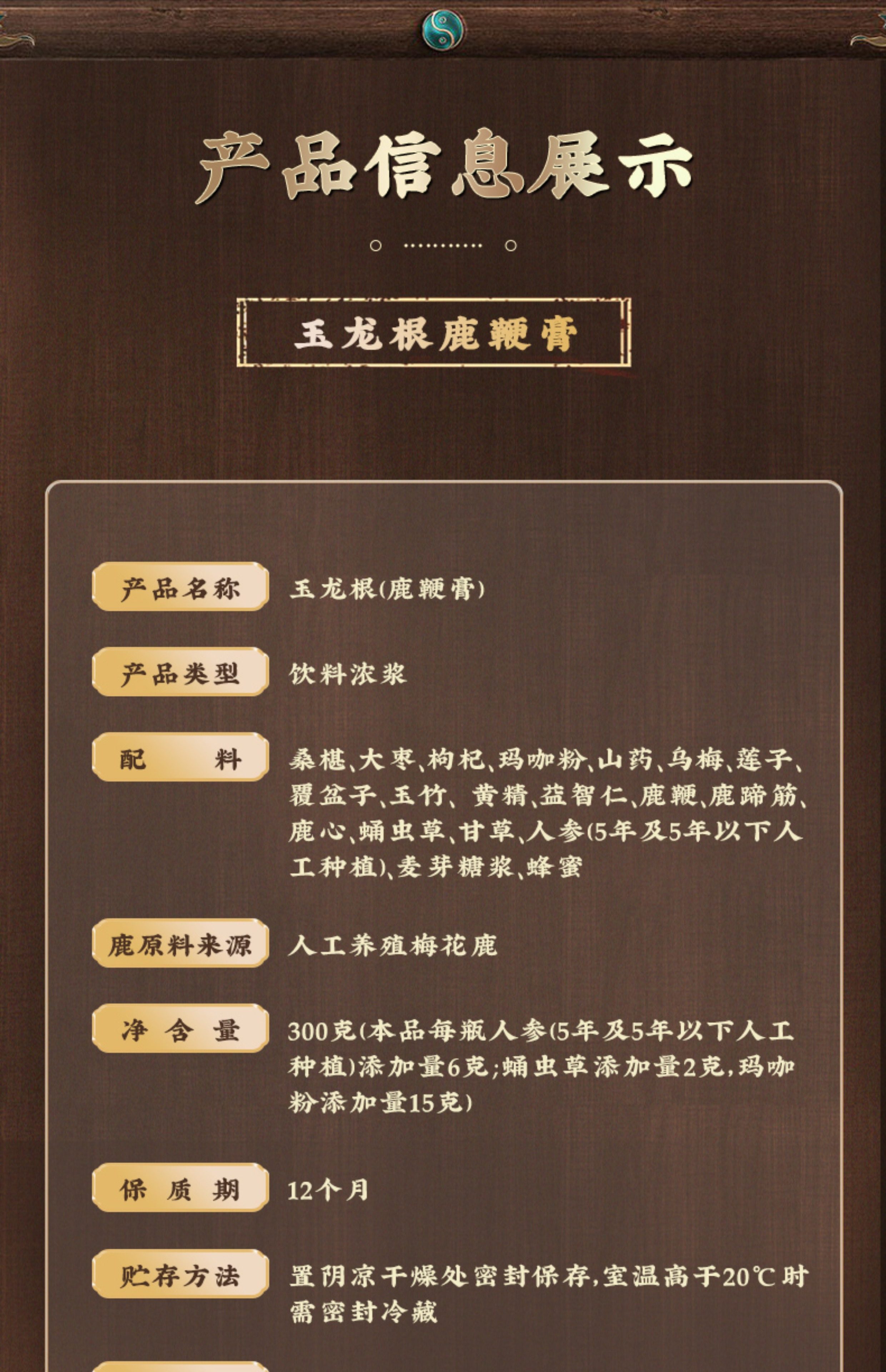 玉龙根 青妍集 玉龙根鹿鞭膏 精选原料 匠心熬制