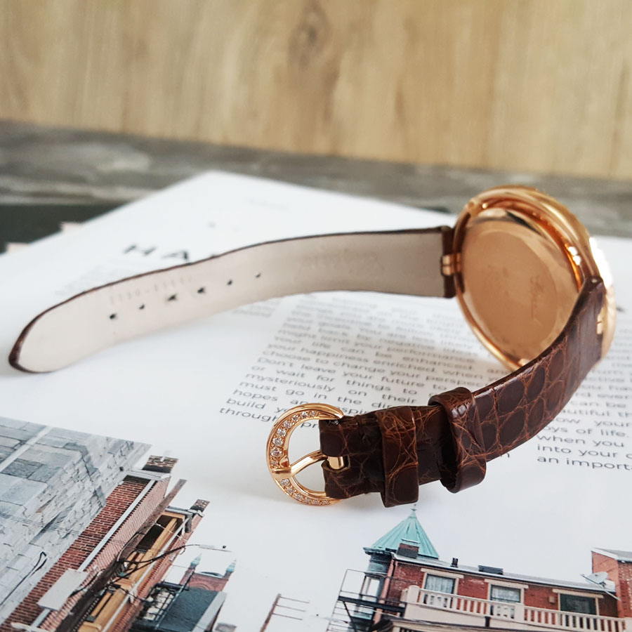 表壳材质 | 18K玫瑰金;镶嵌钻石表圈 |