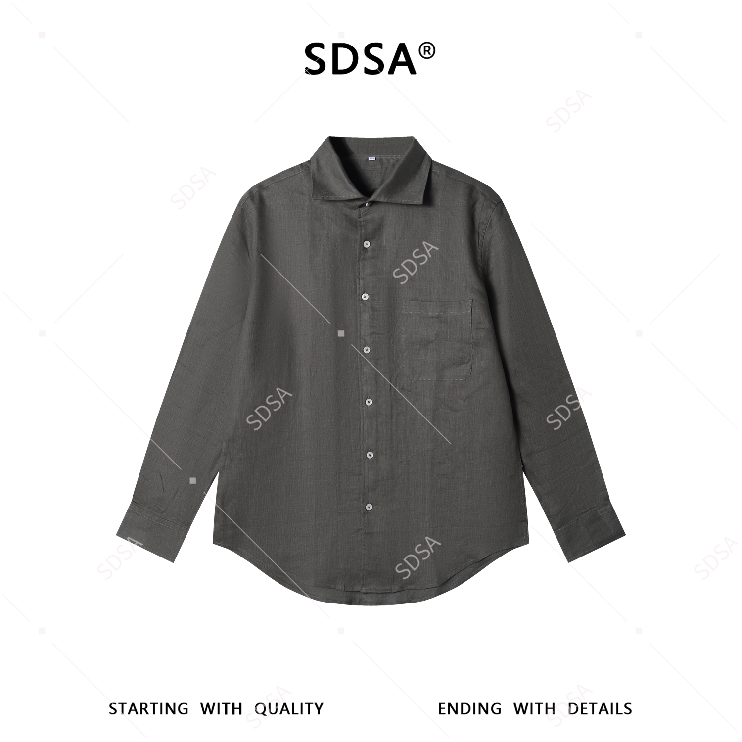 SDSA男装2026新款高贵轻奢极简风纯色亚麻长袖衬衫百搭时尚衬衣