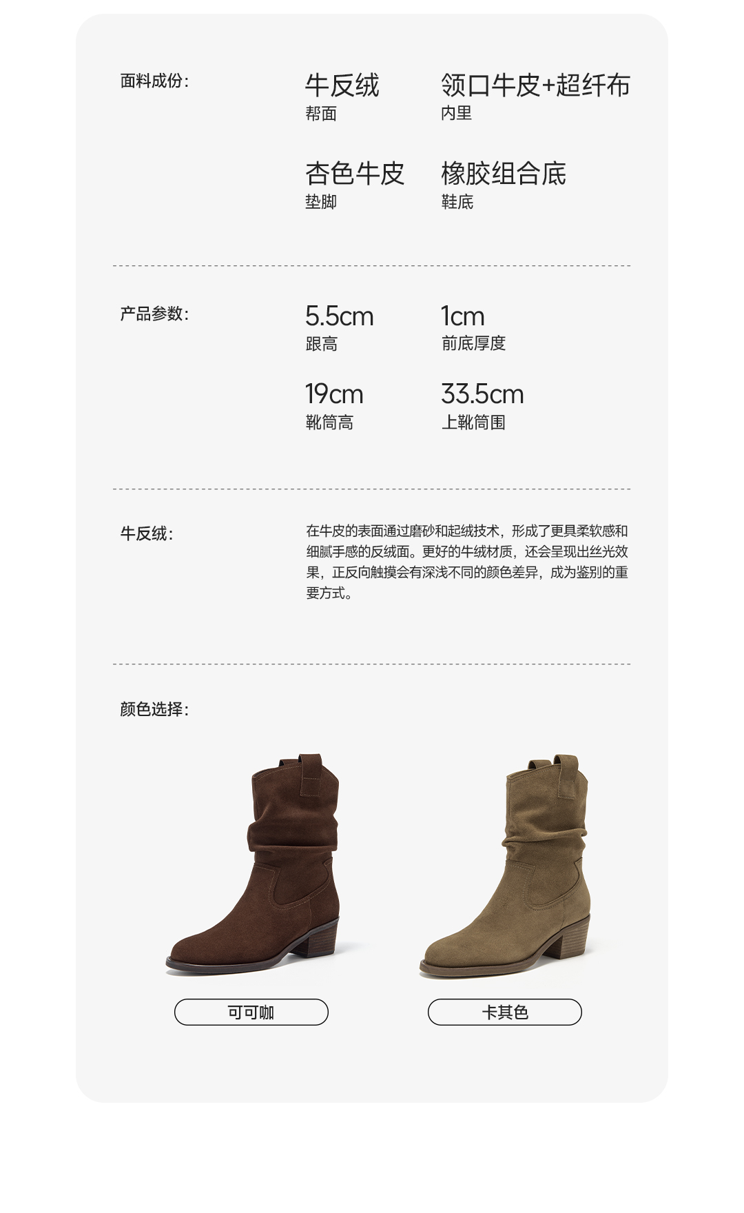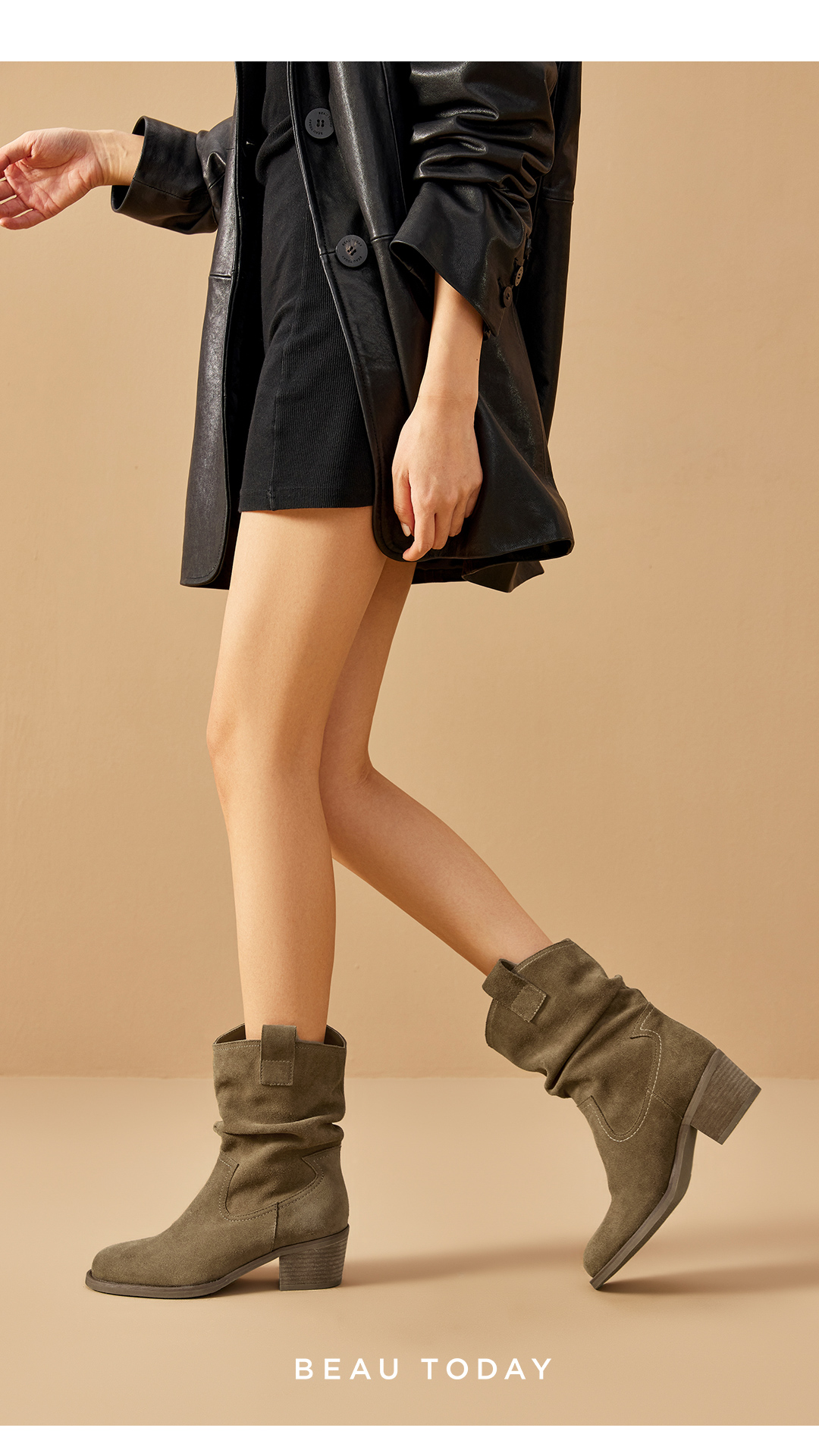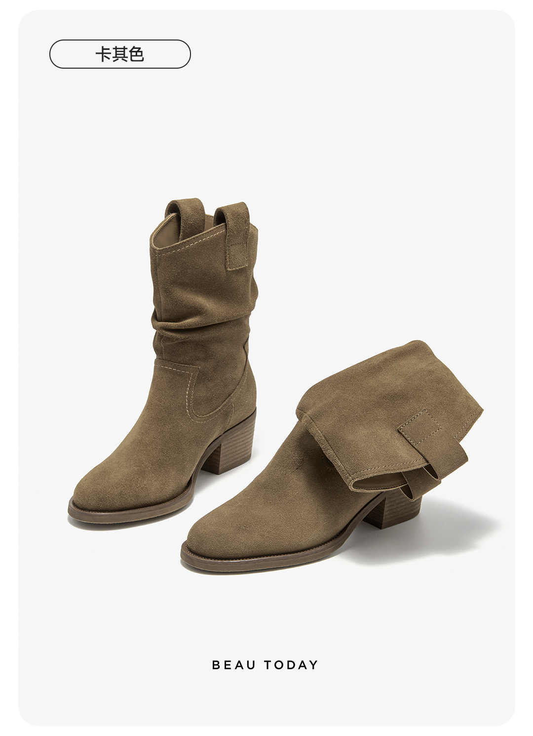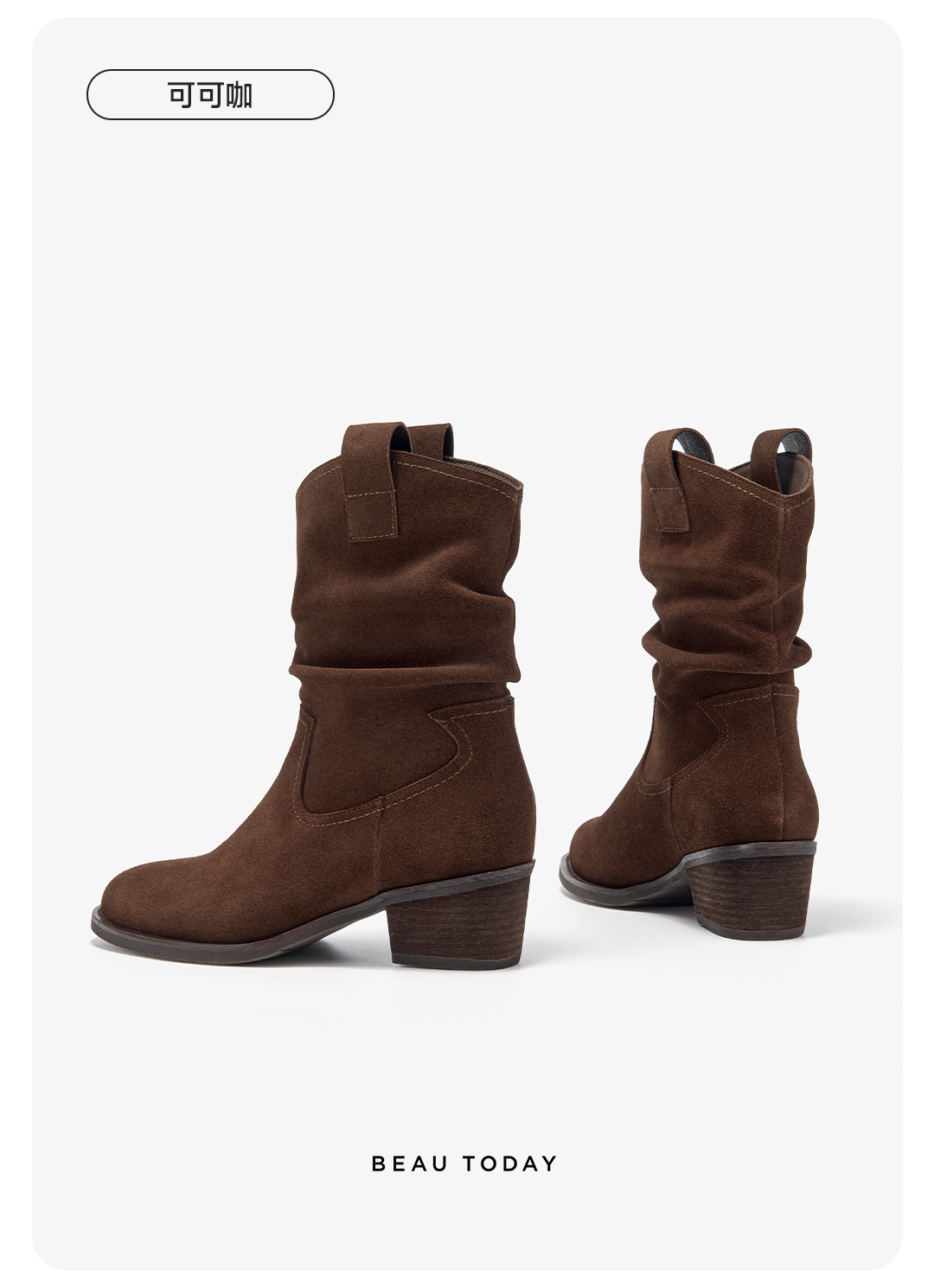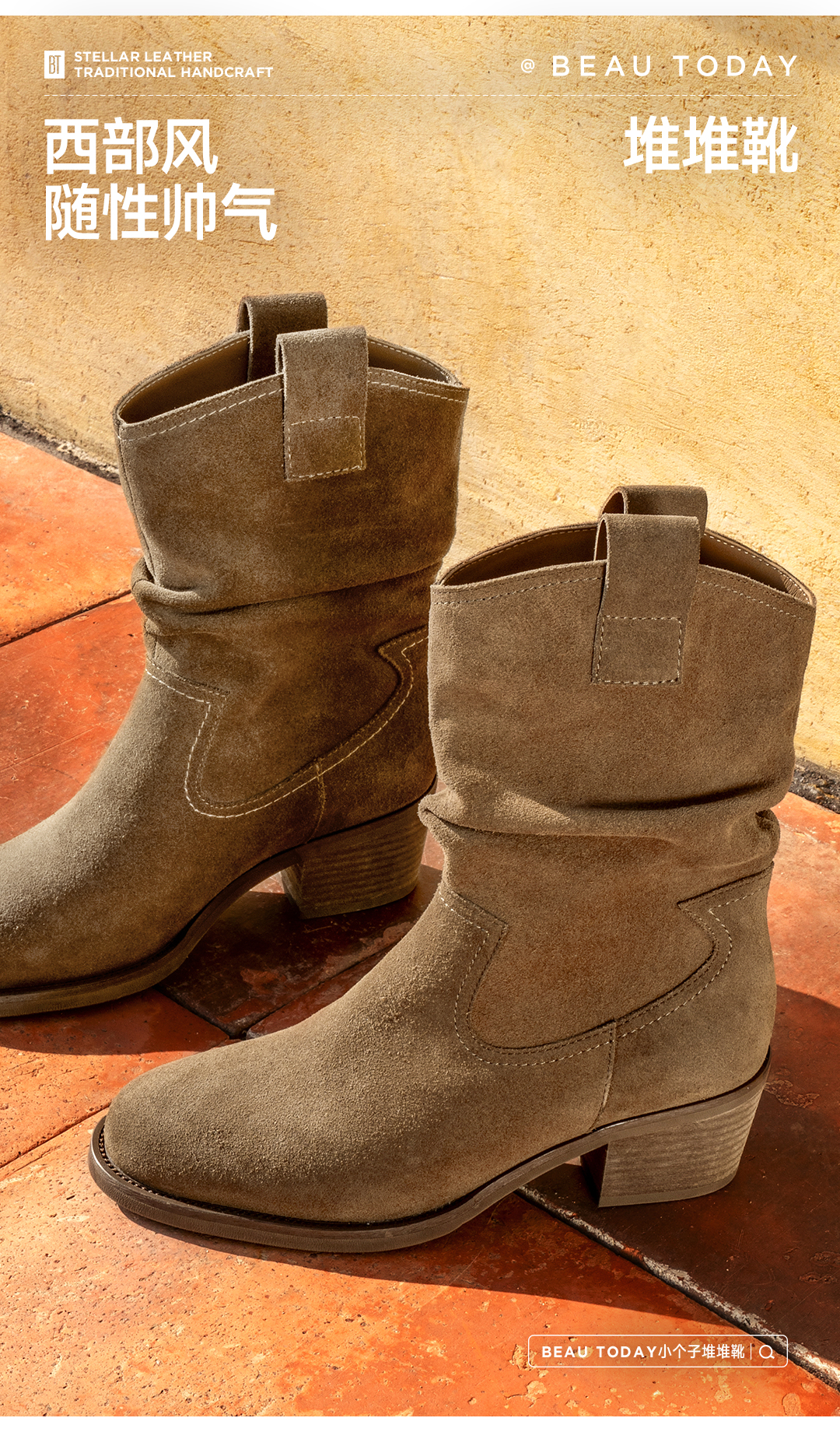 BeauToday 美拉德靴子堆堆靴女西部风时尚短靴06154