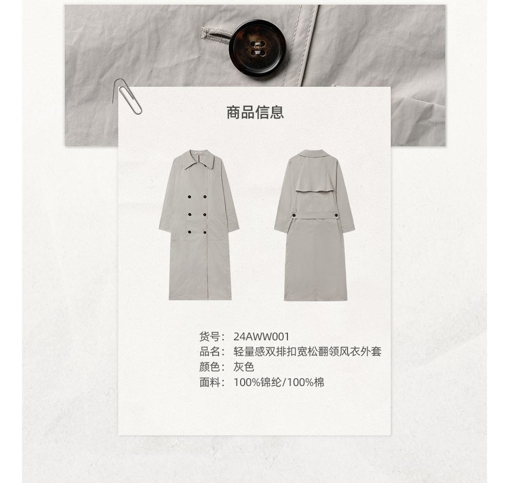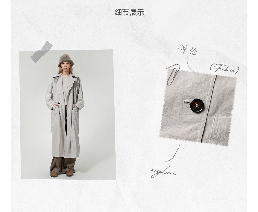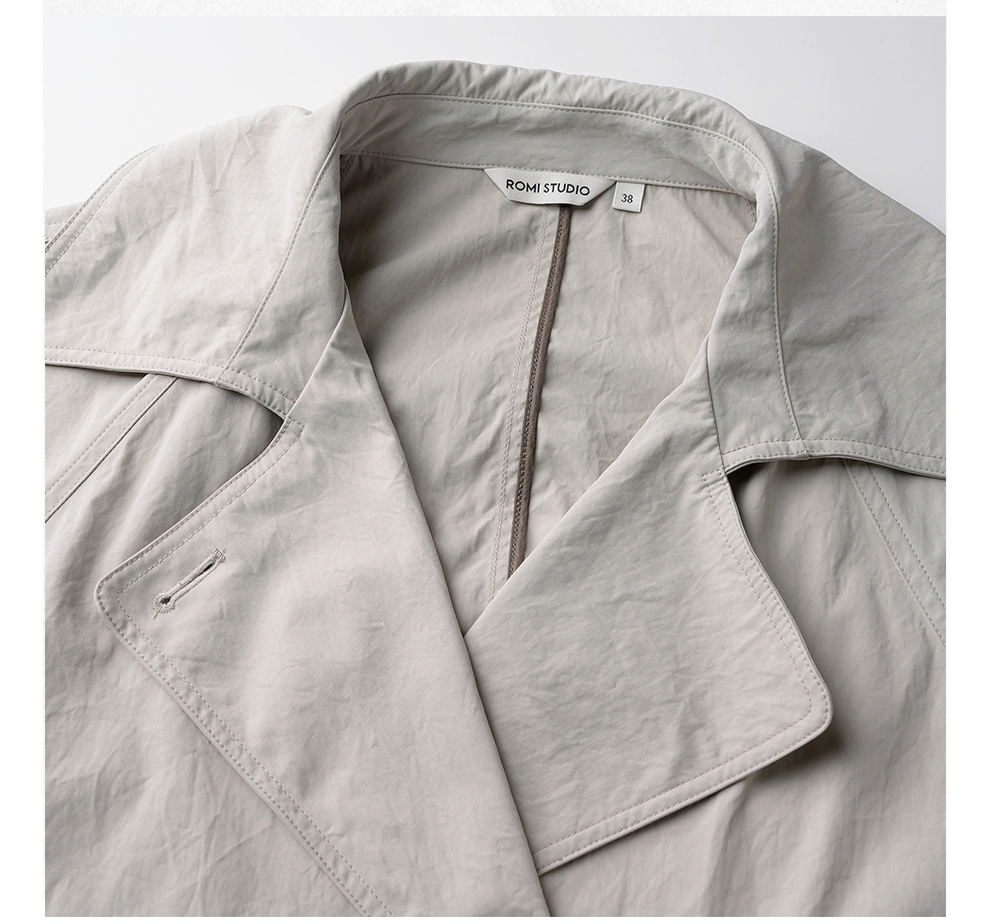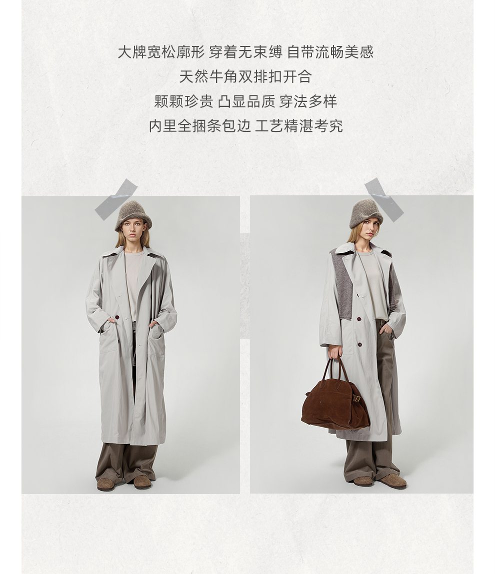ROMI STUDIO“如此简约”轻量化纸皱感牛角扣宽松风衣外套 24AWW001