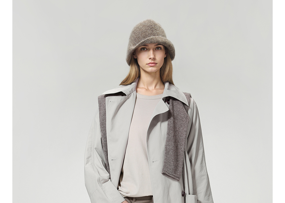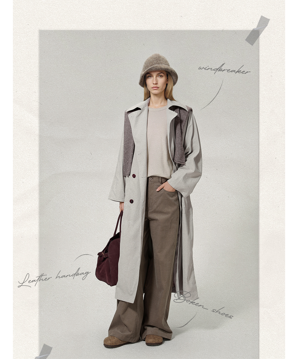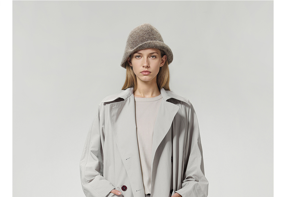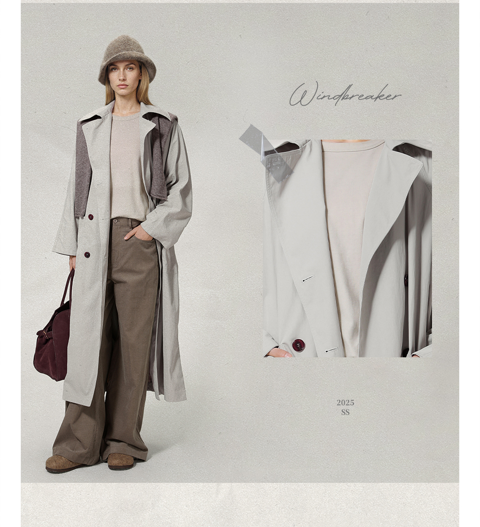 ROMI STUDIO“如此简约”轻量化纸皱感牛角扣宽松风衣外套 24AWW001