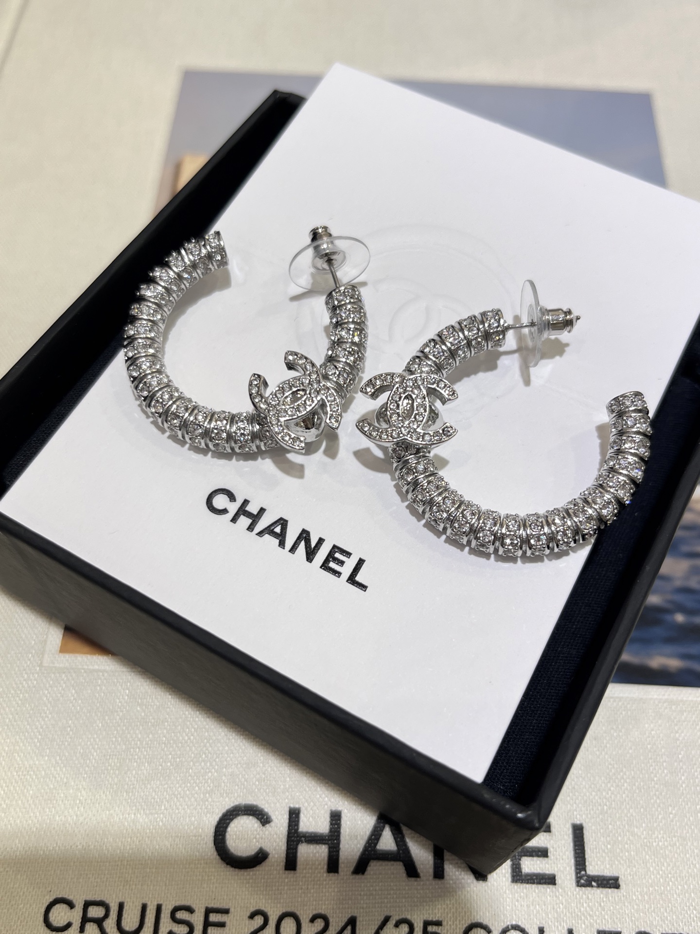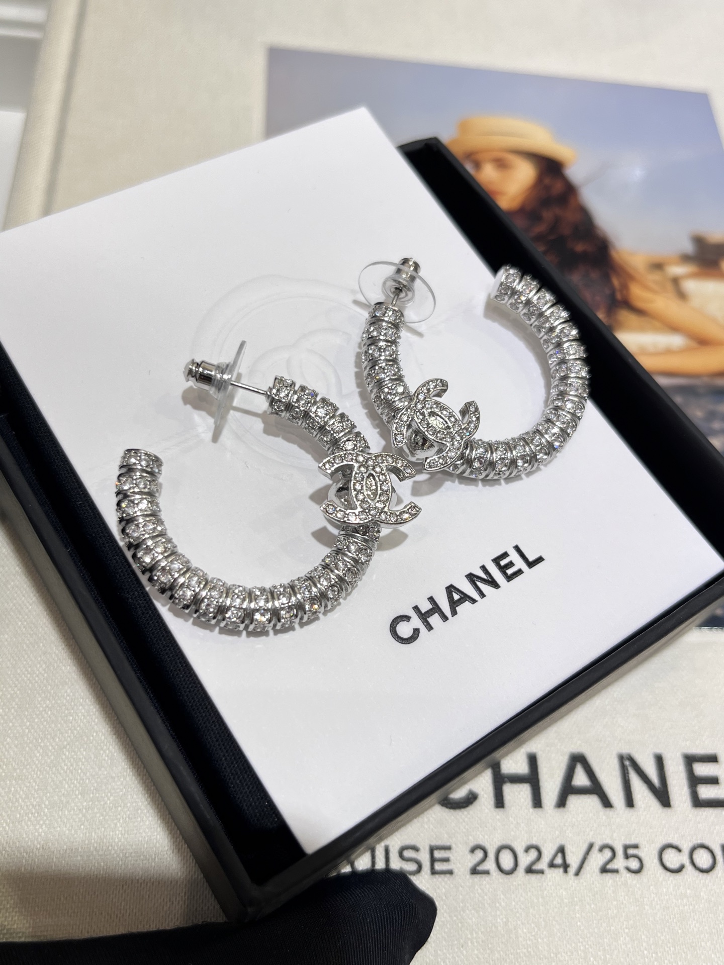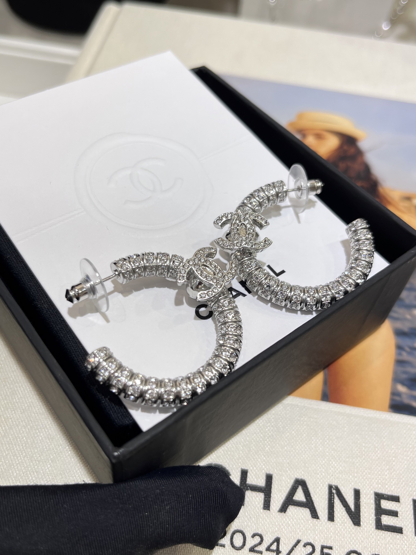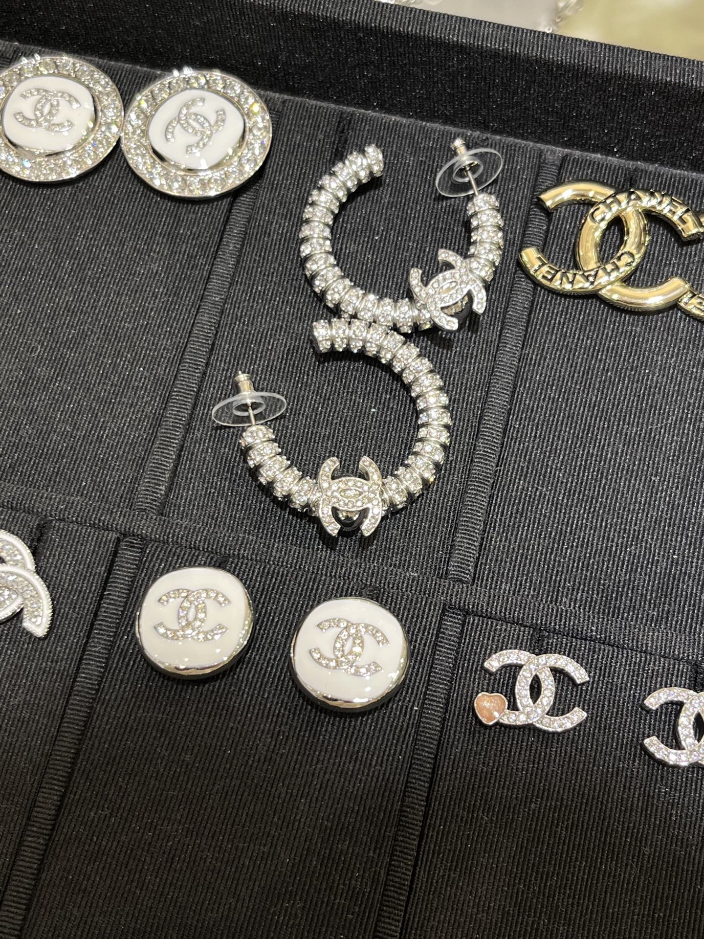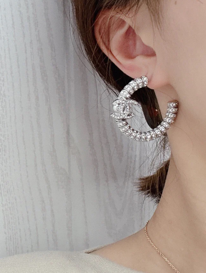 香奶奶 新款银色双C满钻半圆耳环耳圈