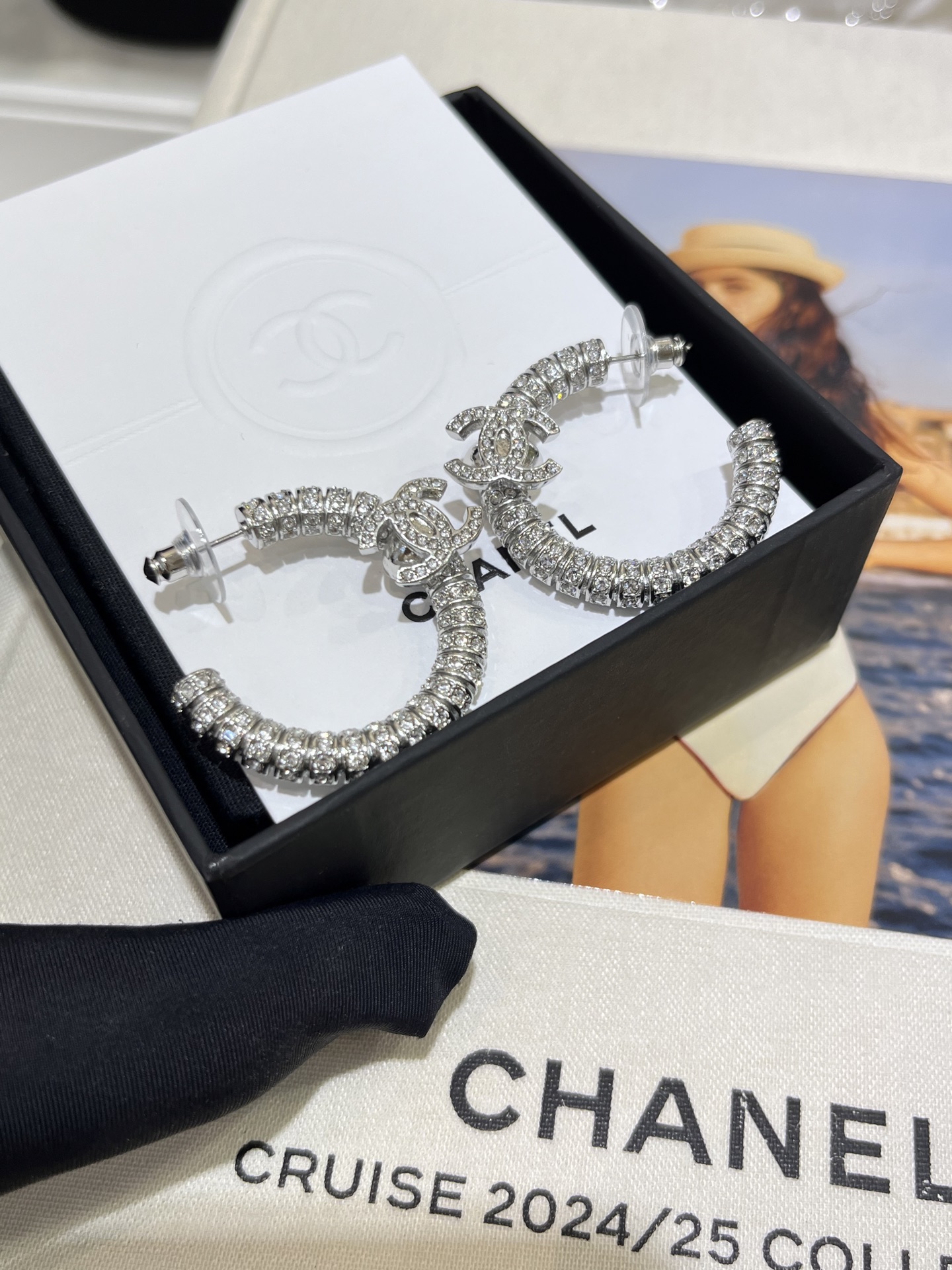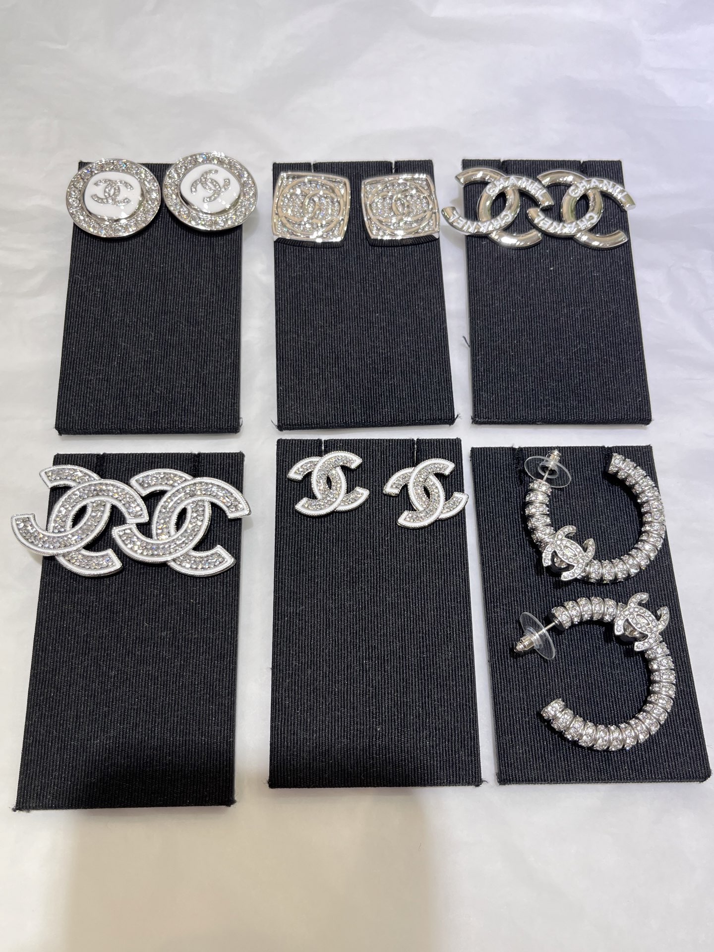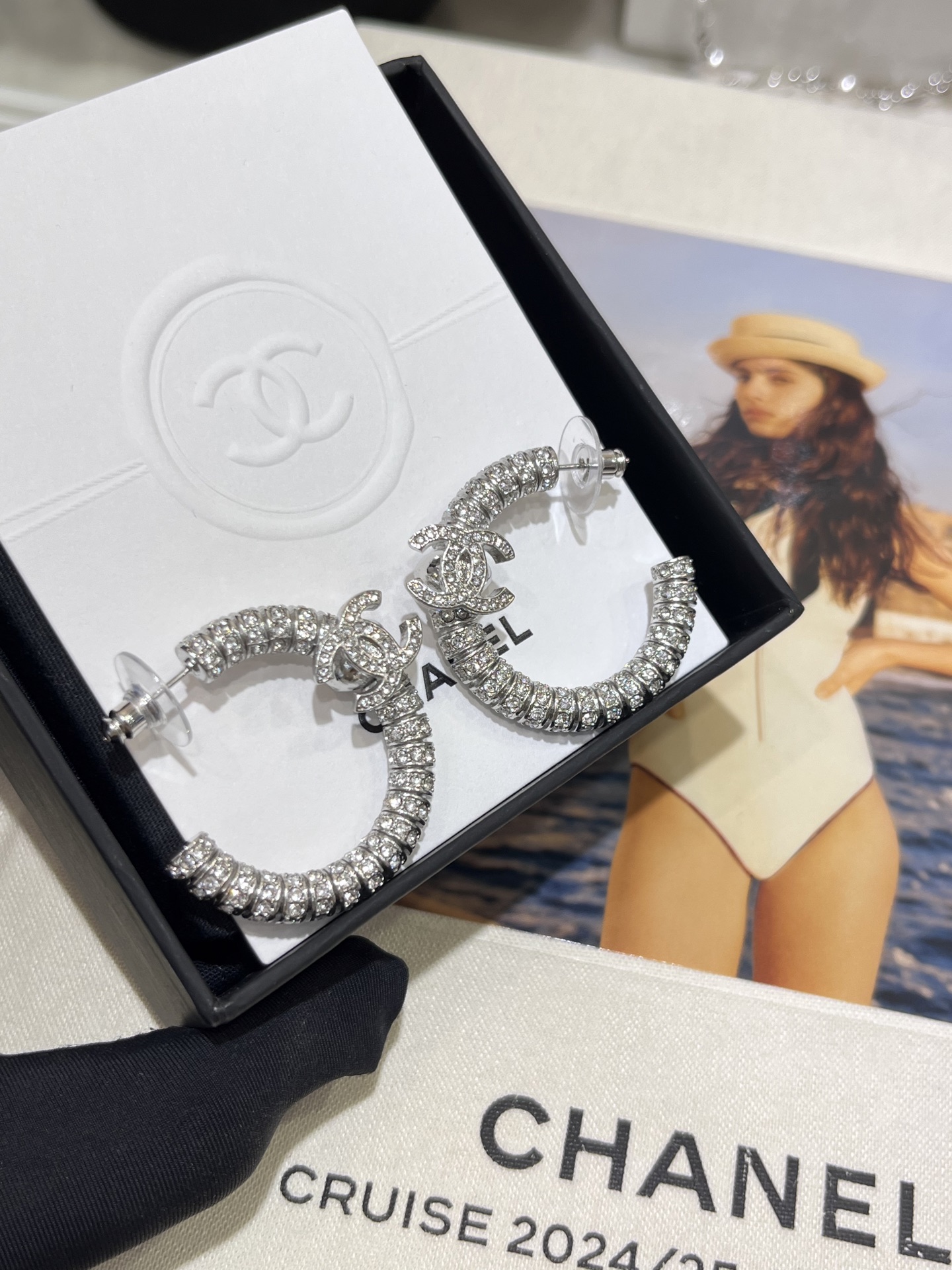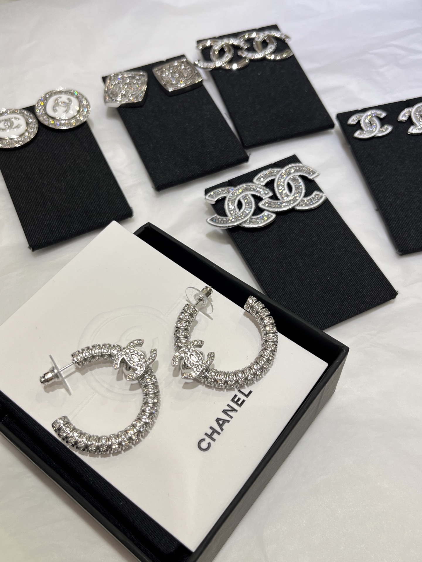 香奶奶 新款银色双C满钻半圆耳环耳圈