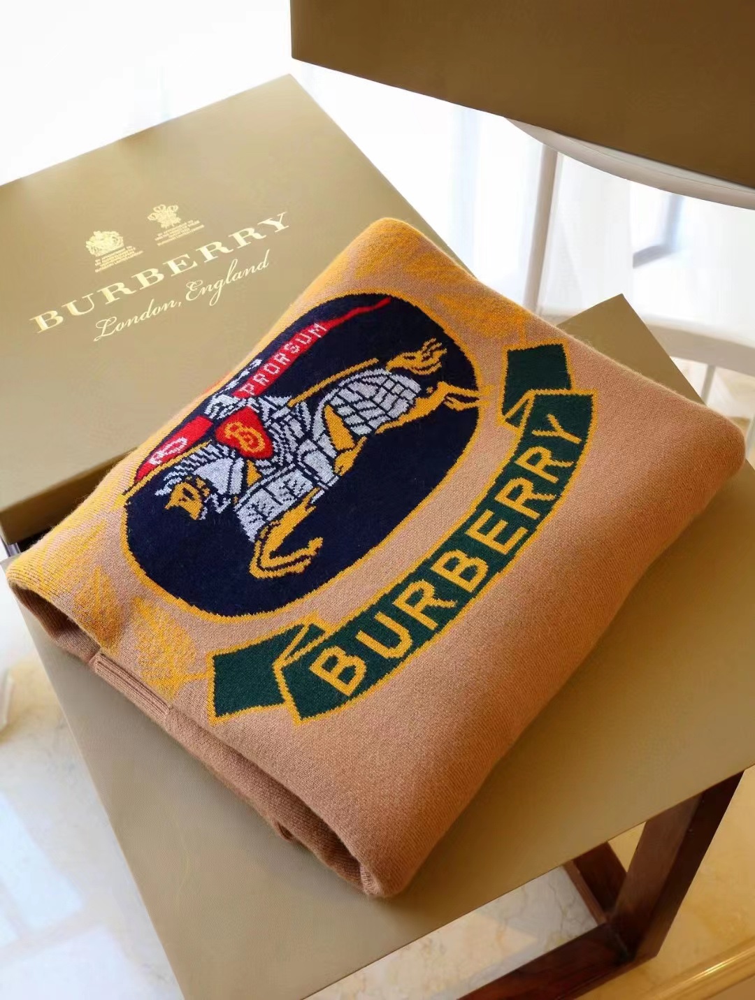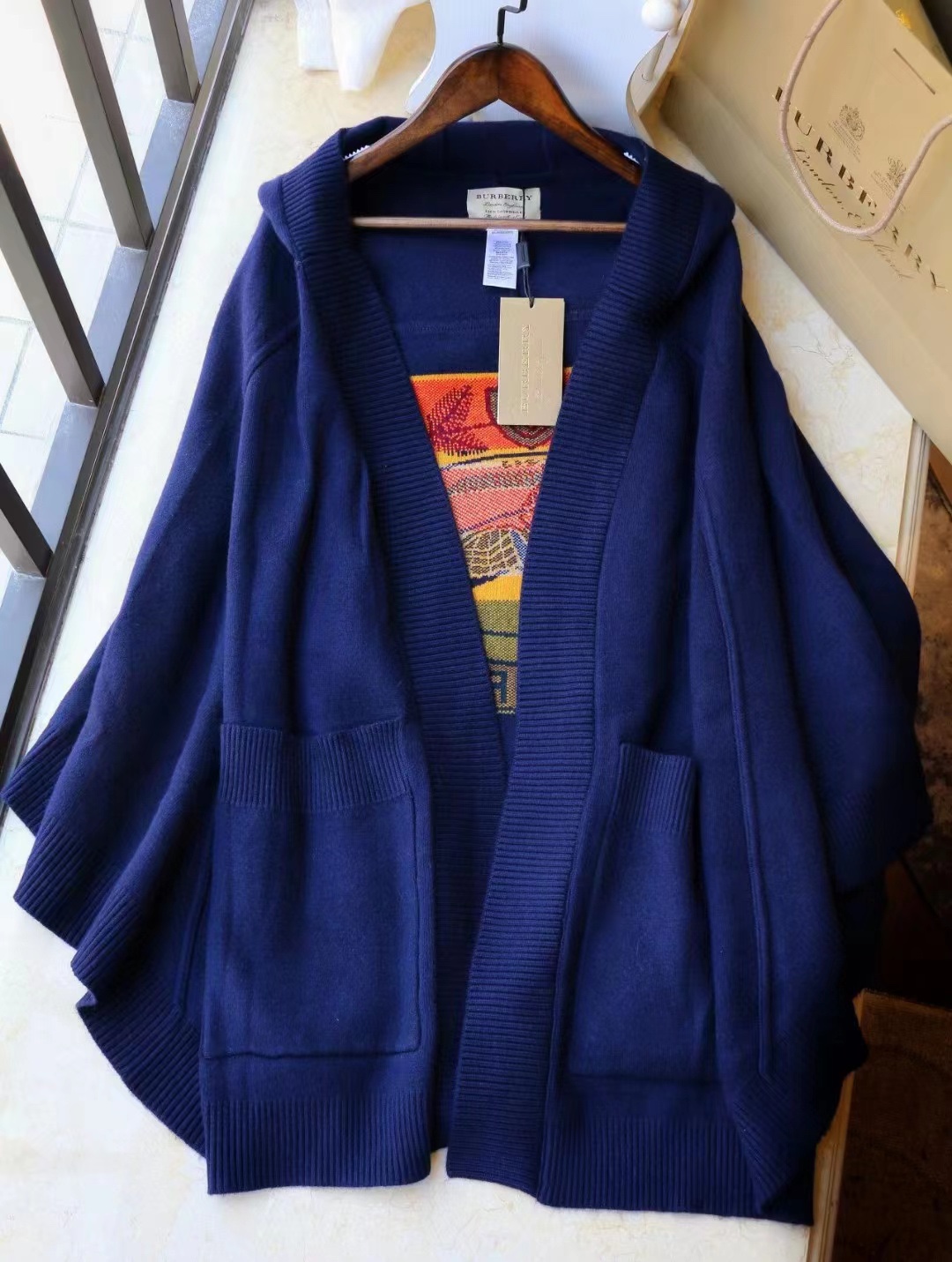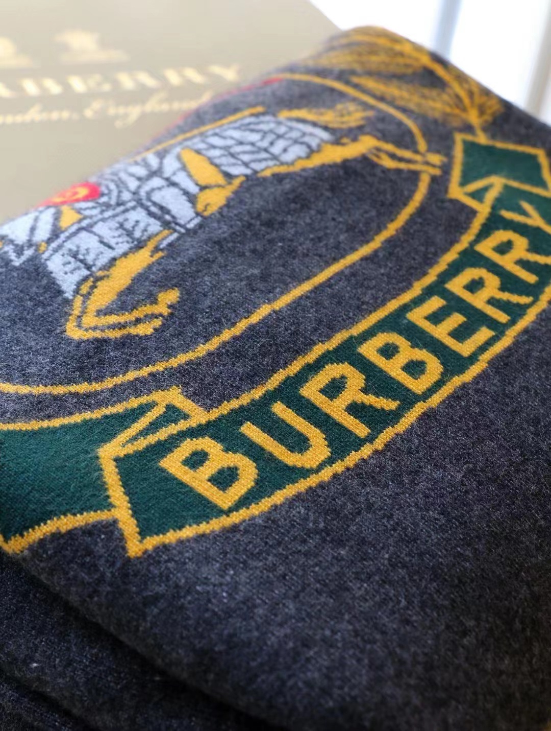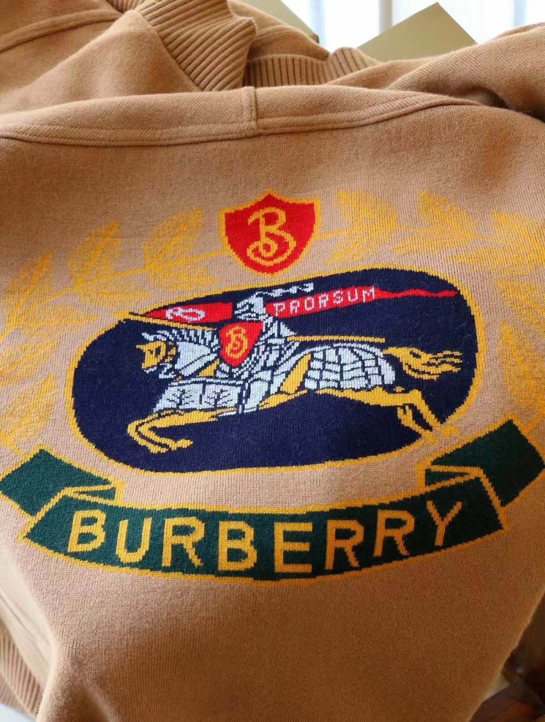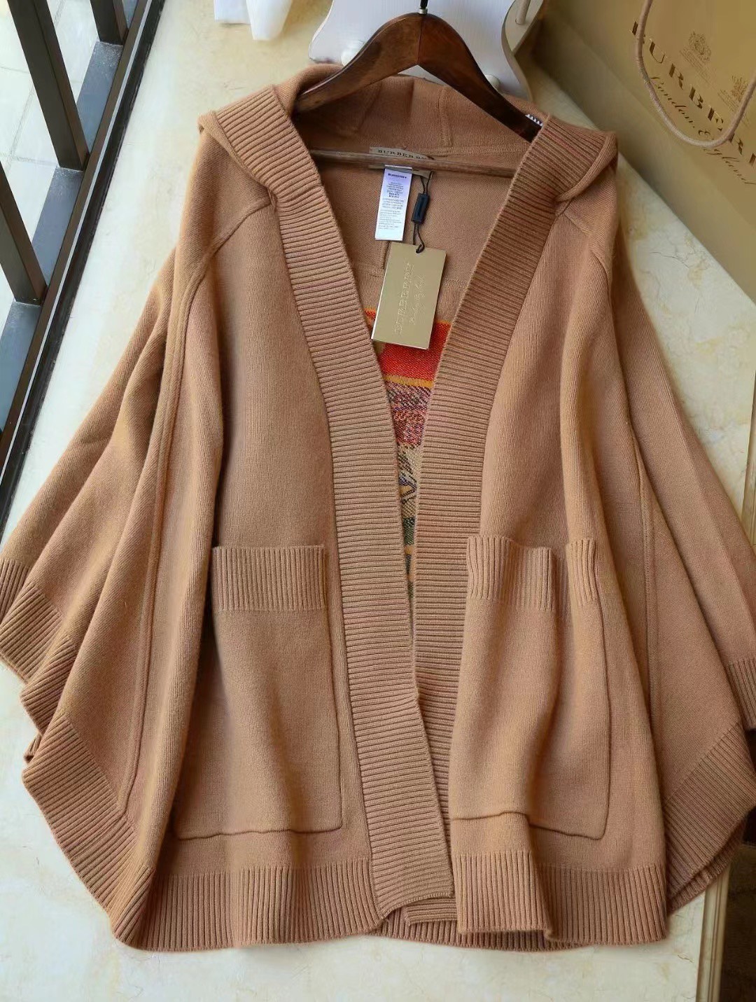 B家最新款连帽斗篷,战马嵌花款,市面最牛的货,净重1350克,将近2斤7两一条,真材实料的东西,专柜15500一条,这款既可以当连帽上衣又可以当斗篷,配上长筒靴超带范儿,舒适性与保暖性于一体,是适合寒冷时节穿着的绝佳单品。臻选最为柔软的羊毛羊绒精纺面料,匠心融入弹性纤维,86%羊毛,10%羊绒,2%弹性纤维,2%聚酰胺,搭配正面超大口袋,背部缀有“Burberry"字母徽标,这个标是提花织上去的,不是胶印上去的,也不是贴片,整条斗篷柔软细腻,一点不扎,正常身材都能穿,随便驾驭