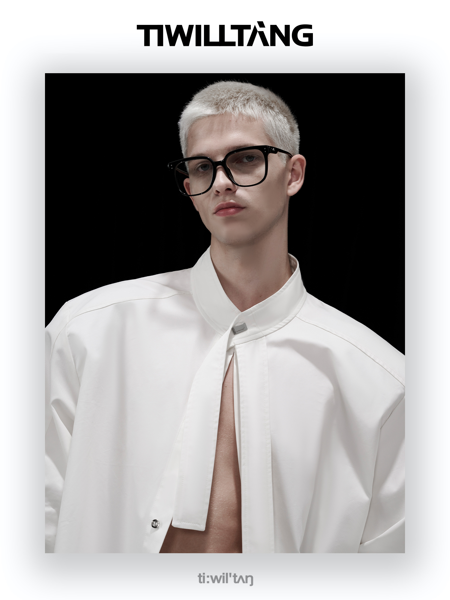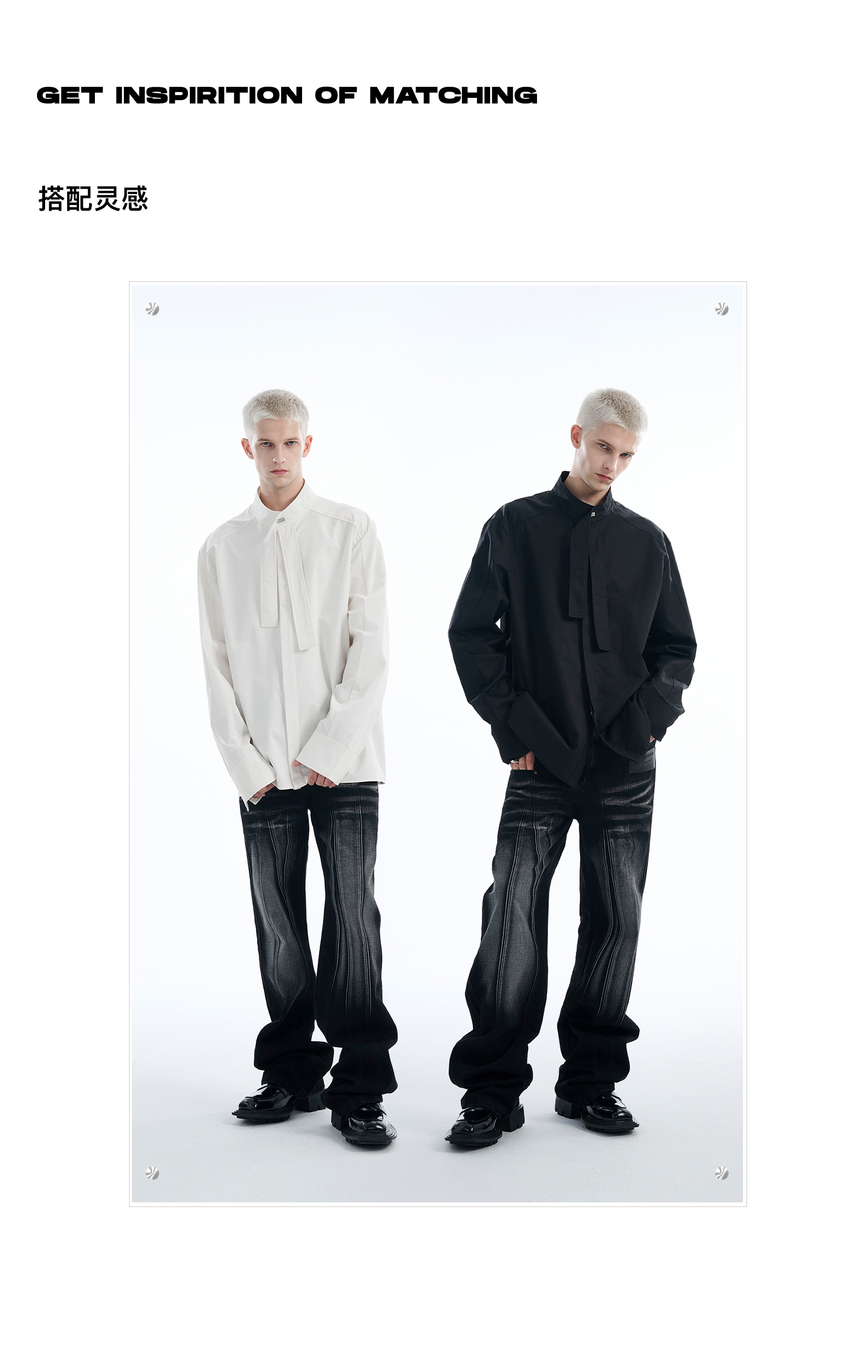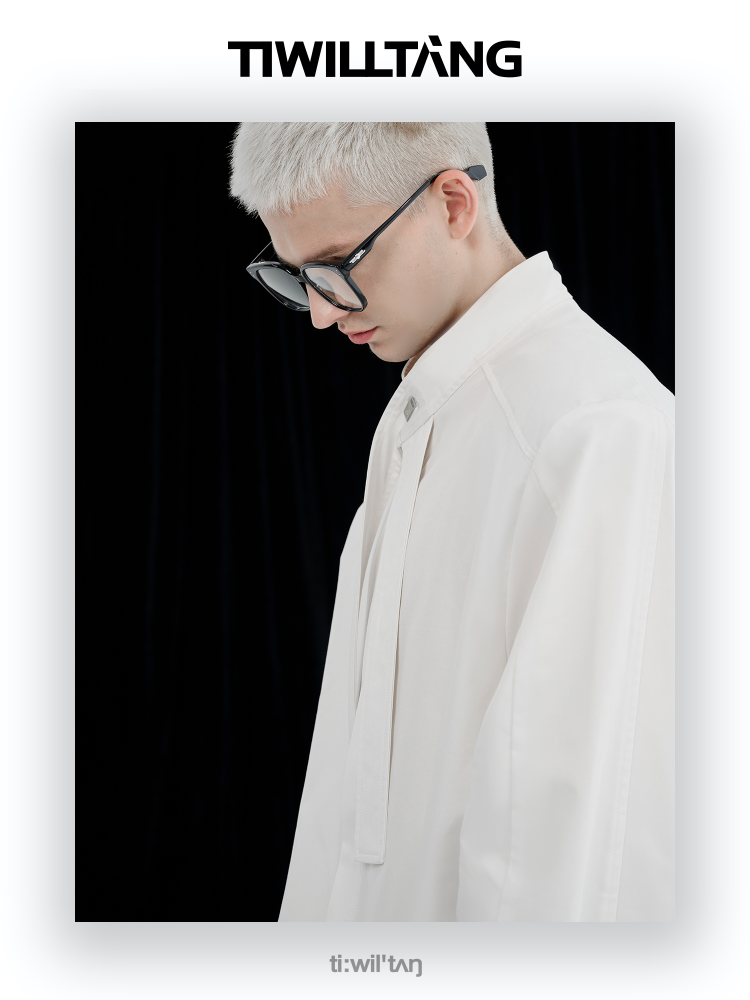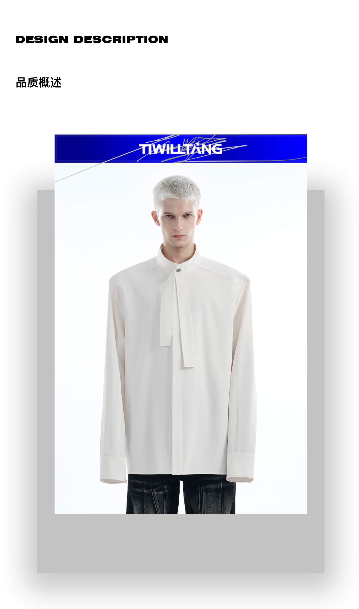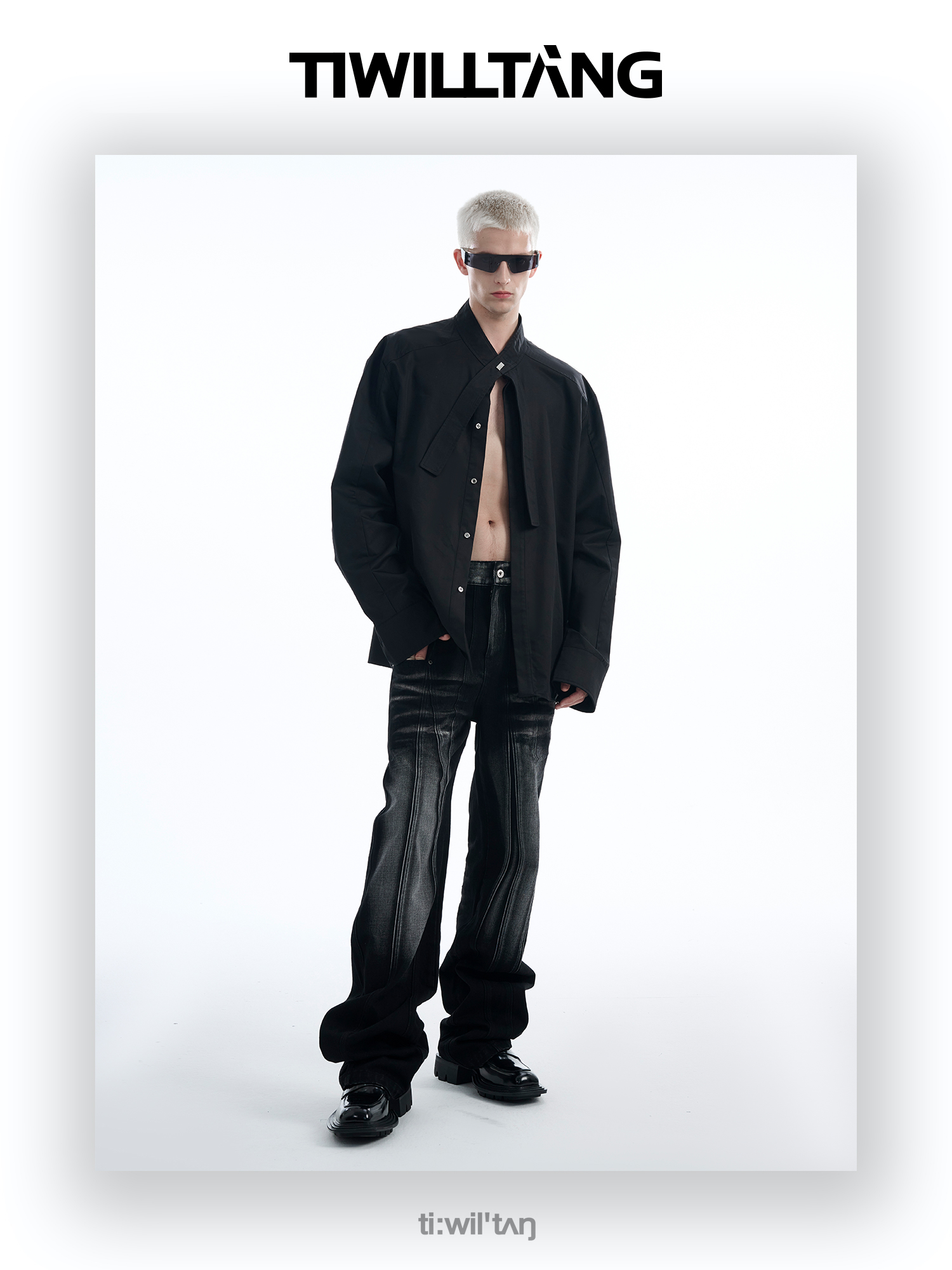 启世录TIWILLTANG“当代救赎”精奢设计感飘带领黑白休闲长袖衬衫