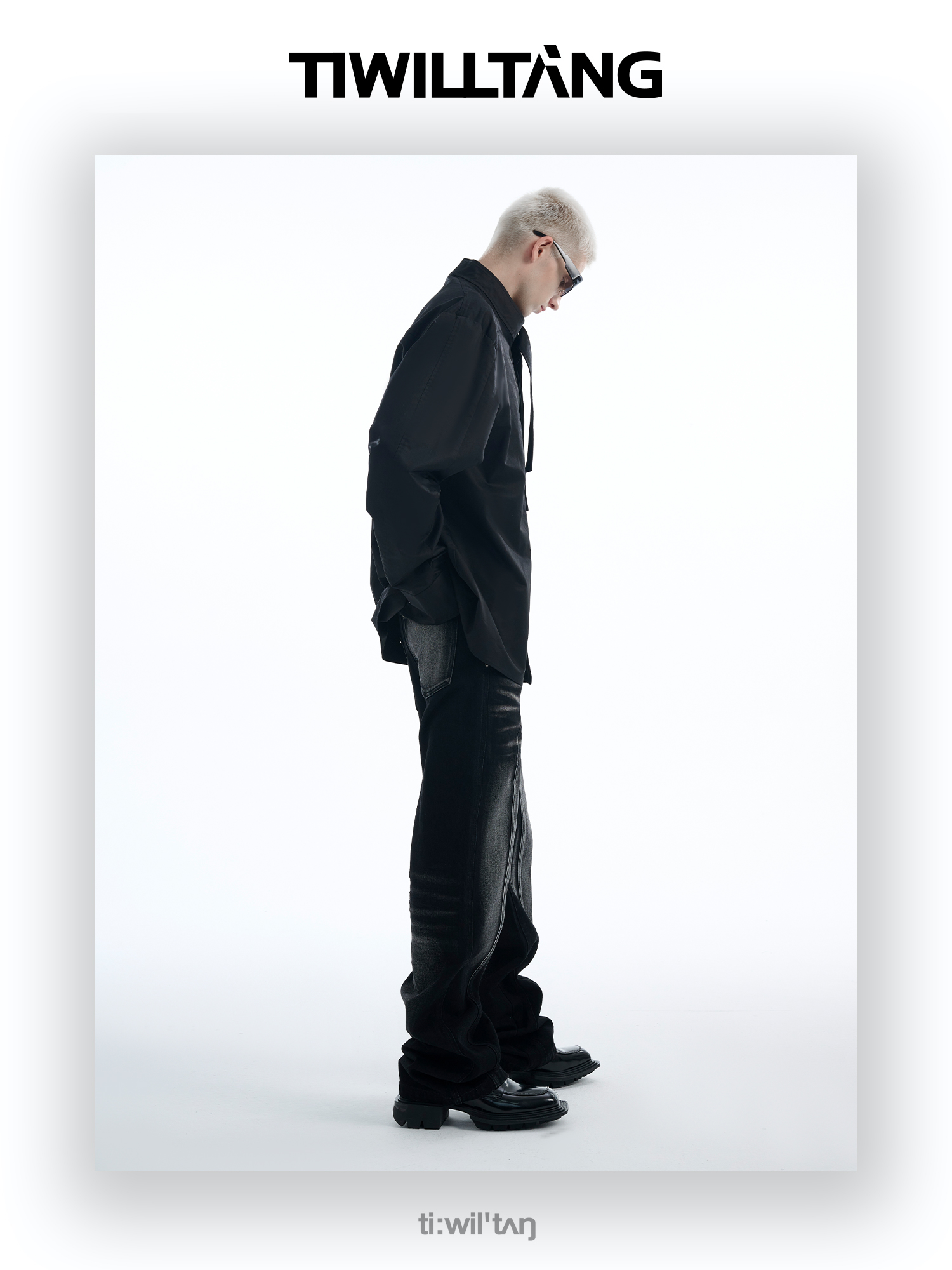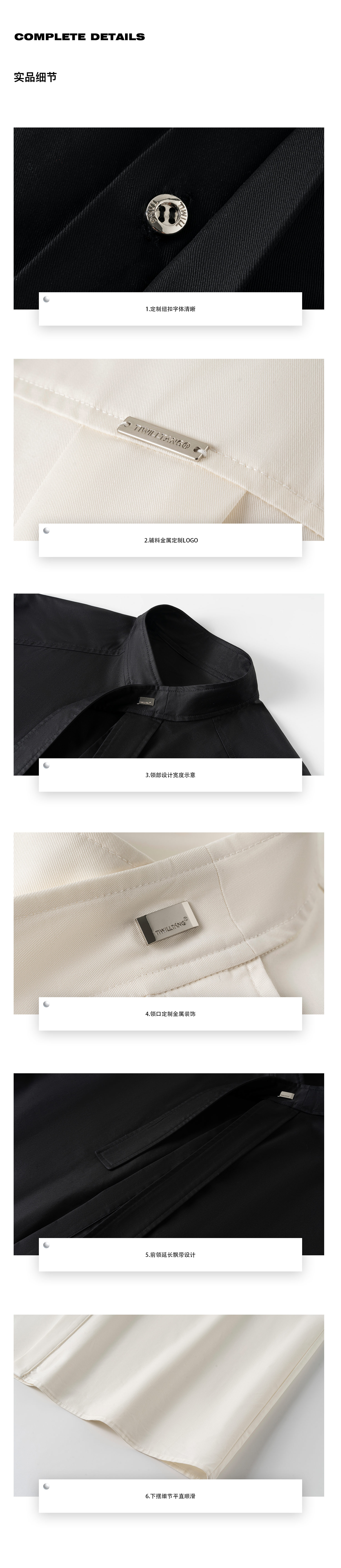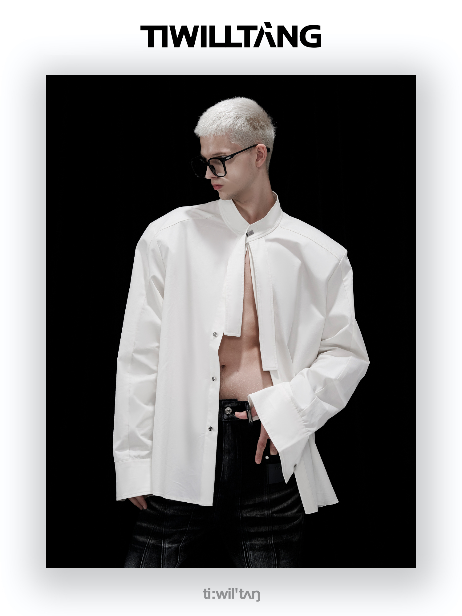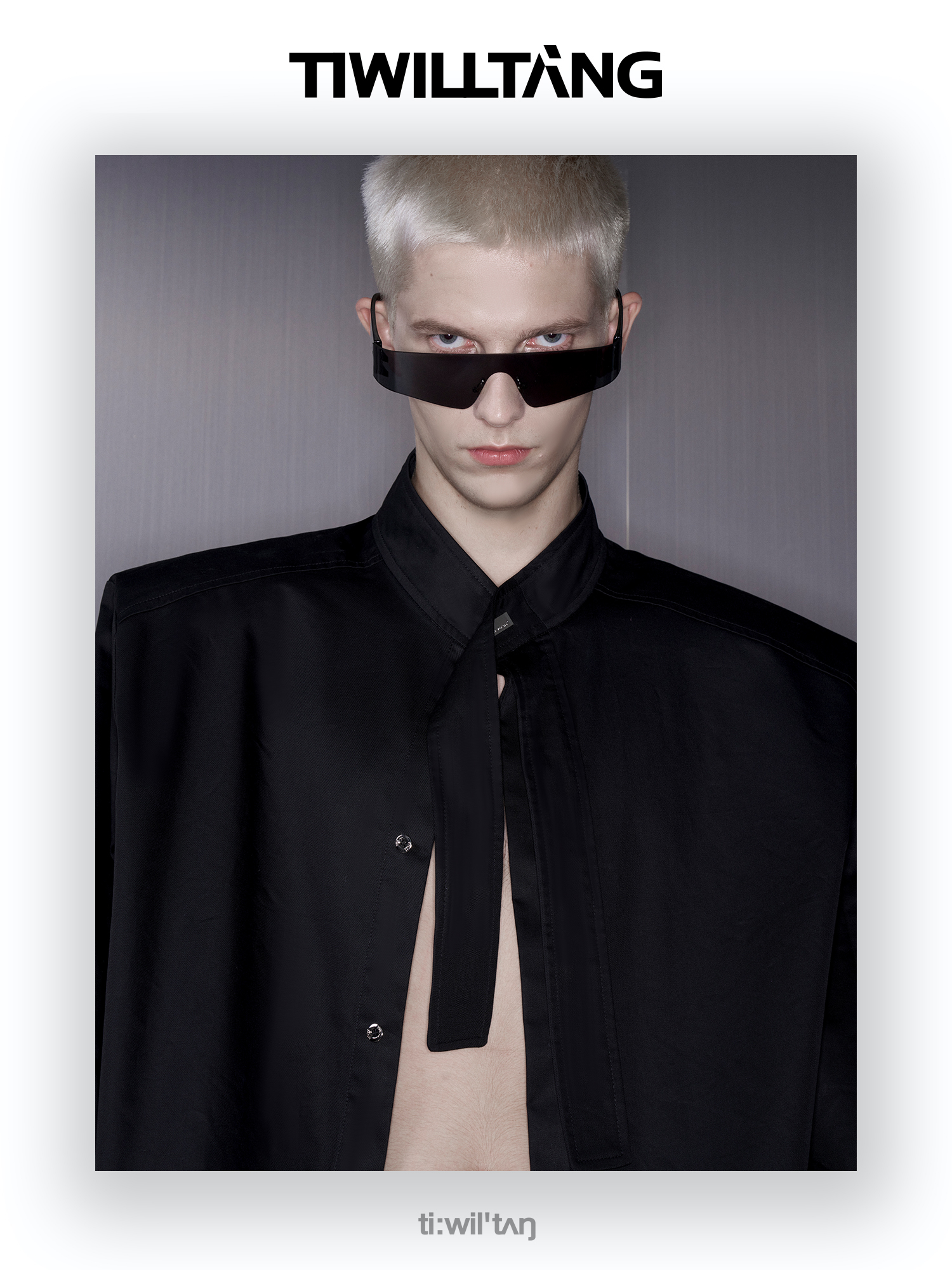 启世录TIWILLTANG“当代救赎”精奢设计感飘带领黑白休闲长袖衬衫