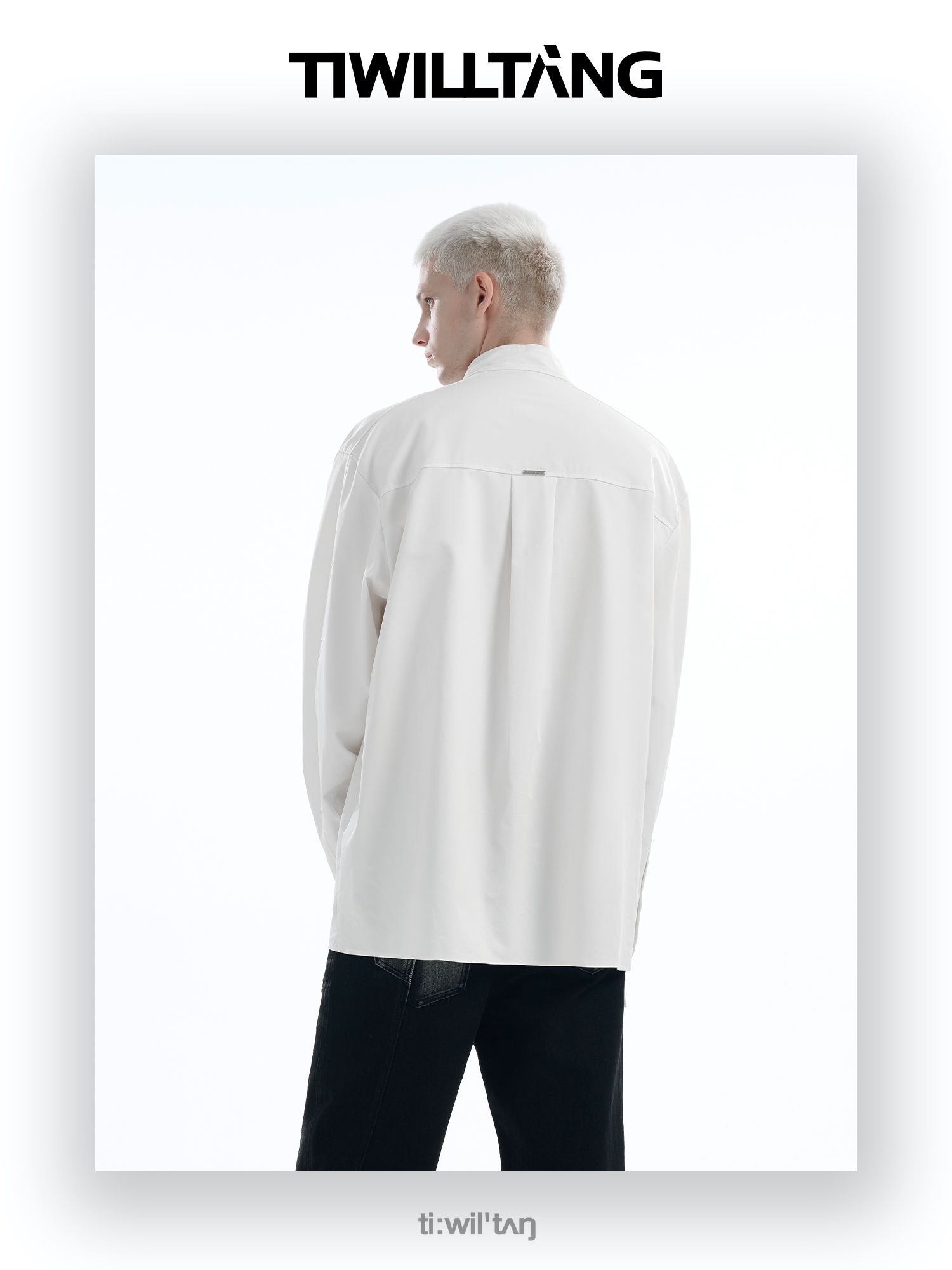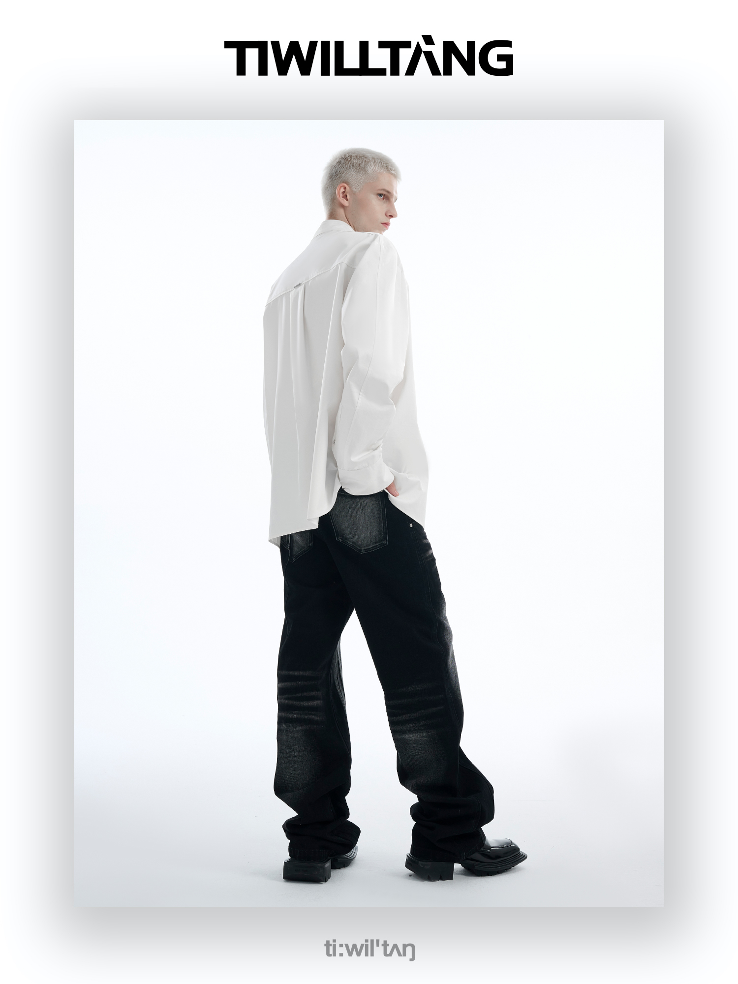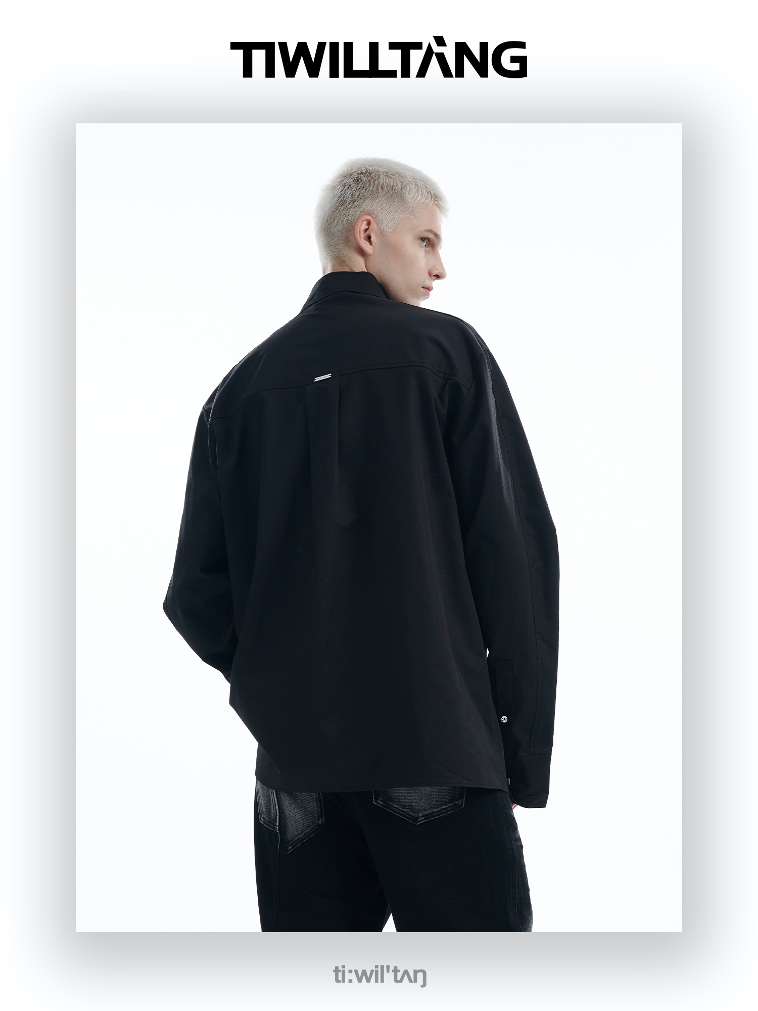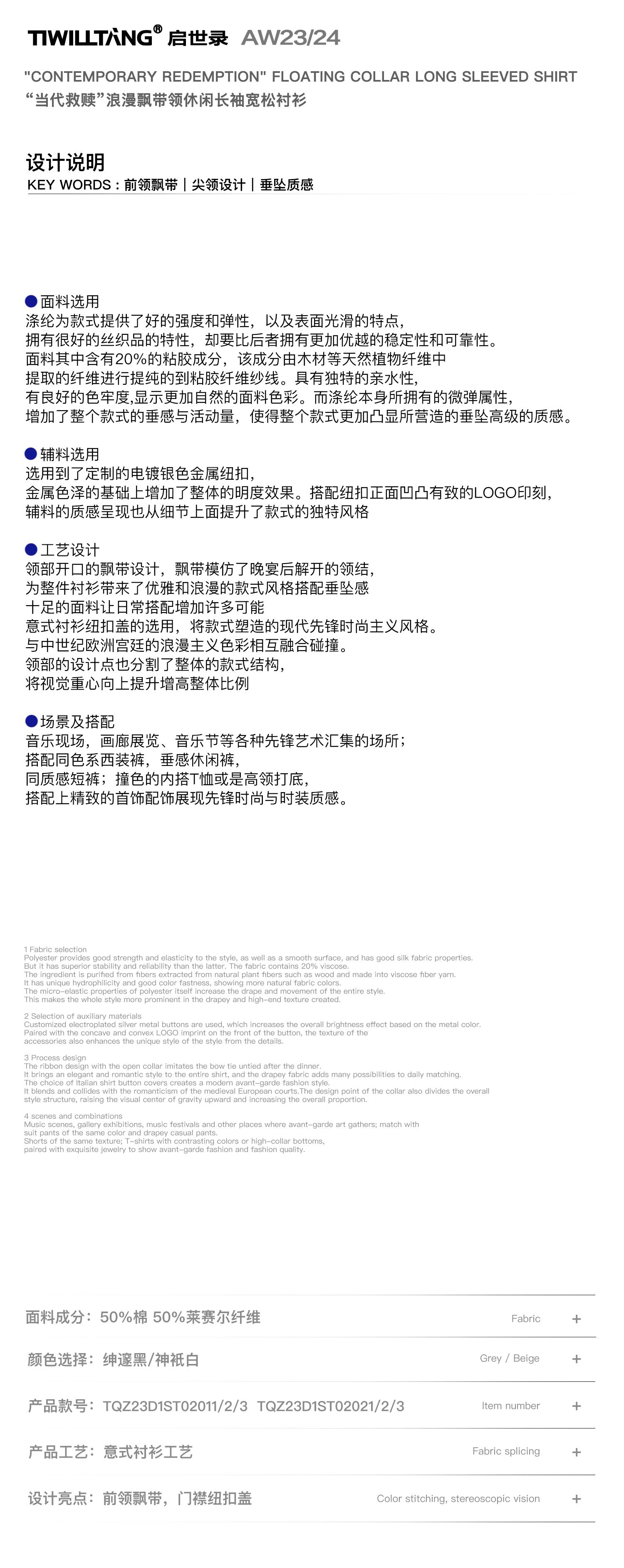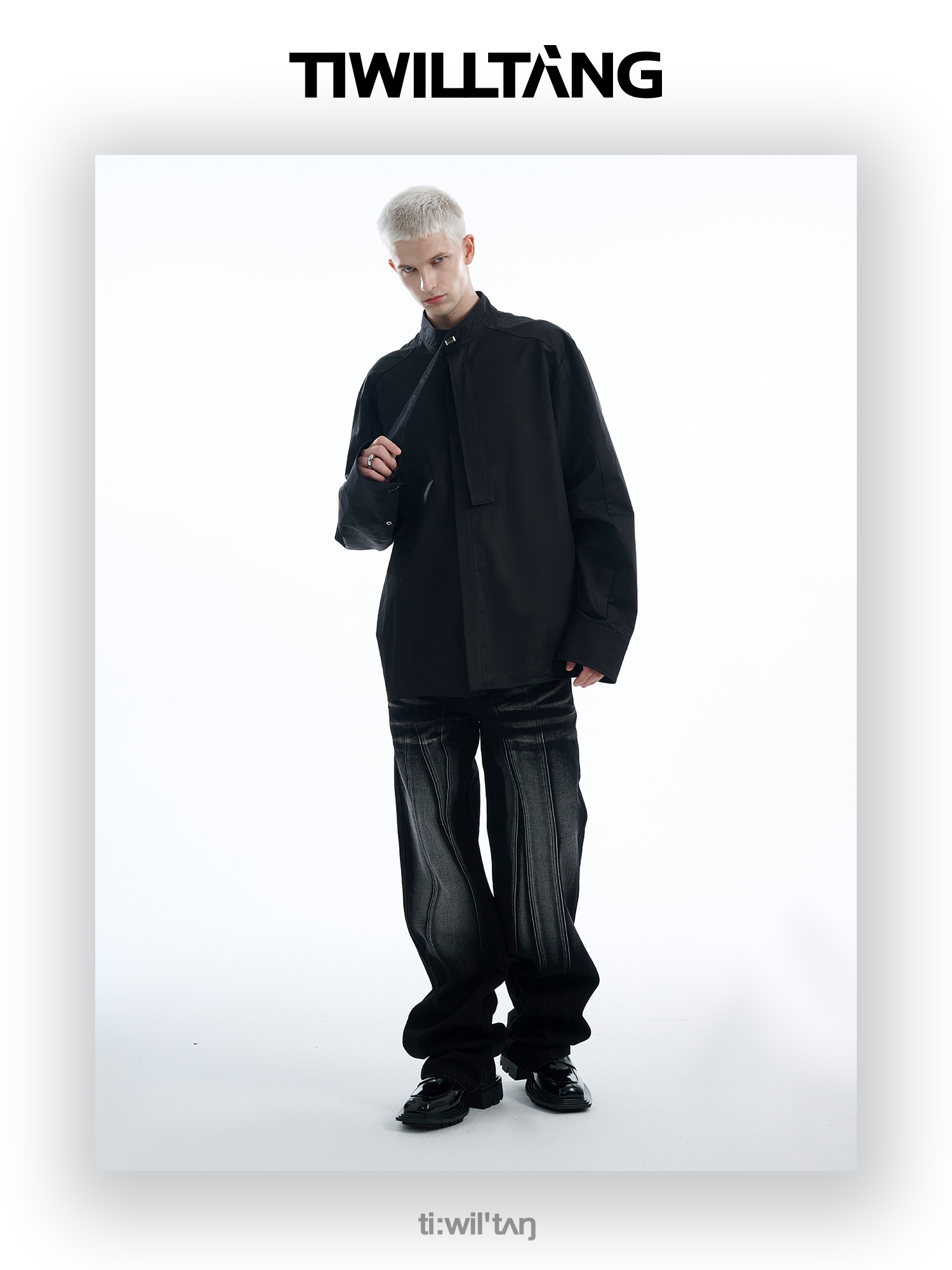 启世录TIWILLTANG“当代救赎”精奢设计感飘带领黑白休闲长袖衬衫
