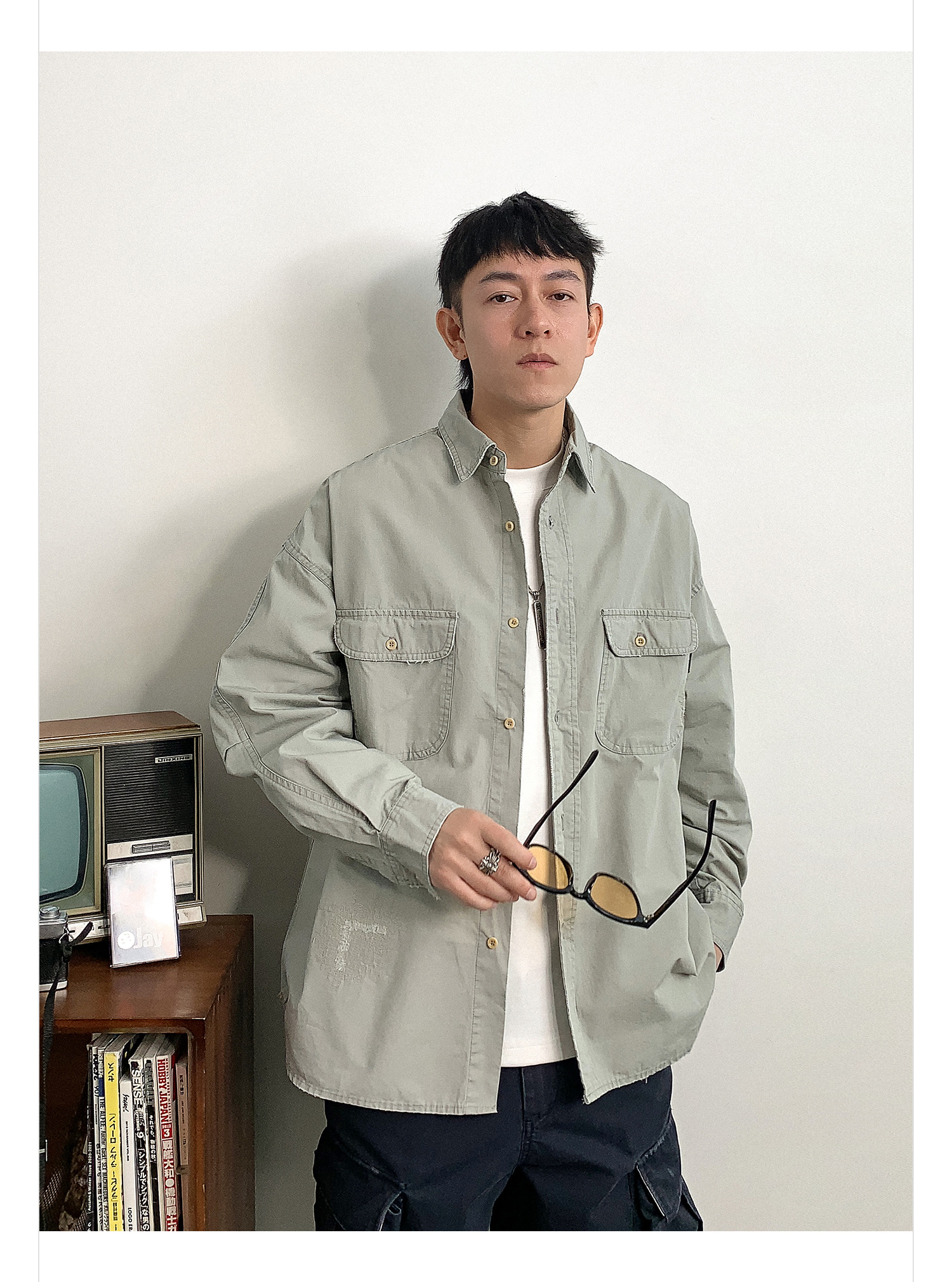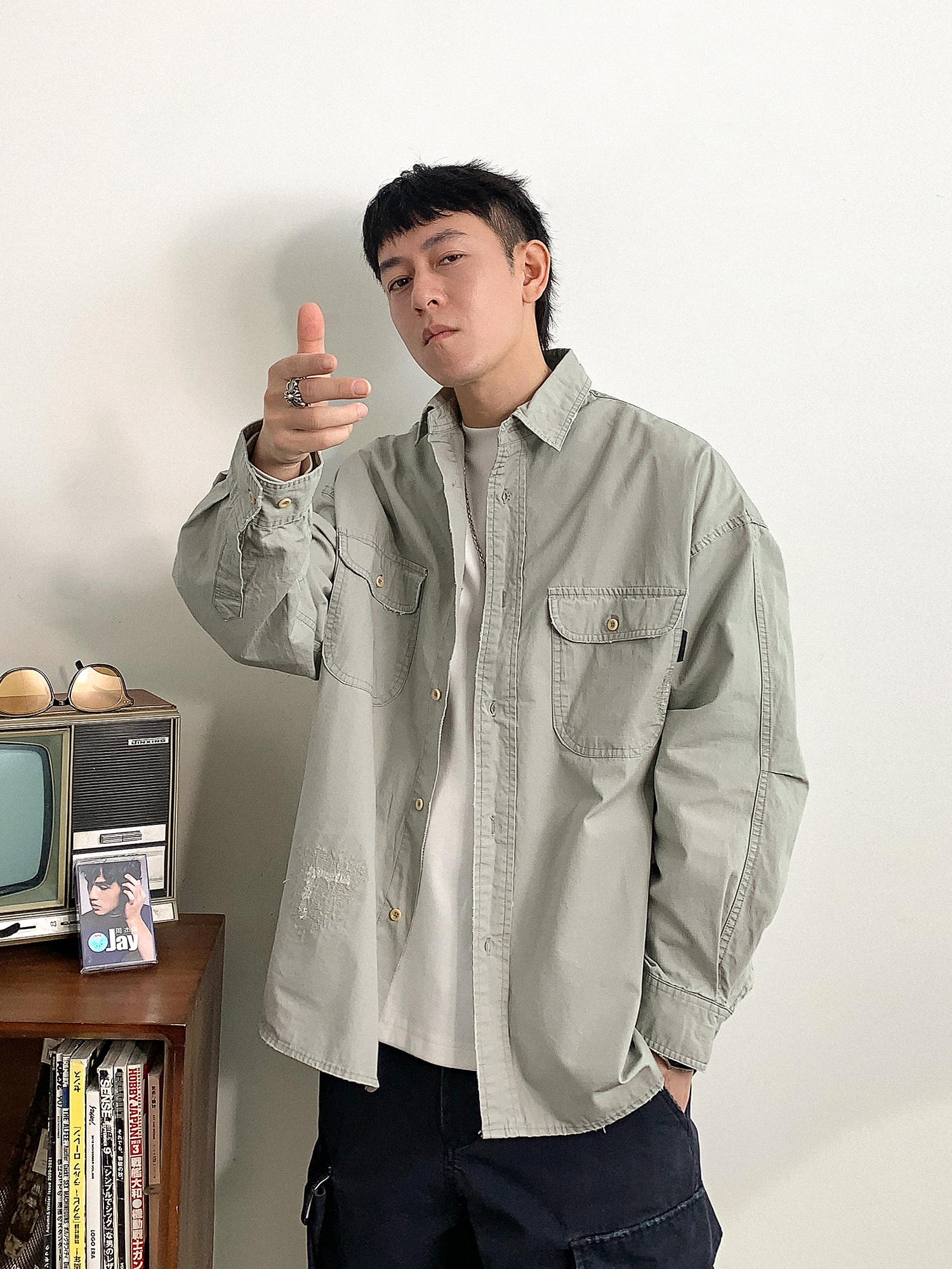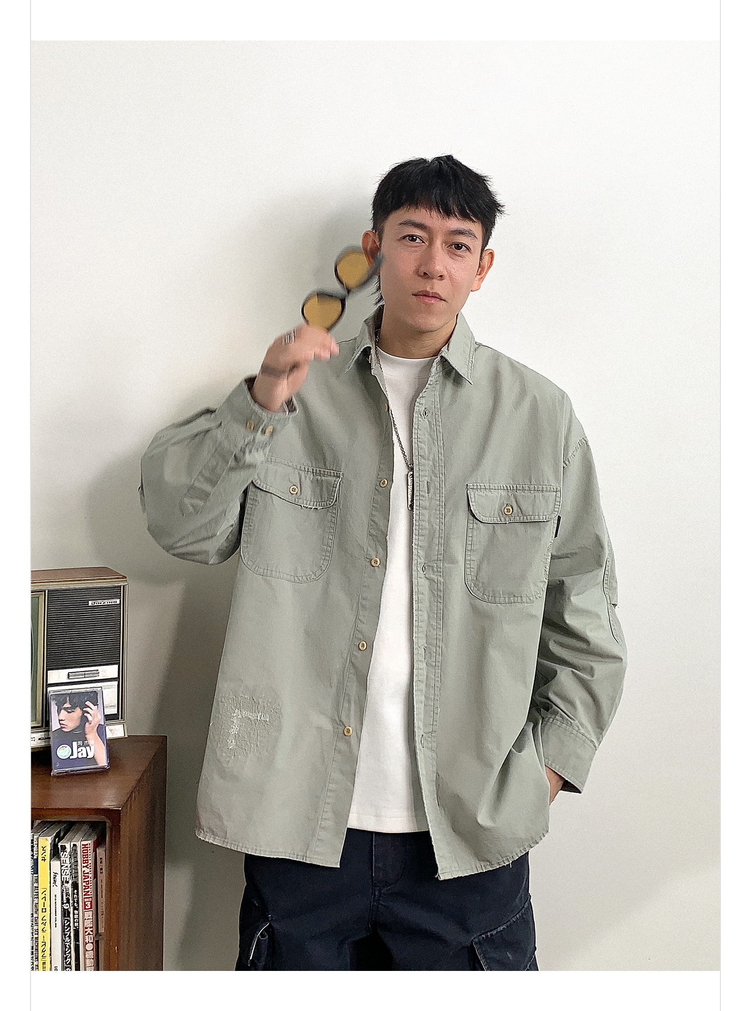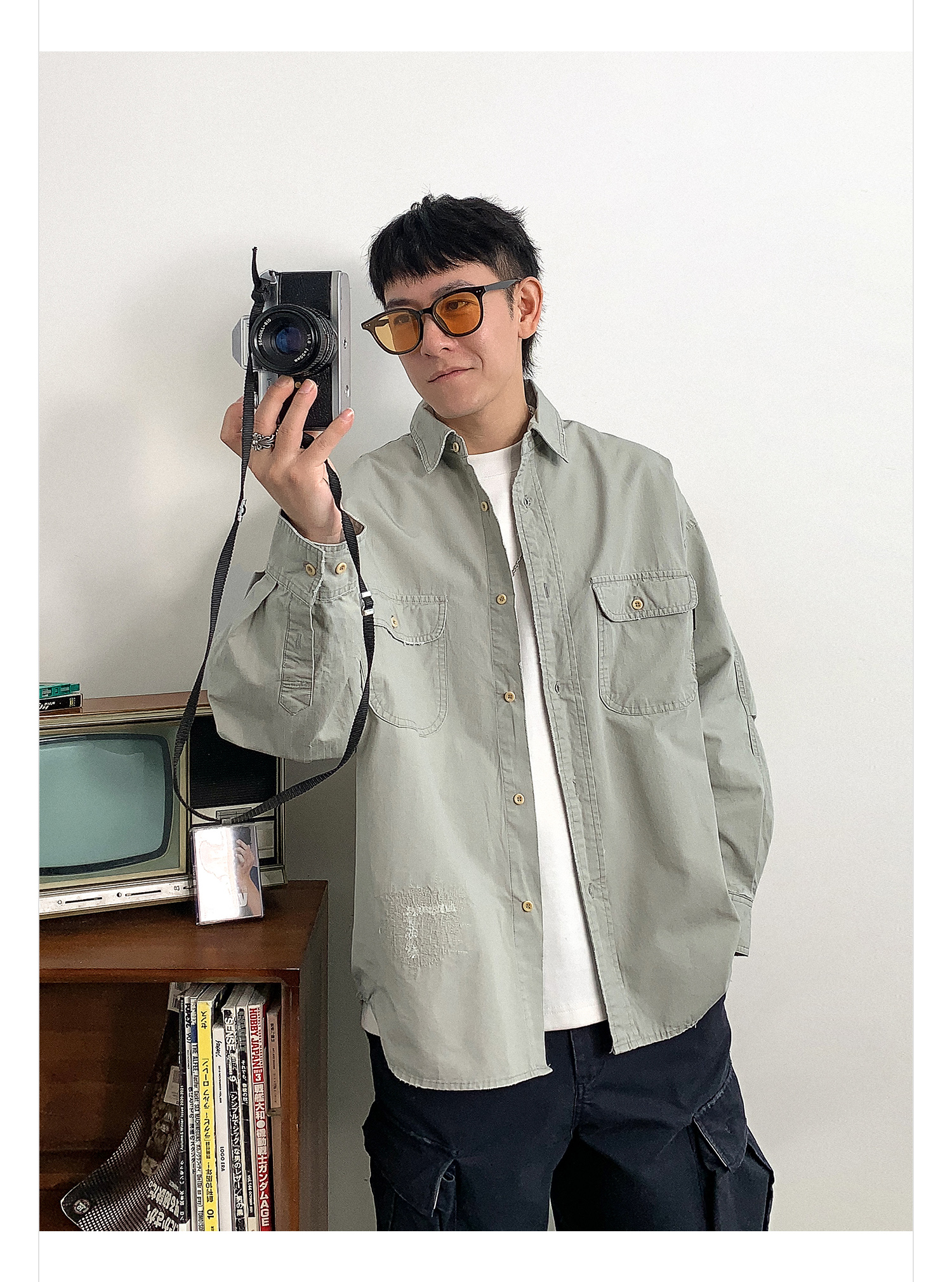 徐太浪日系复古工装长袖衬衫男2025春季新款休闲拼接口袋衬衣外套