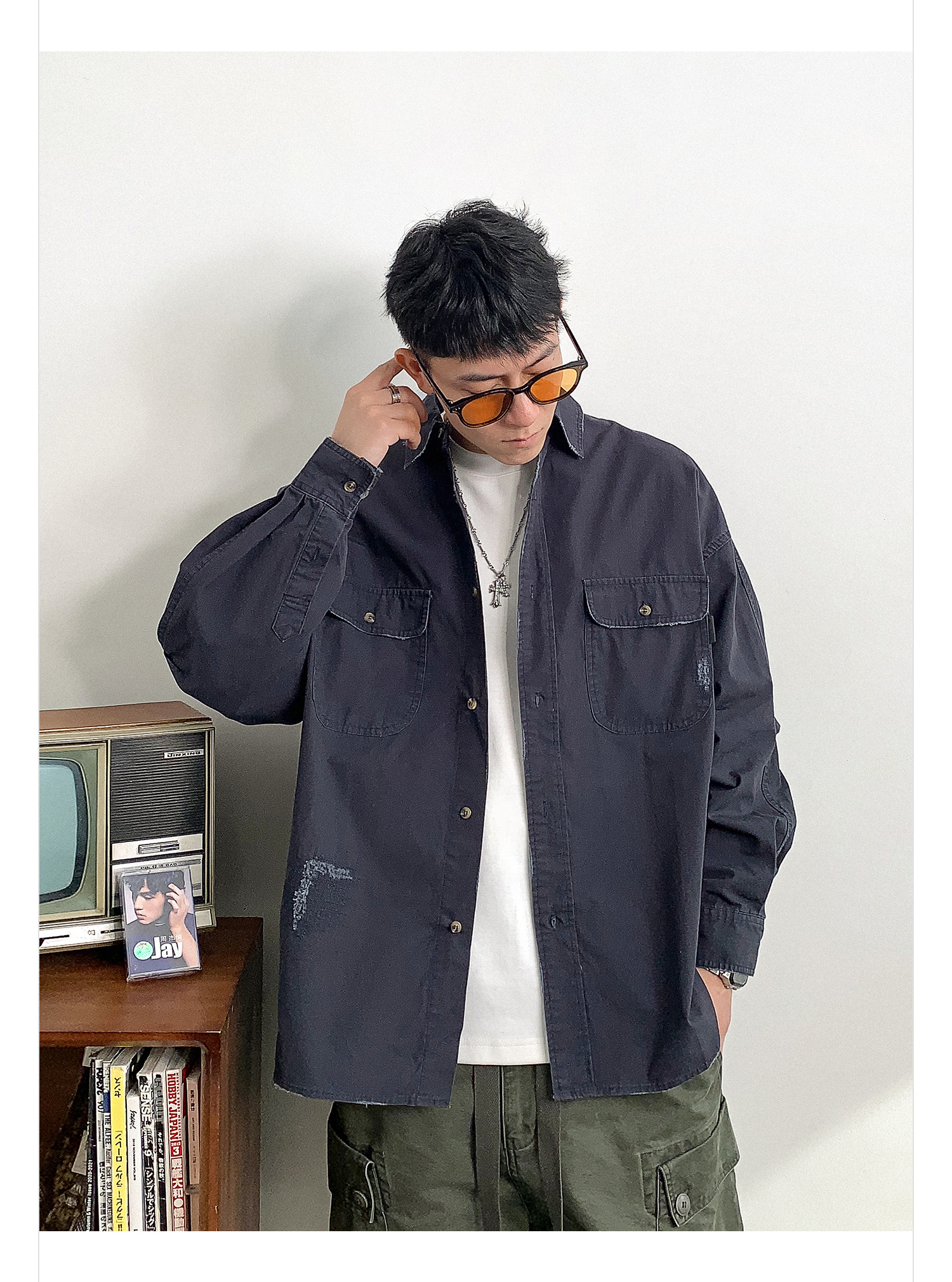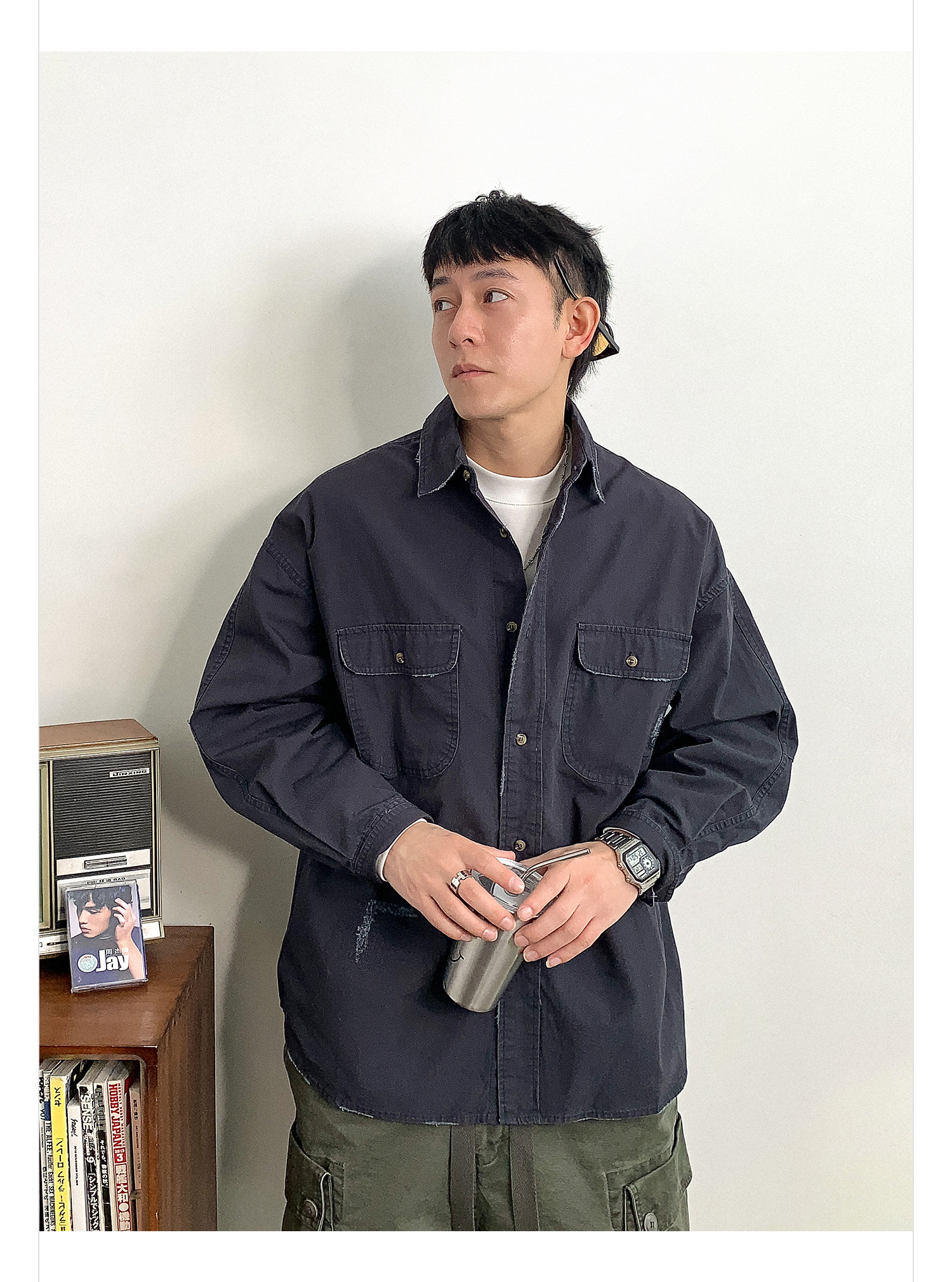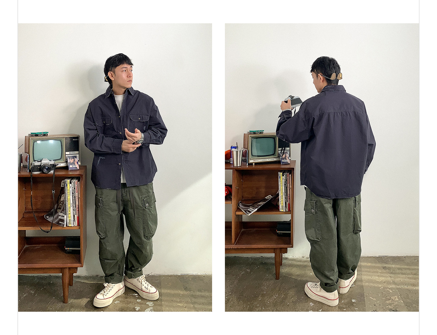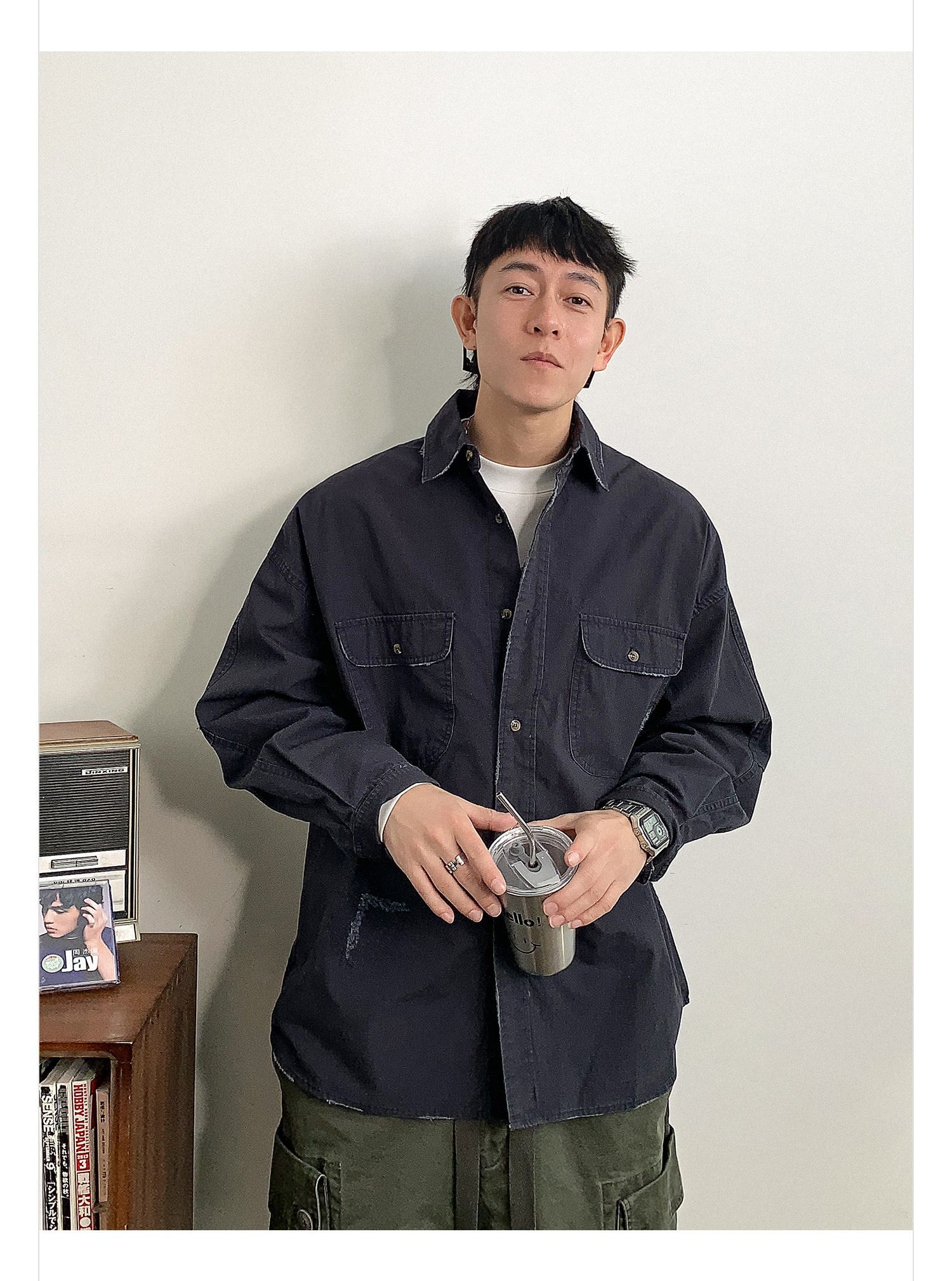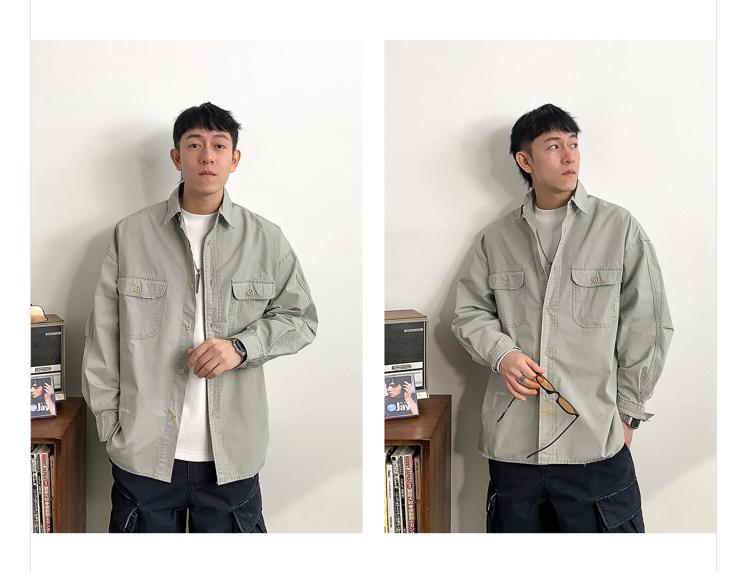 徐太浪日系复古工装长袖衬衫男2025春季新款休闲拼接口袋衬衣外套