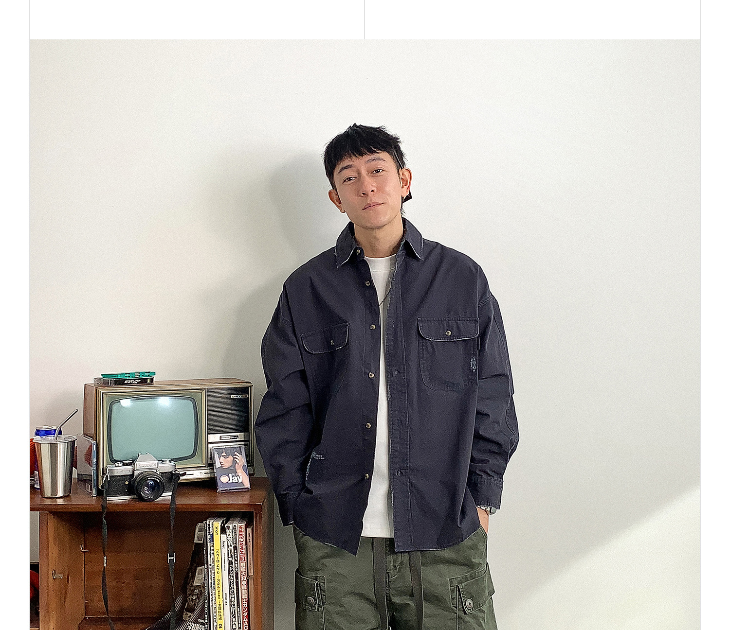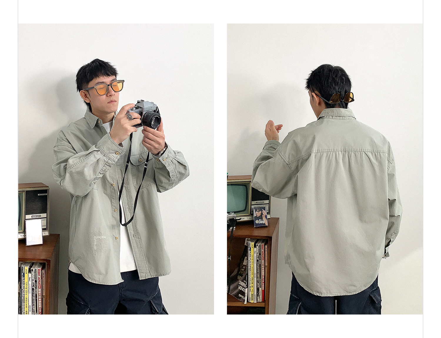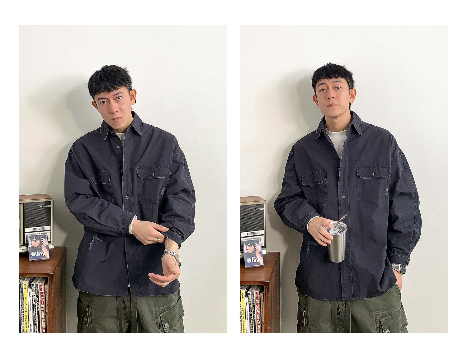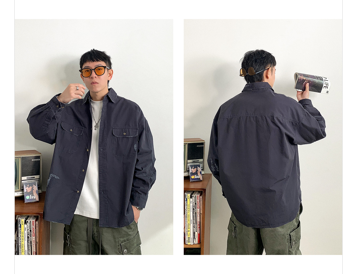 徐太浪日系复古工装长袖衬衫男2025春季新款休闲拼接口袋衬衣外套