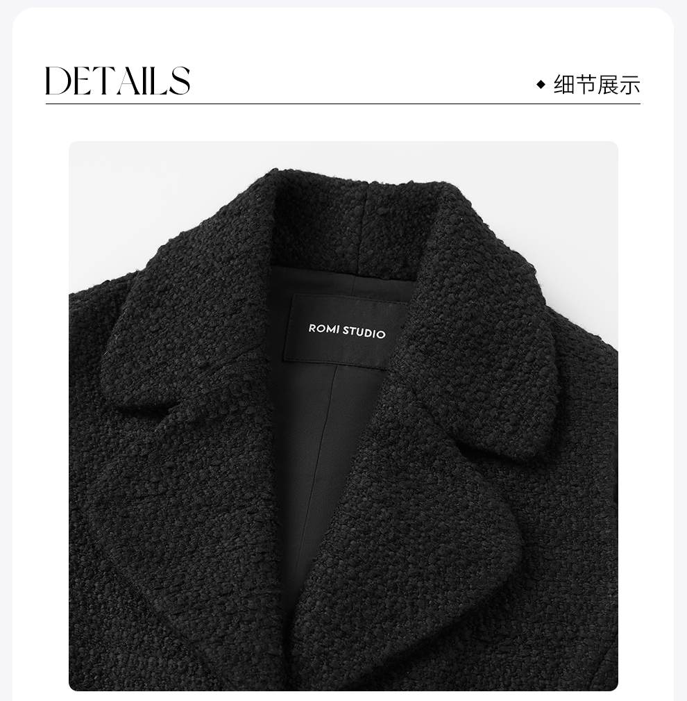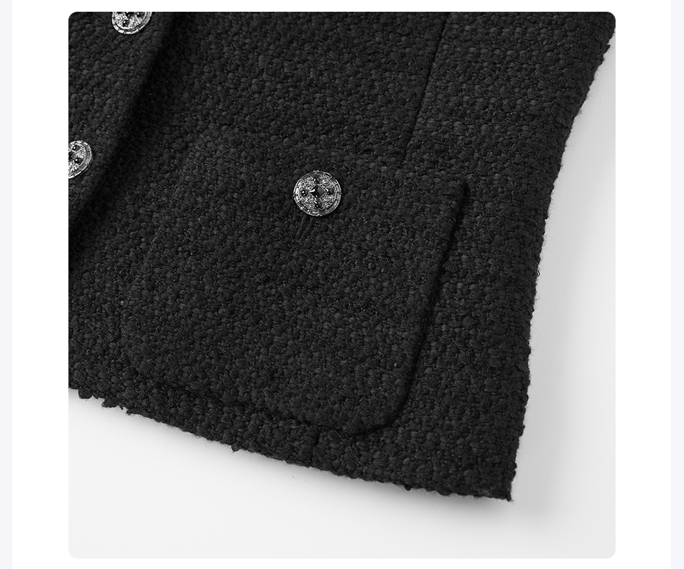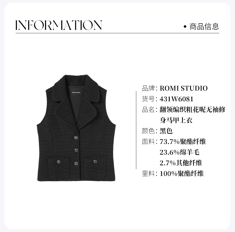 ROMI STUDIO“法式优雅”绵羊毛混纺粗花呢小香风翻领马甲 431W6081