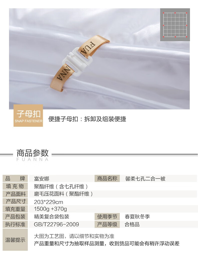 富安娜家纺被芯馨柔七孔二合一被\203*229cm\1500g+370g