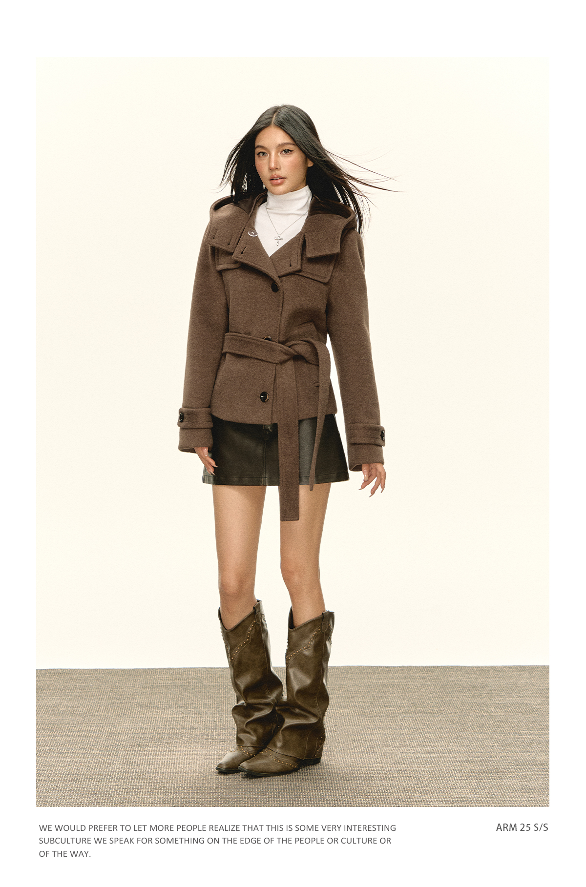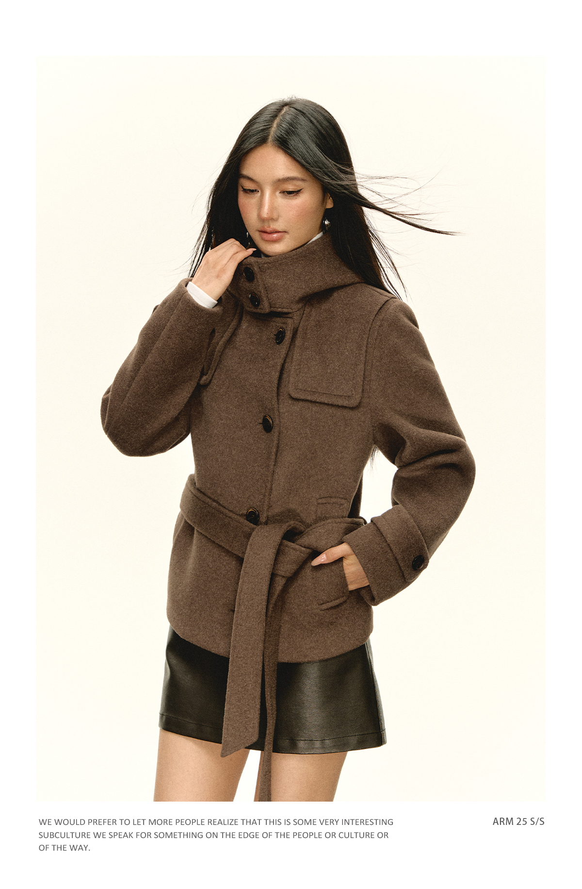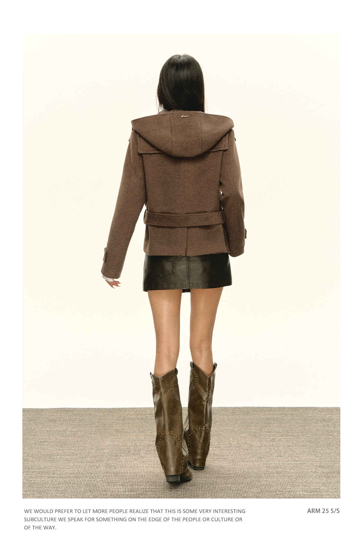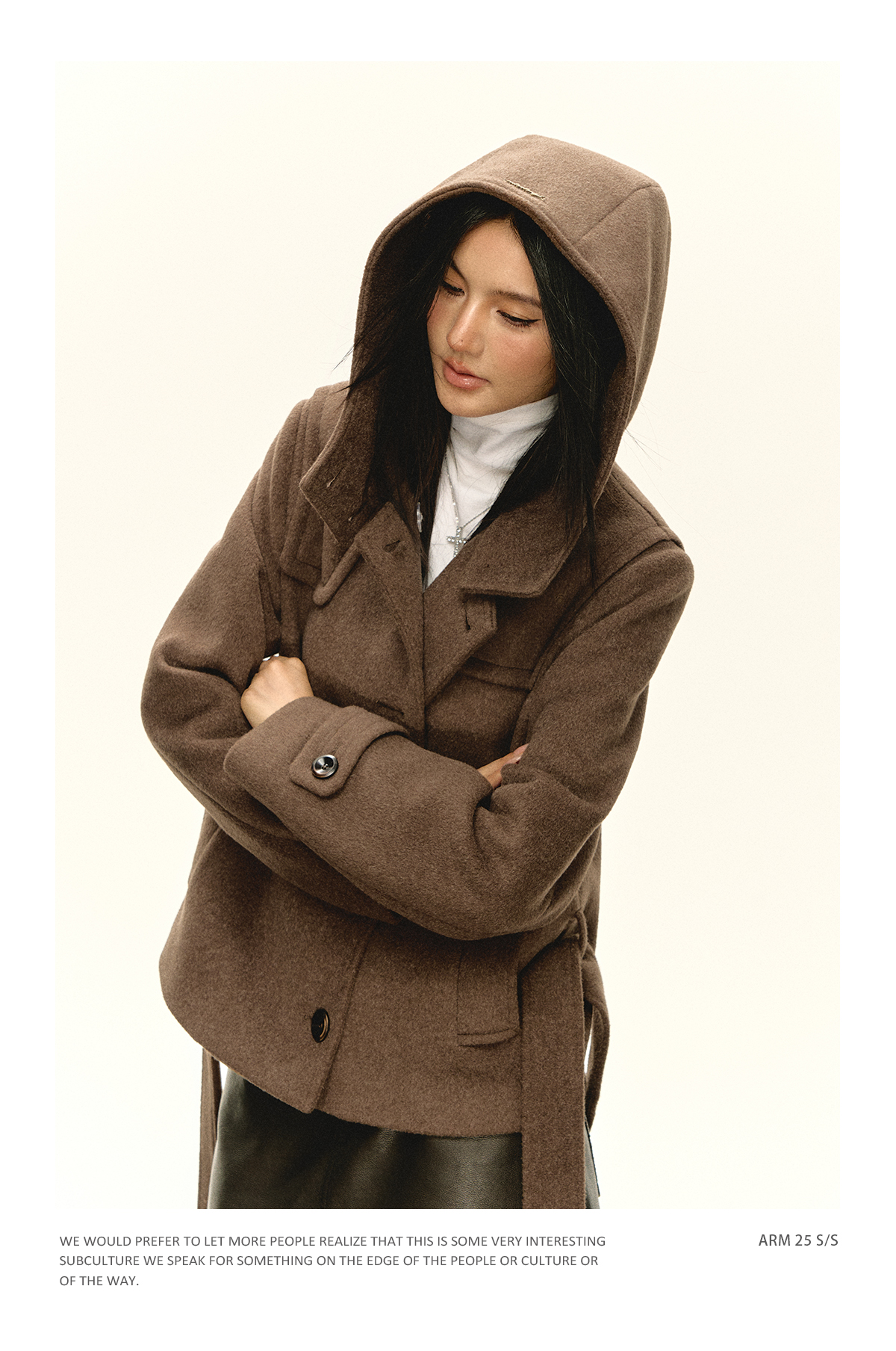 Ariseism 美式复古设计感咖色连帽毛昵大衣女秋季新款上衣外套