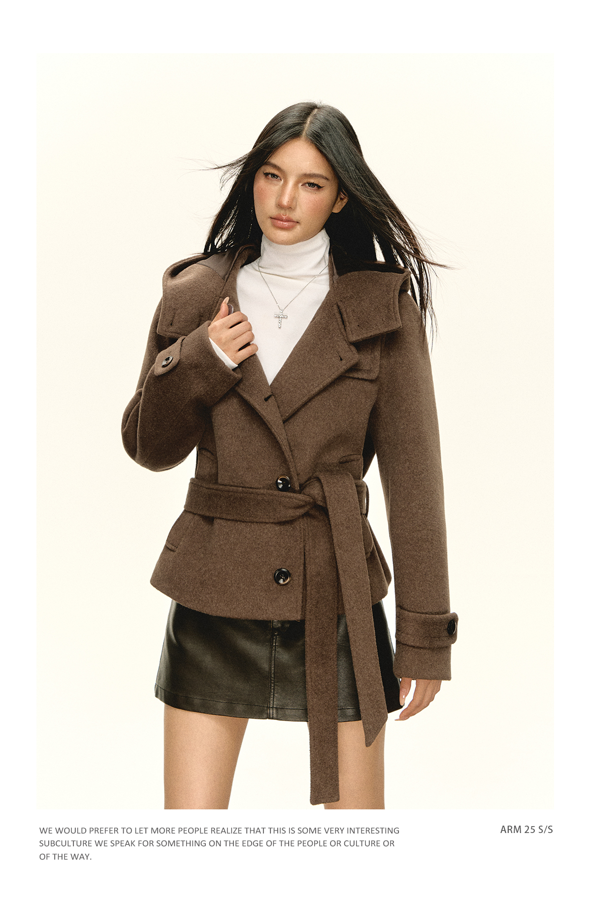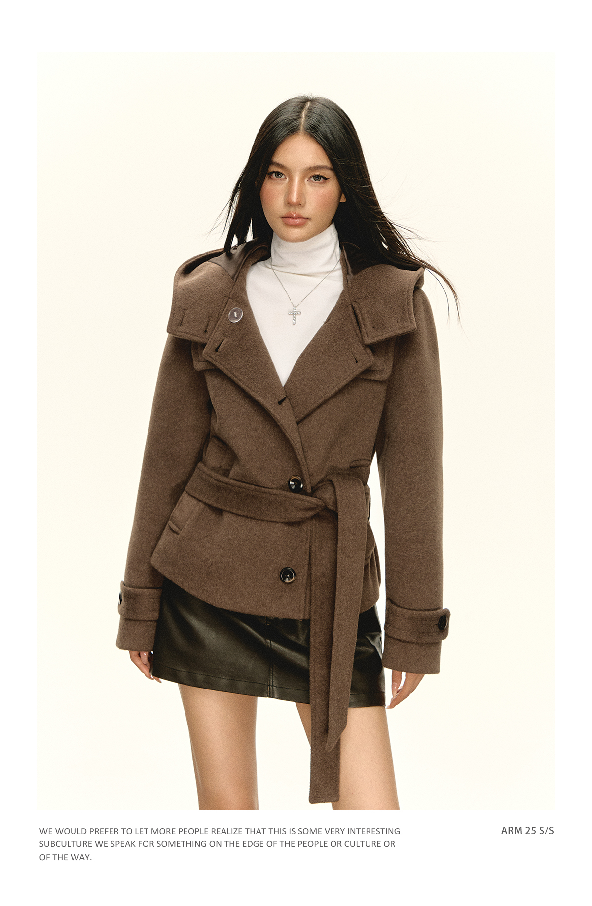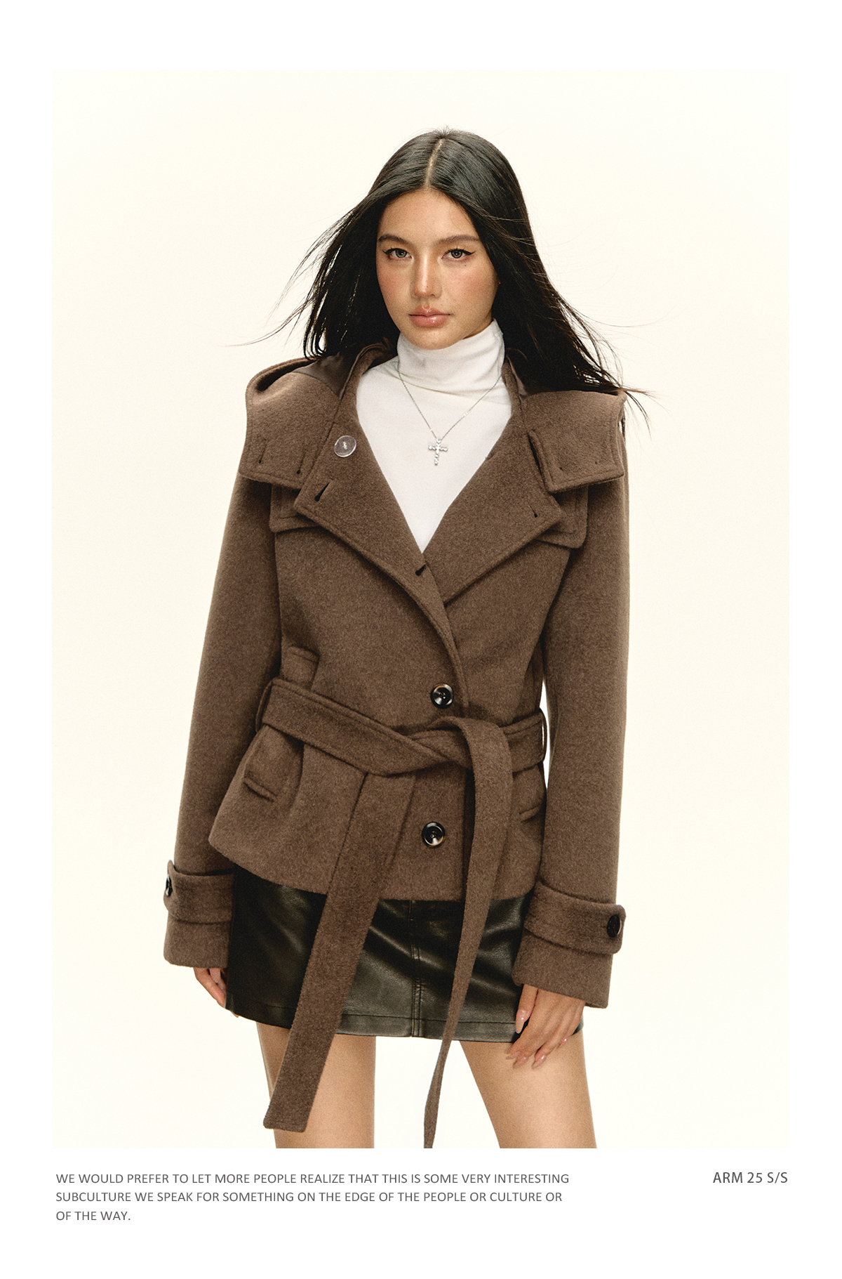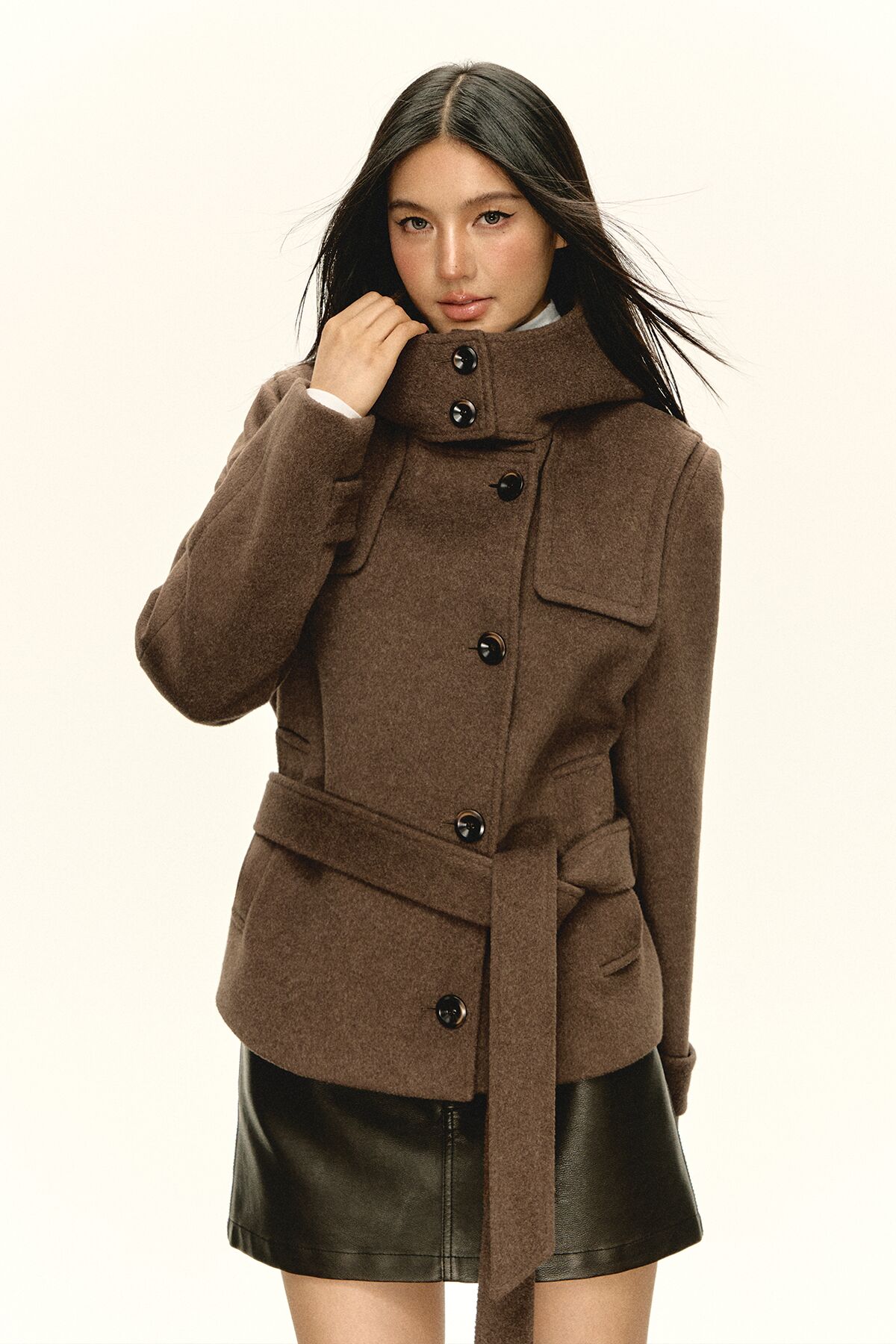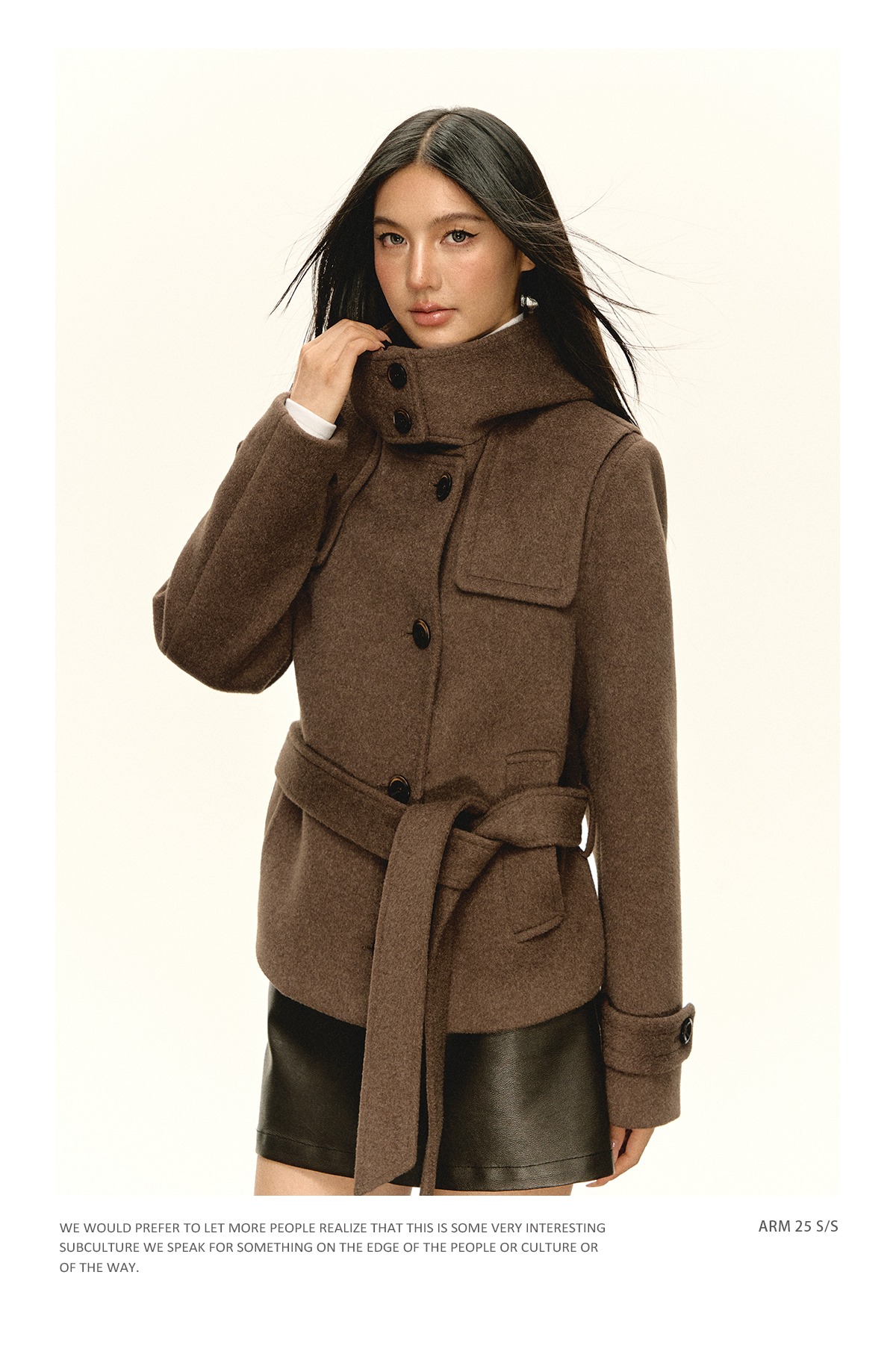 Ariseism 美式复古设计感咖色连帽毛昵大衣女秋季新款上衣外套