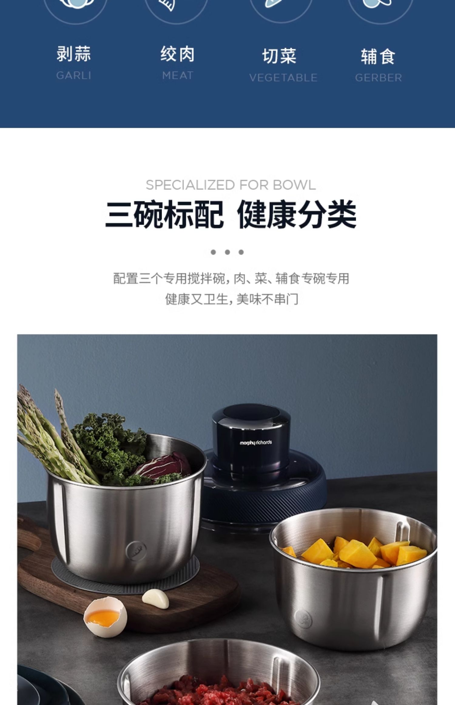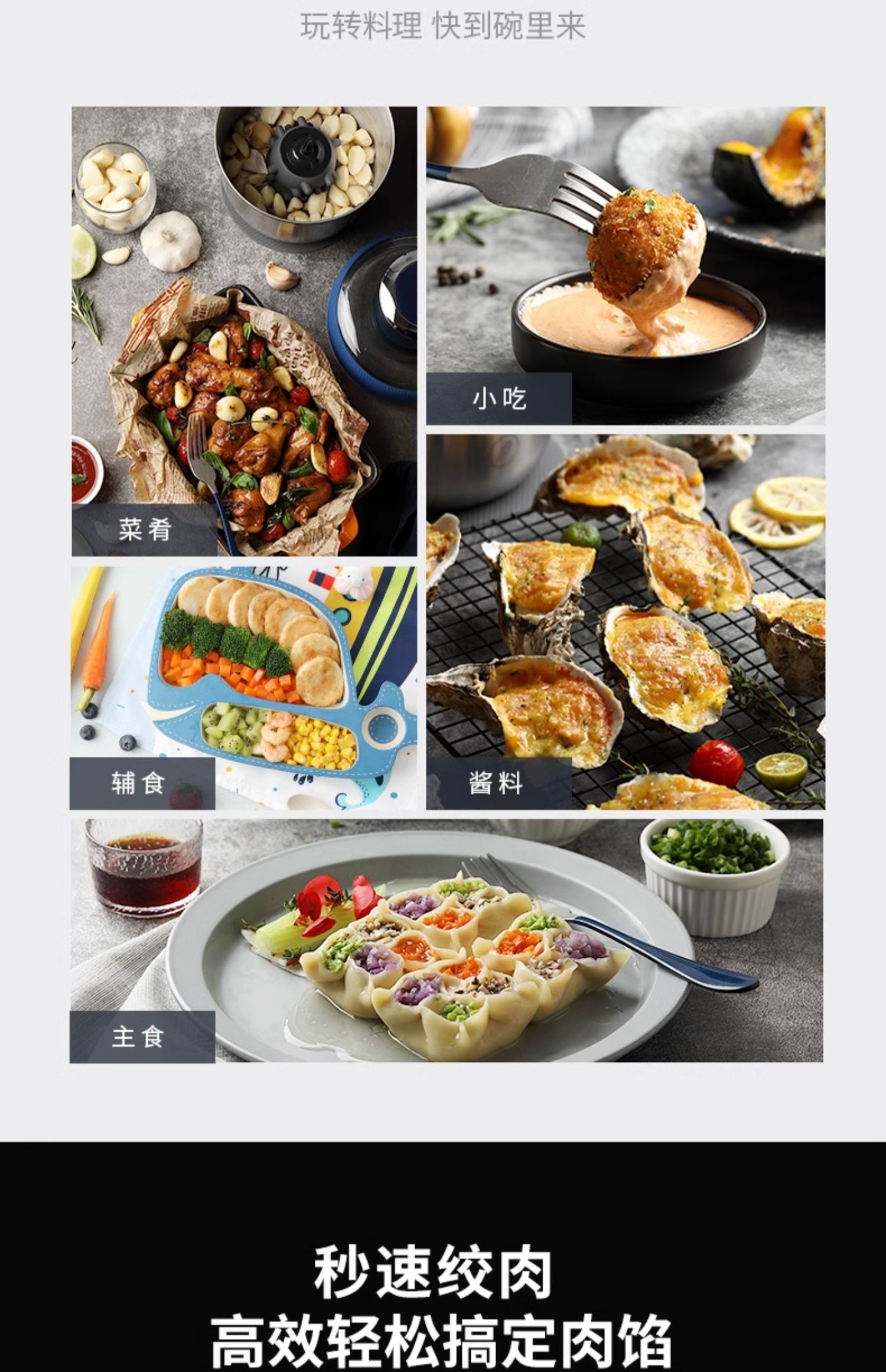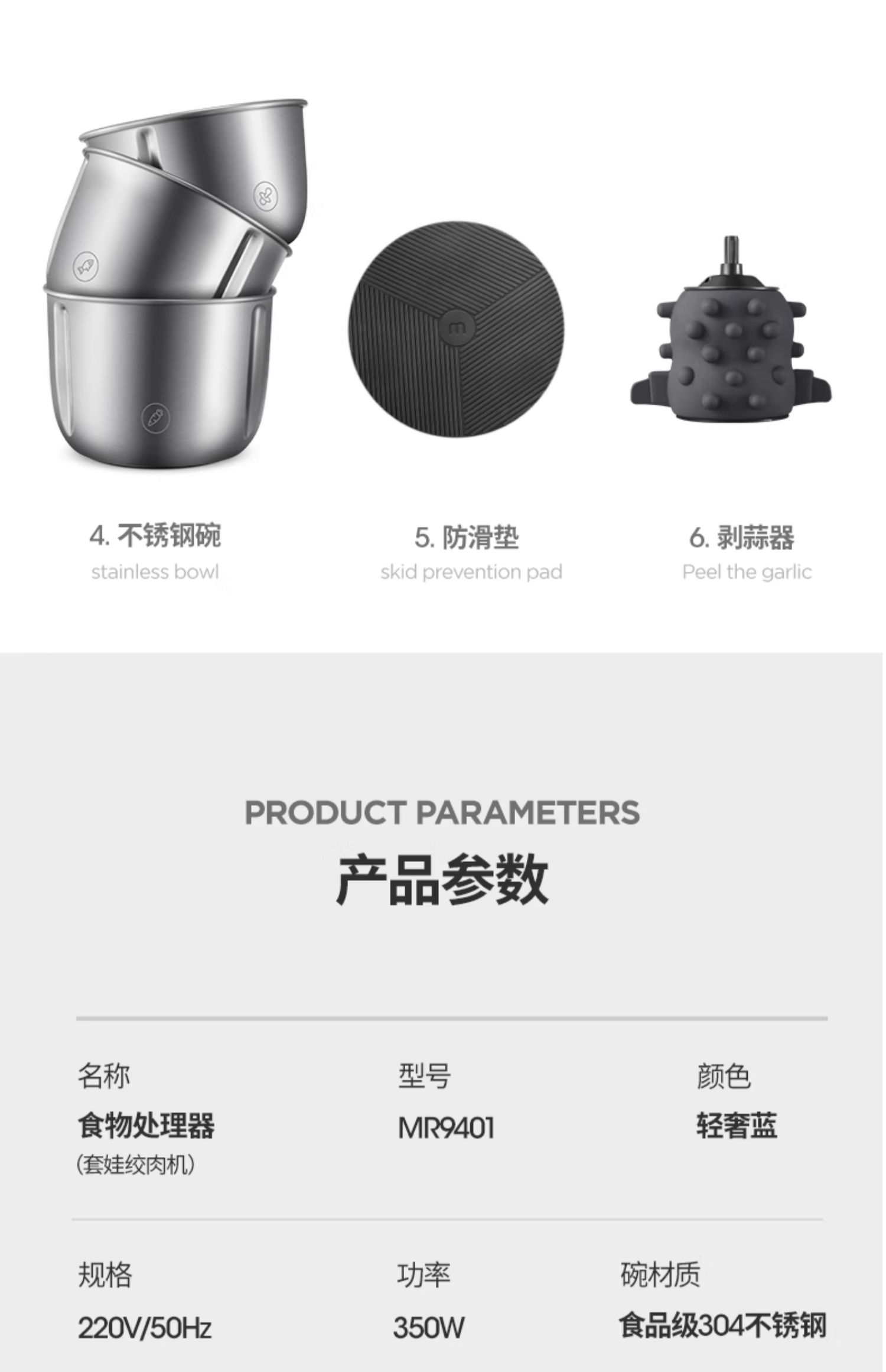 摩飞食物处理机绞肉机家用电动小型多功能魔飞辅食搅拌料理机不锈钢碎肉馅机 MR9401A