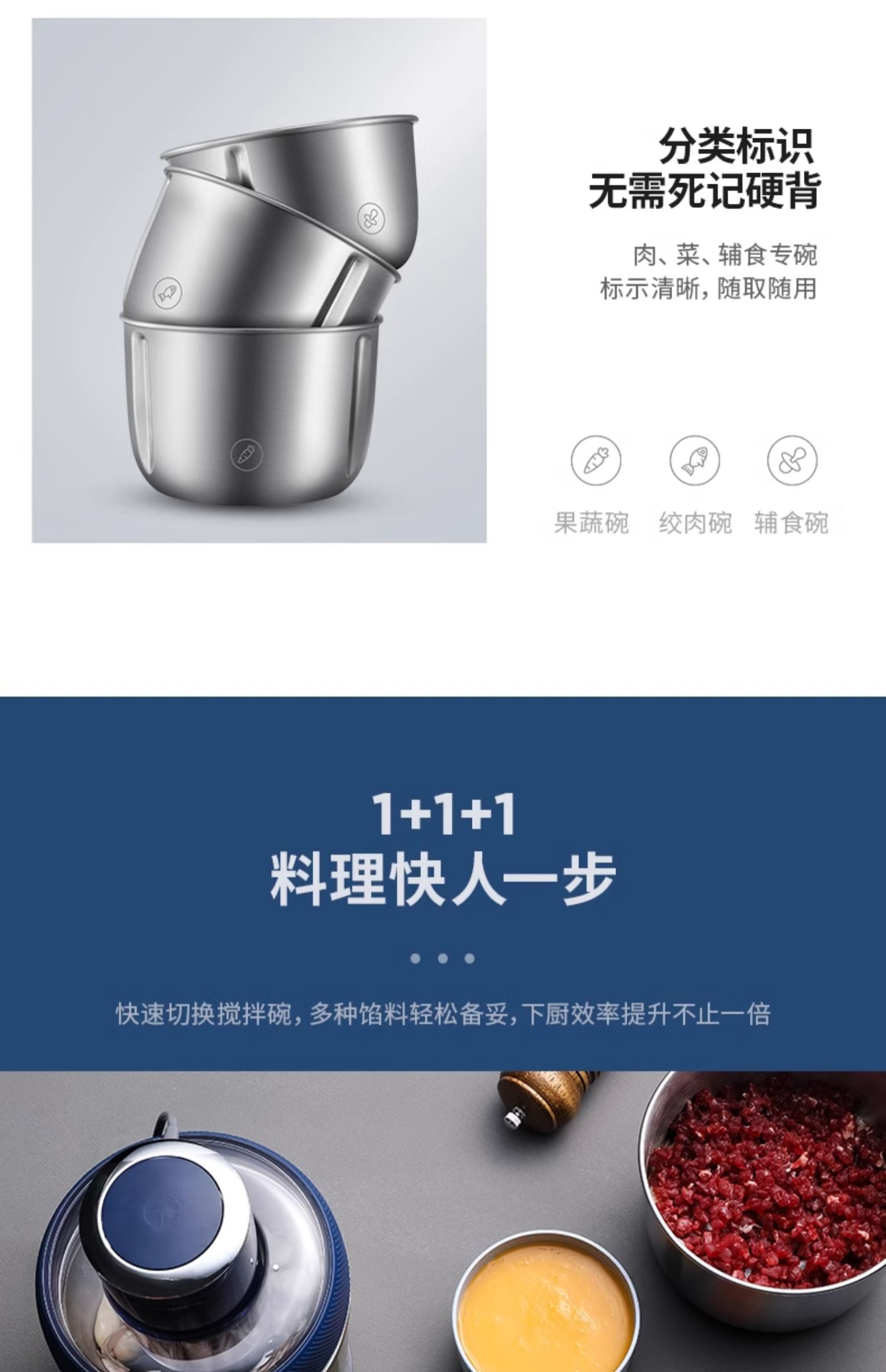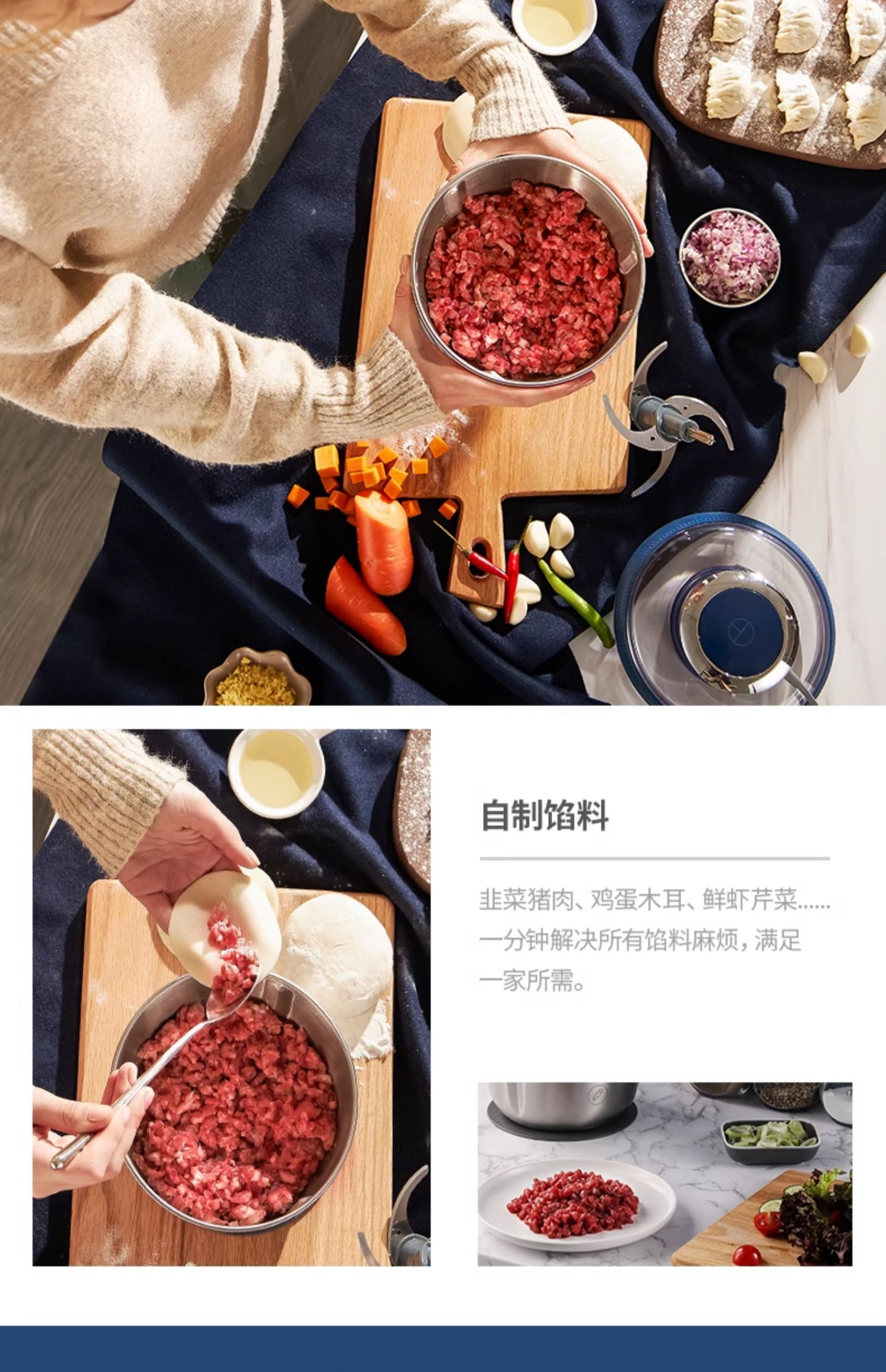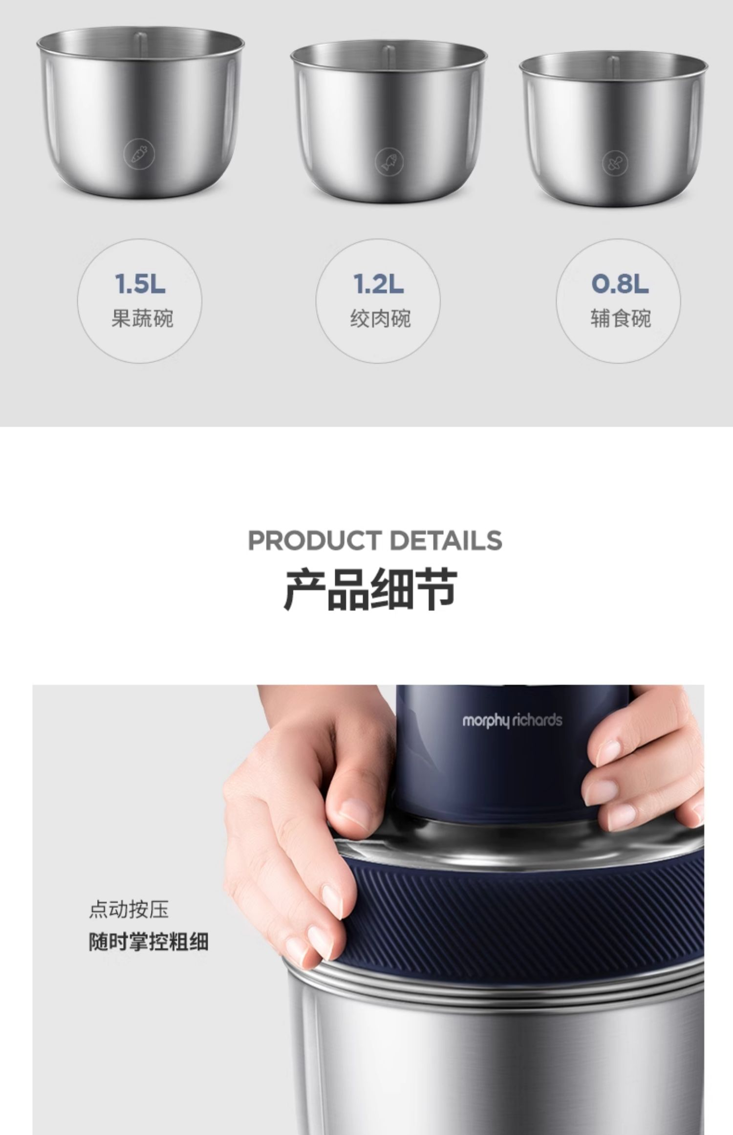 摩飞食物处理机绞肉机家用电动小型多功能魔飞辅食搅拌料理机不锈钢碎肉馅机 MR9401A