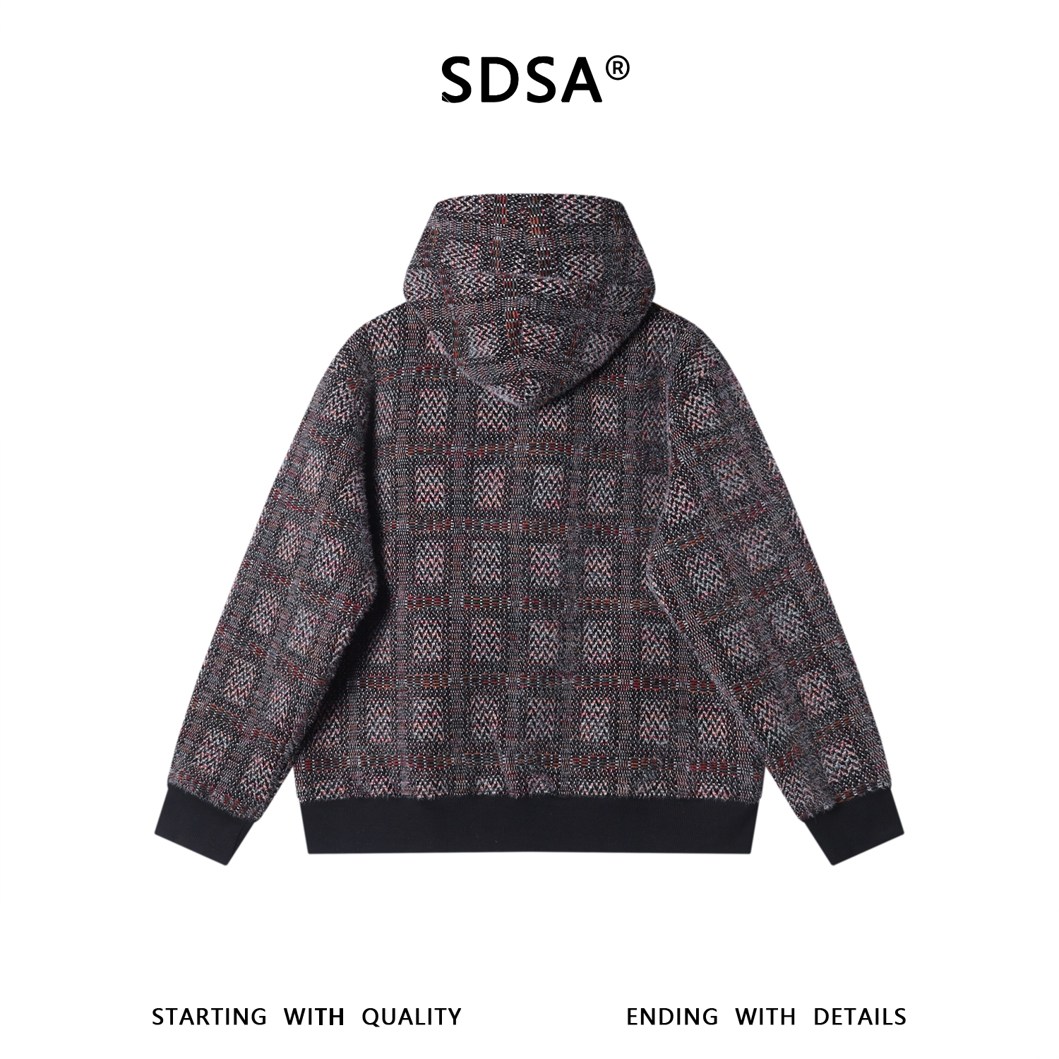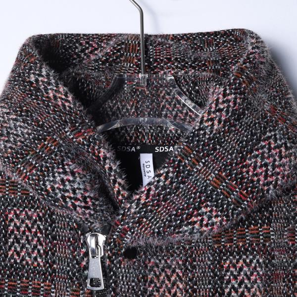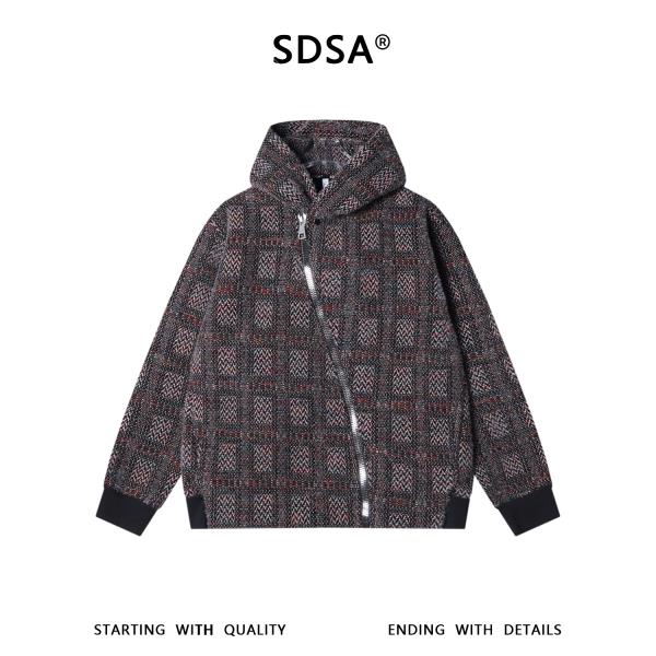 SDSA男士秋冬新款痞帅男装时尚简约绒毛格子斜拉链连帽卫衣百搭