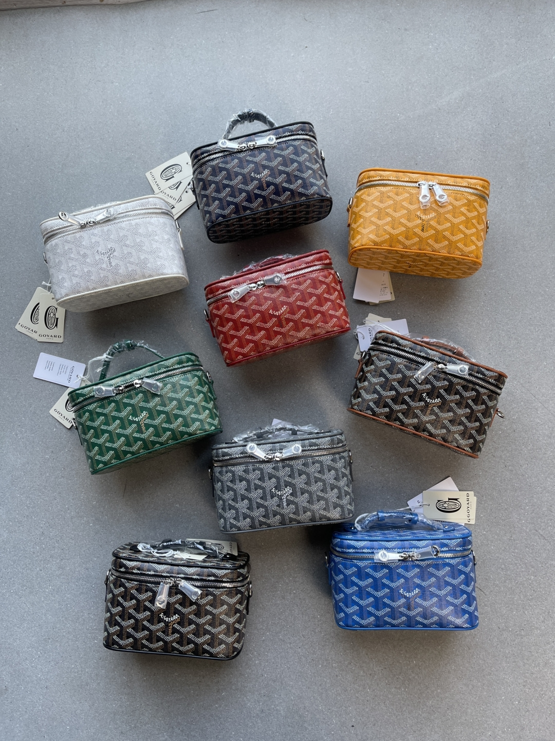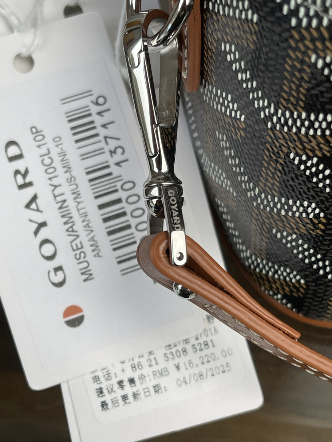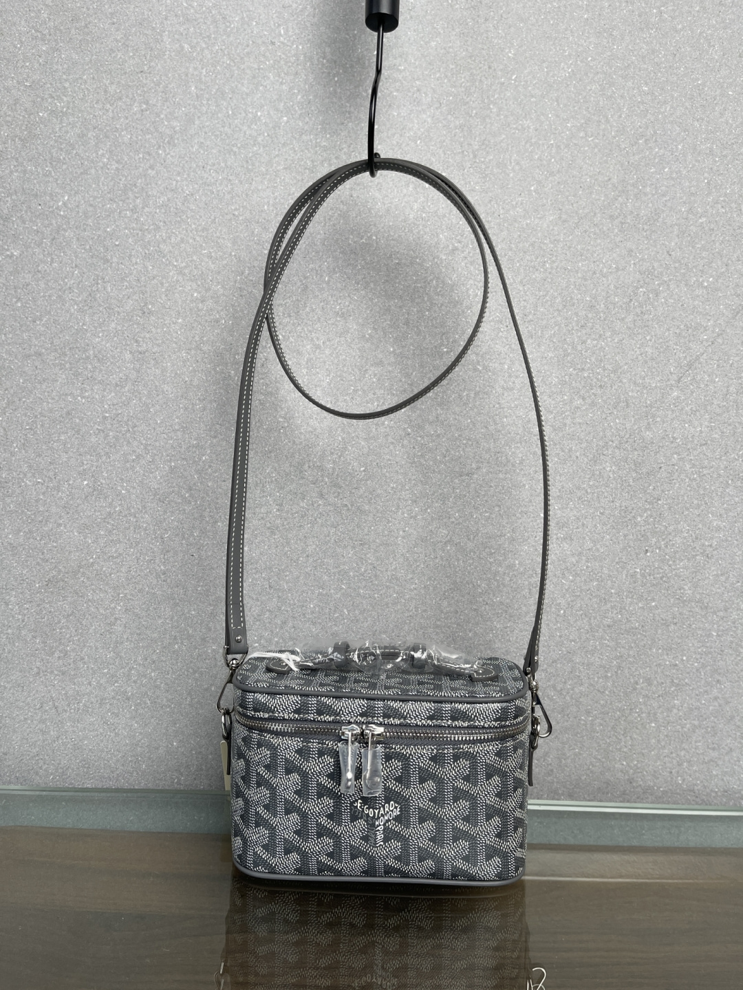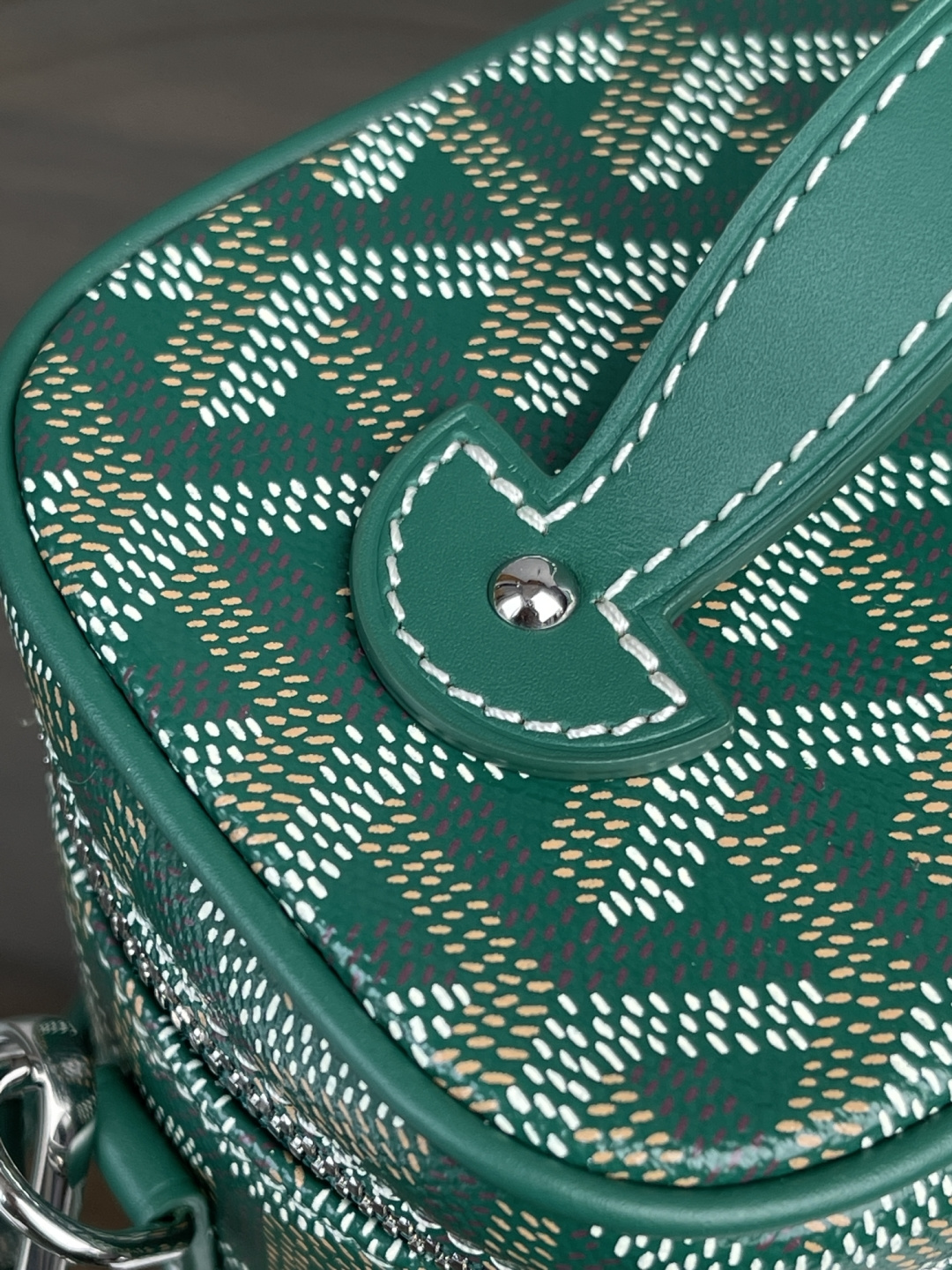 Goyard全新款Muse mini盒子包九色现货 尺寸:17x11.5x8cm 高端定制logo面料搭配头层平纹小牛皮 316不锈钢材质贵金属(钯)电镀五金件 市场上的同款几乎是清一色的锌合金材质加镀叻五金件。无论材质还是工艺都比我们家廉价太多。不同材质不同工艺所呈现出来的细致度与耐用度都是云泥之别。廉价的材质也让产品彻底与高级感无缘了。 另外,盒子包的工艺难度也相对比较大,制作难度高。绝非一些无沉淀无底韵的工厂能够驾驭。所以更完美的细节,更美观的外观,也是我们的产品区别于市场同款的显著的特征。