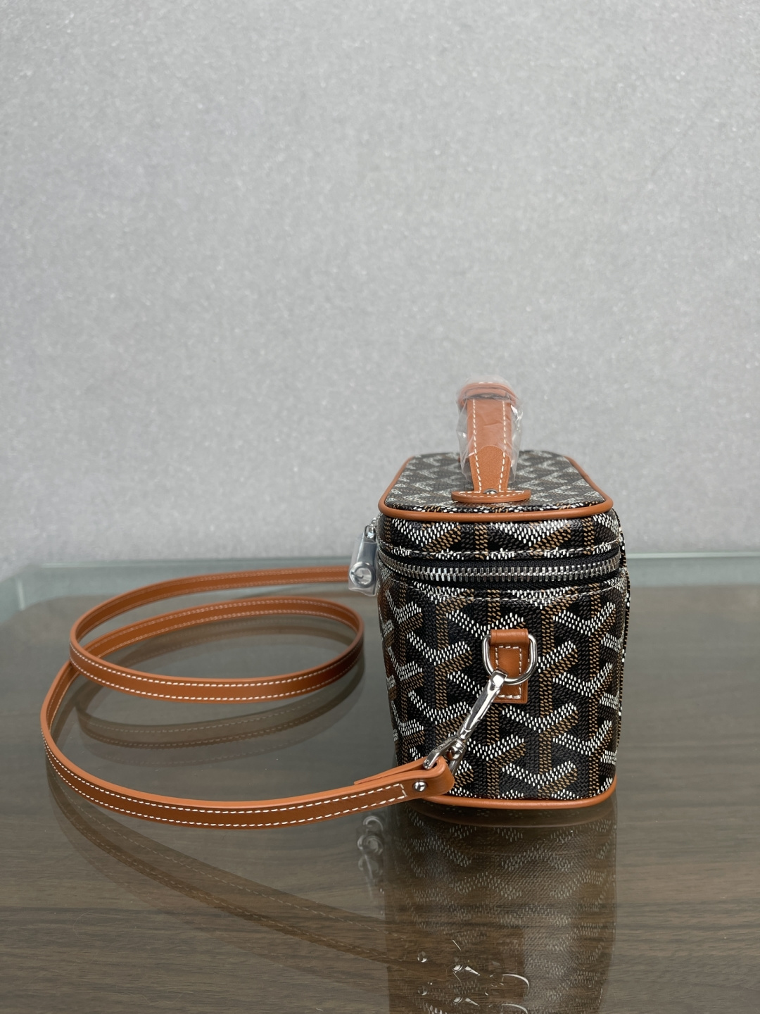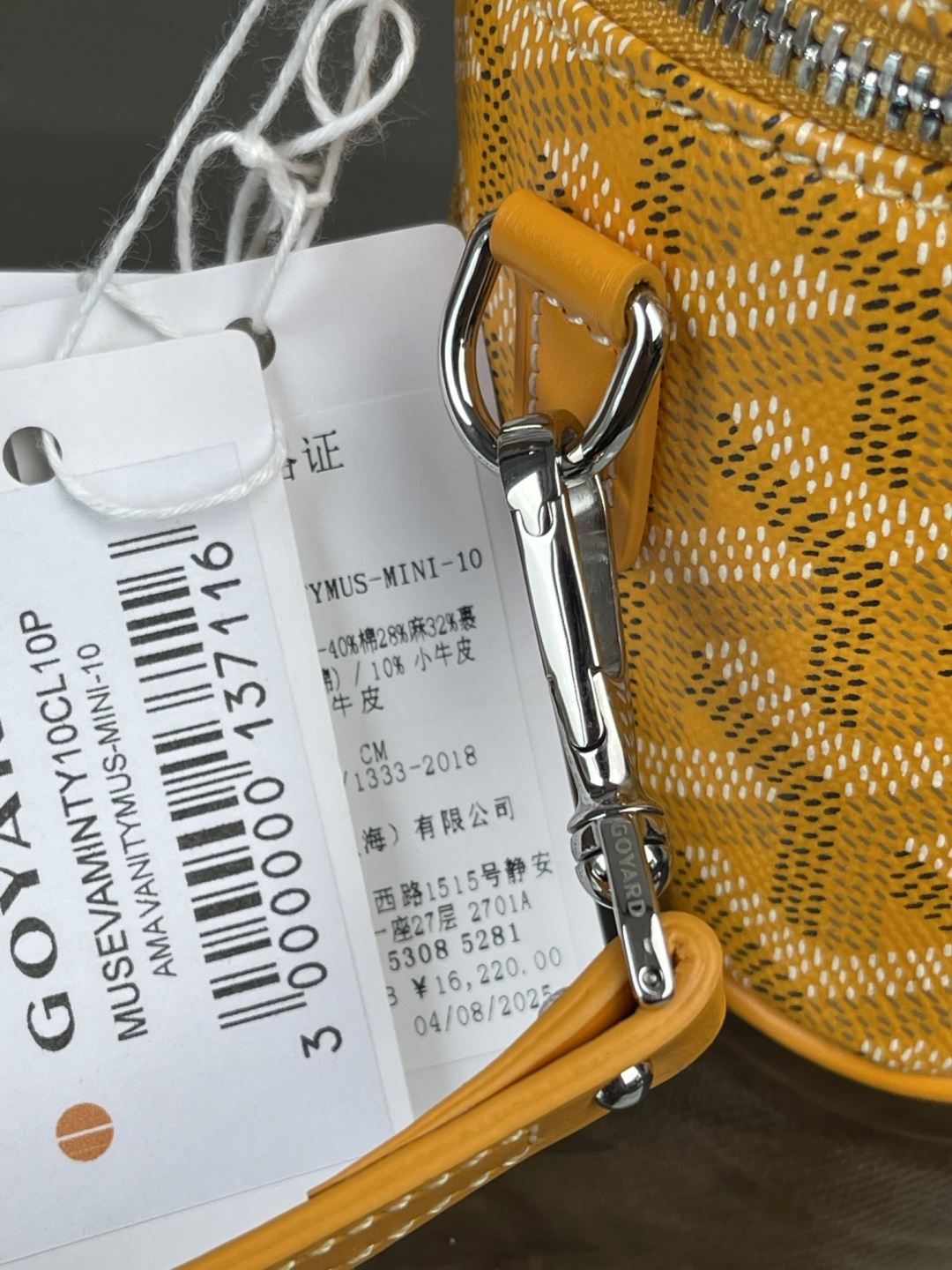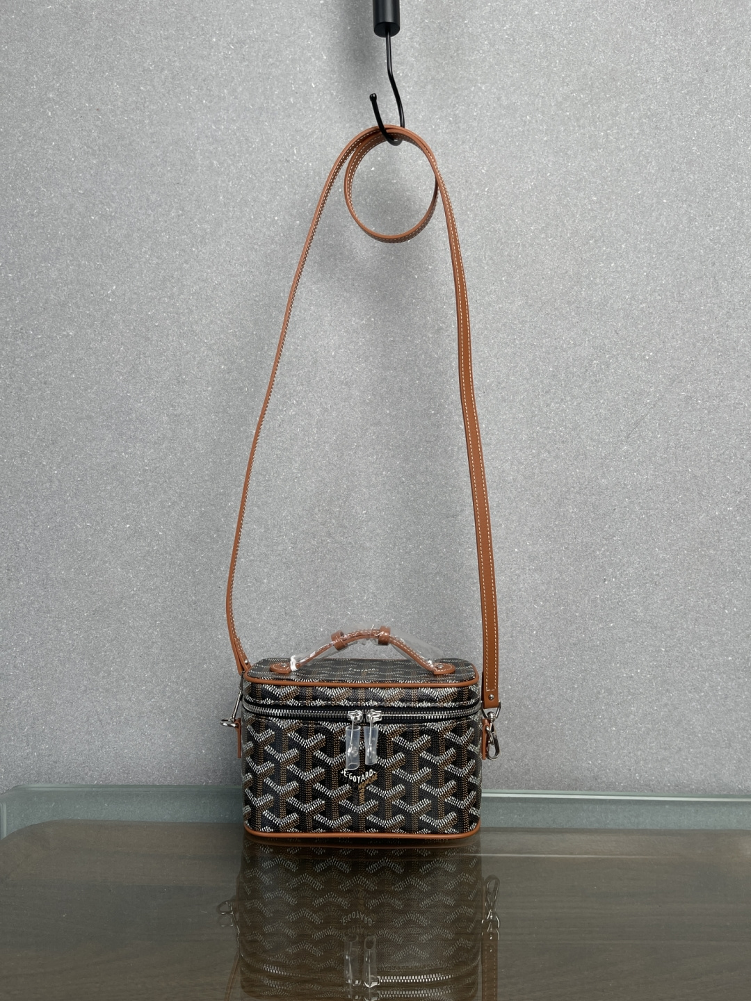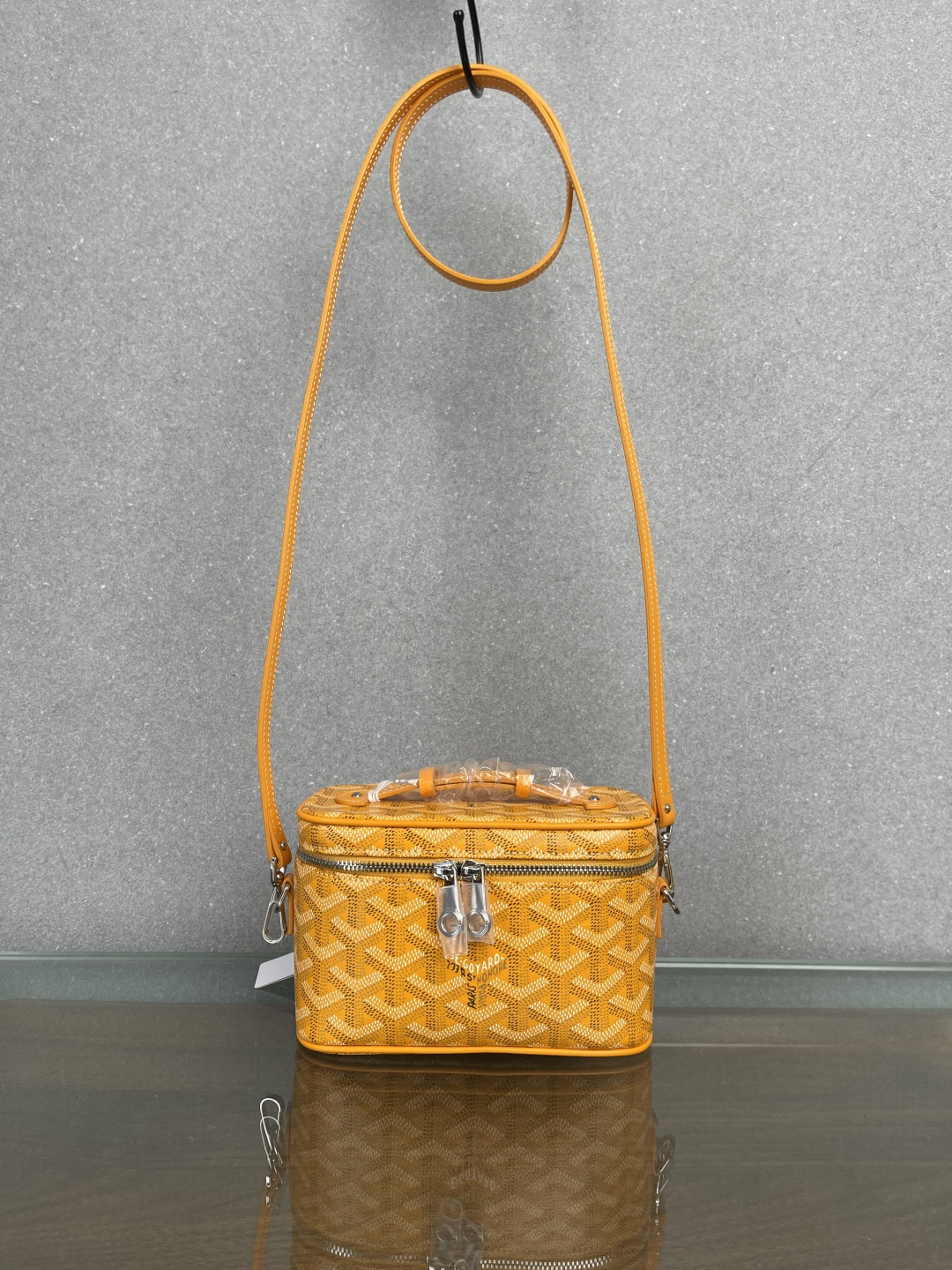 Goyard全新款Muse mini盒子包九色现货 尺寸:17x11.5x8cm 高端定制logo面料搭配头层平纹小牛皮 316不锈钢材质贵金属(钯)电镀五金件 市场上的同款几乎是清一色的锌合金材质加镀叻五金件。无论材质还是工艺都比我们家廉价太多。不同材质不同工艺所呈现出来的细致度与耐用度都是云泥之别。廉价的材质也让产品彻底与高级感无缘了。 另外,盒子包的工艺难度也相对比较大,制作难度高。绝非一些无沉淀无底韵的工厂能够驾驭。所以更完美的细节,更美观的外观,也是我们的产品区别于市场同款的显著的特征。