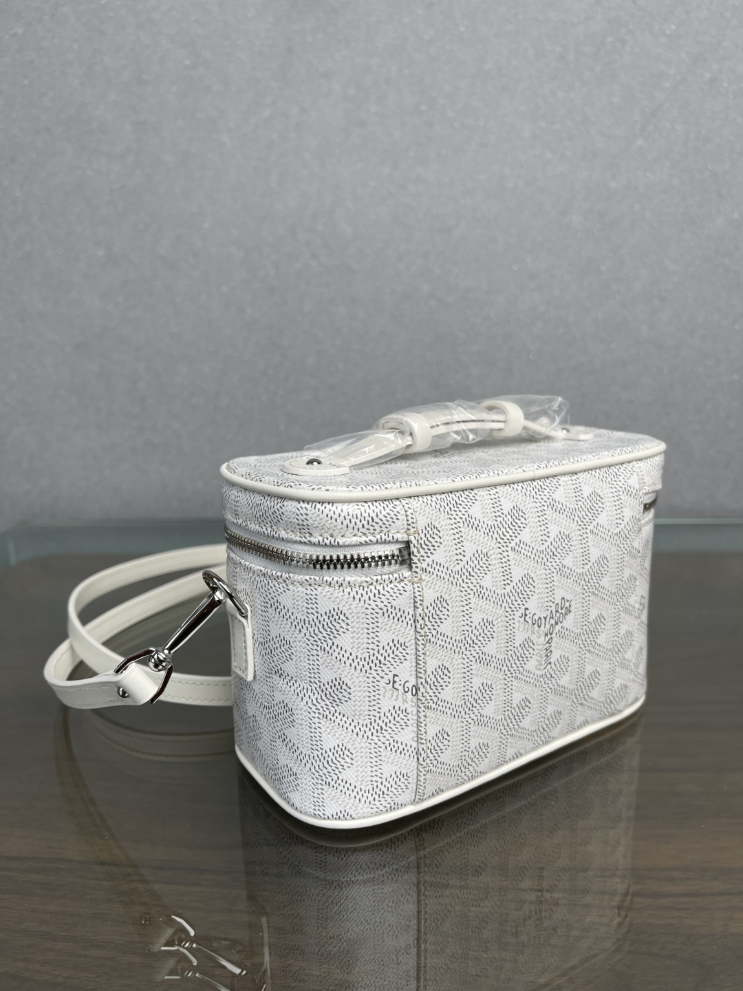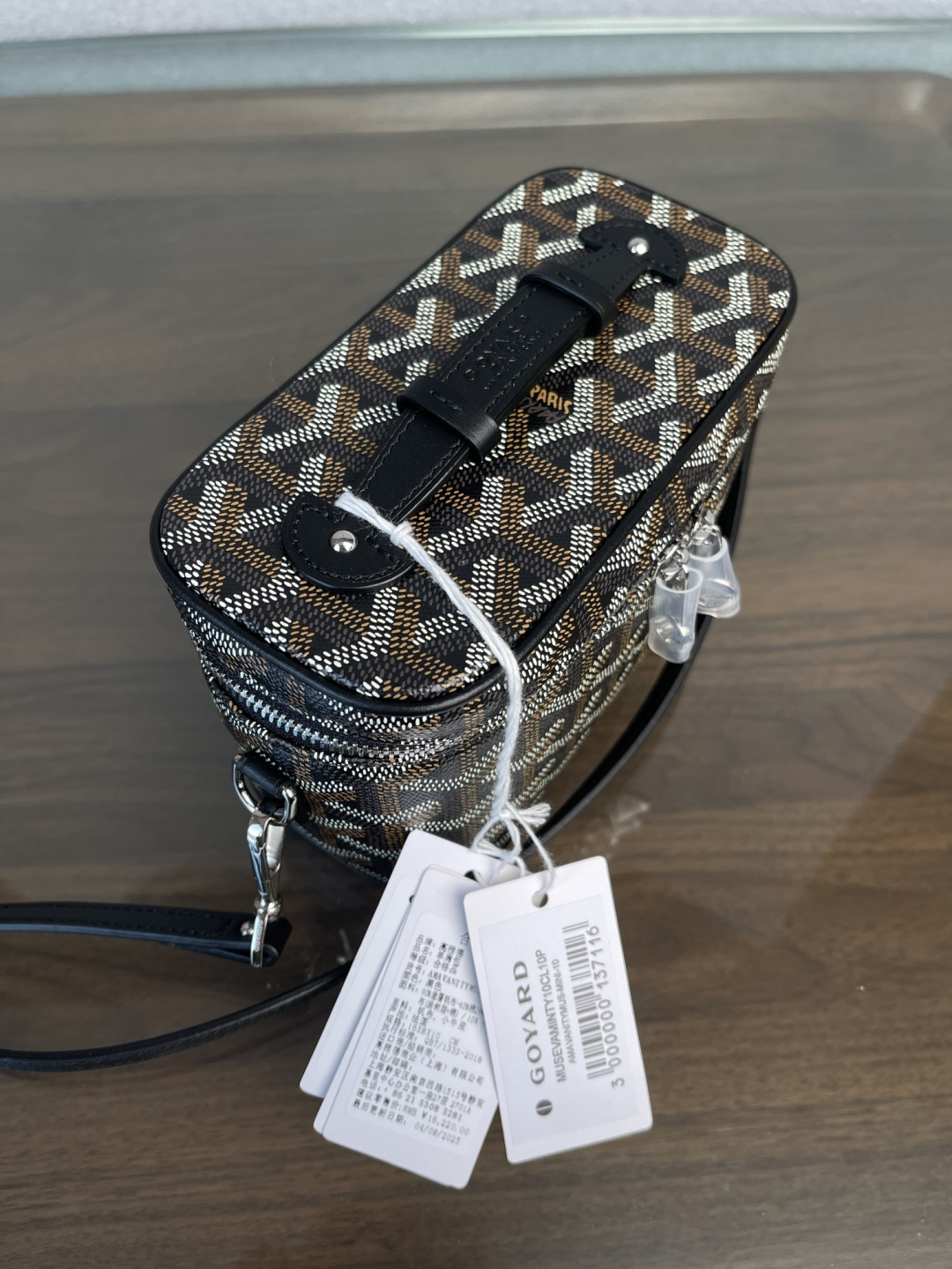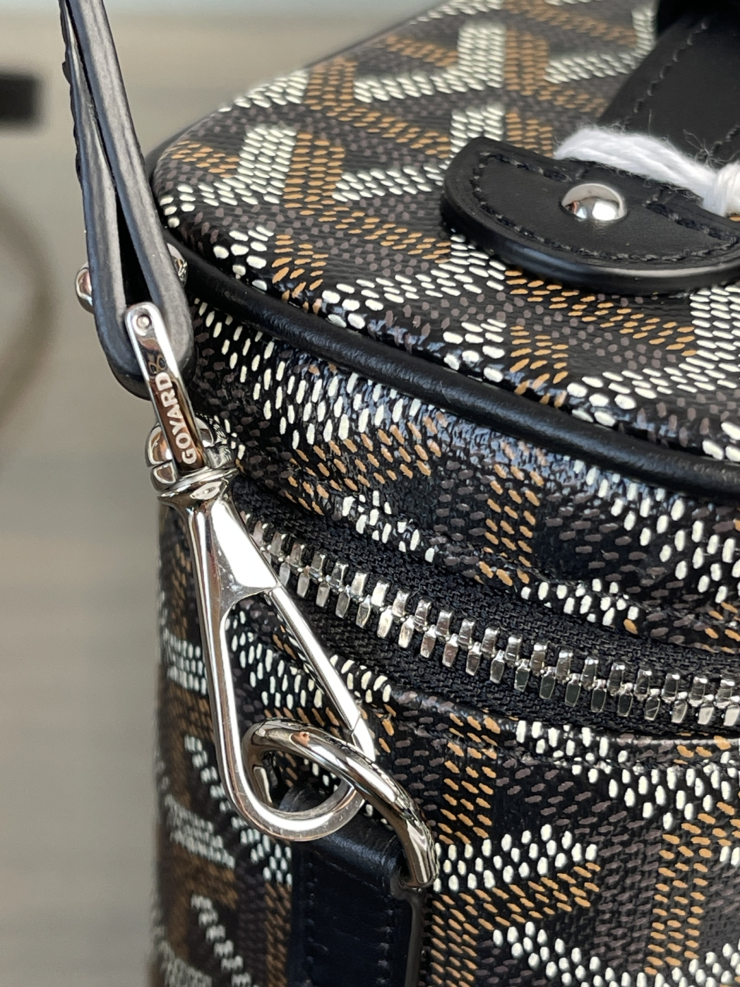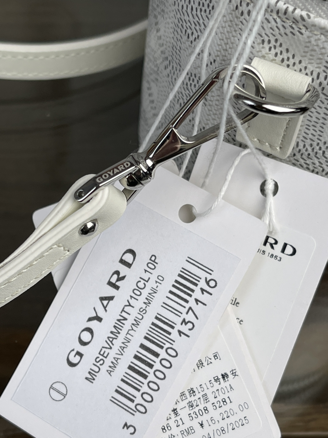 Goyard全新款Muse mini盒子包九色现货 尺寸:17x11.5x8cm 高端定制logo面料搭配头层平纹小牛皮 316不锈钢材质贵金属(钯)电镀五金件 市场上的同款几乎是清一色的锌合金材质加镀叻五金件。无论材质还是工艺都比我们家廉价太多。不同材质不同工艺所呈现出来的细致度与耐用度都是云泥之别。廉价的材质也让产品彻底与高级感无缘了。 另外,盒子包的工艺难度也相对比较大,制作难度高。绝非一些无沉淀无底韵的工厂能够驾驭。所以更完美的细节,更美观的外观,也是我们的产品区别于市场同款的显著的特征。