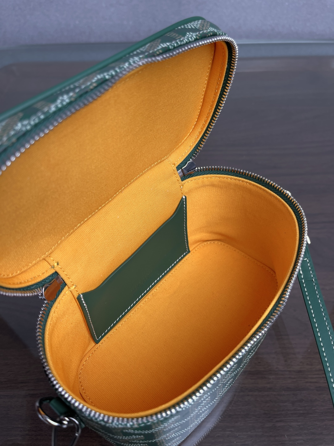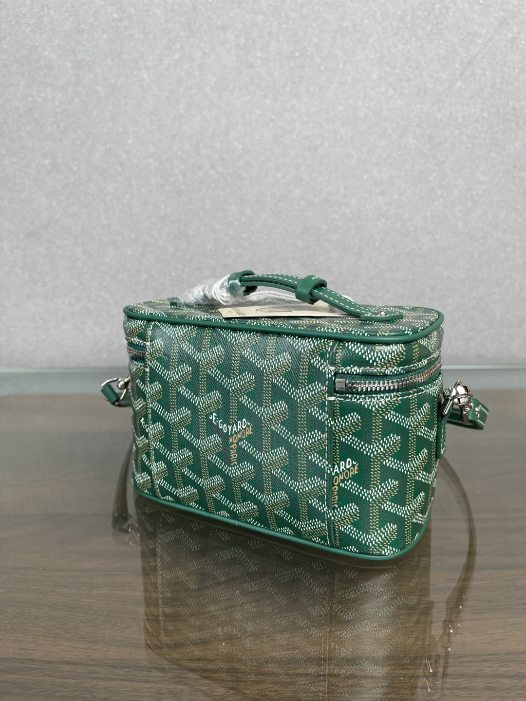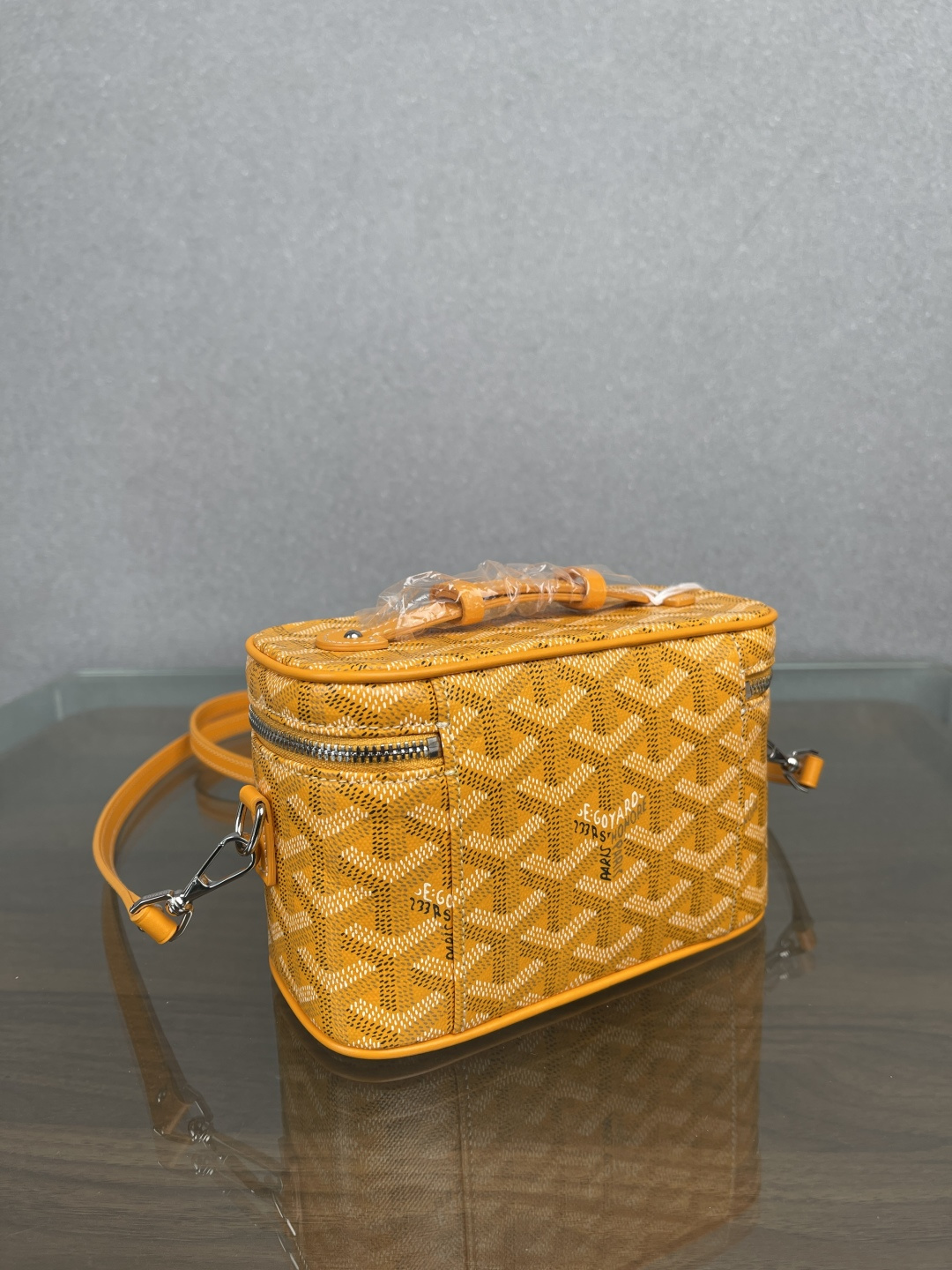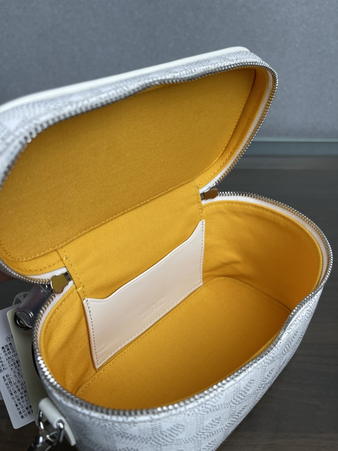 Goyard全新款Muse mini盒子包九色现货 尺寸:17x11.5x8cm 高端定制logo面料搭配头层平纹小牛皮 316不锈钢材质贵金属(钯)电镀五金件 市场上的同款几乎是清一色的锌合金材质加镀叻五金件。无论材质还是工艺都比我们家廉价太多。不同材质不同工艺所呈现出来的细致度与耐用度都是云泥之别。廉价的材质也让产品彻底与高级感无缘了。 另外,盒子包的工艺难度也相对比较大,制作难度高。绝非一些无沉淀无底韵的工厂能够驾驭。所以更完美的细节,更美观的外观,也是我们的产品区别于市场同款的显著的特征。