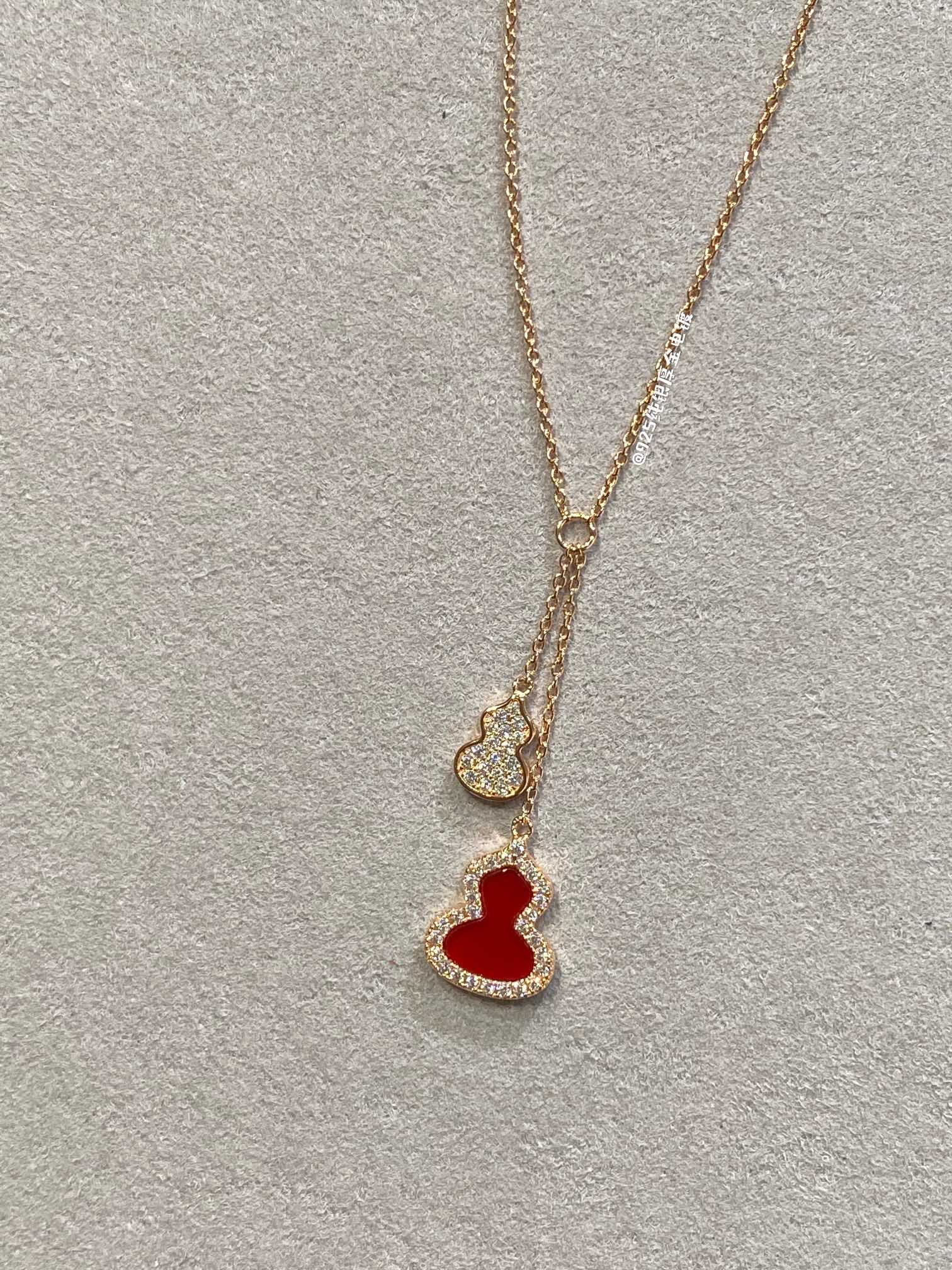 新款双葫芦项链,转运珠宝,葫芦在中国传统文化中象征正能量,吸财纳福哦!佩戴葫芦寓意给自己和家人带来好运~玉髓和钻石的结合,闪耀精致!采用珠宝级别玉髓,一对一配拖车石,肉眼无缝,手镶不掉石~钢印字印齐
