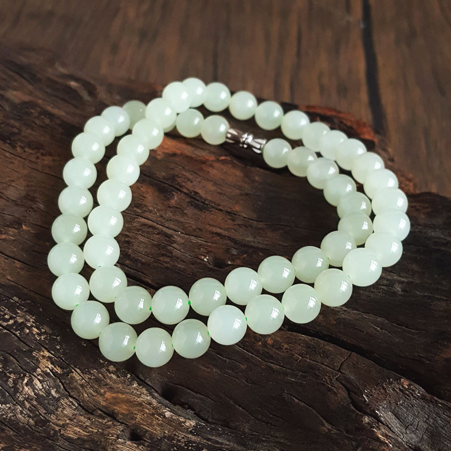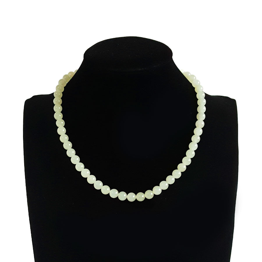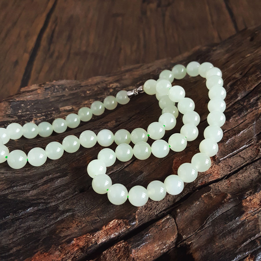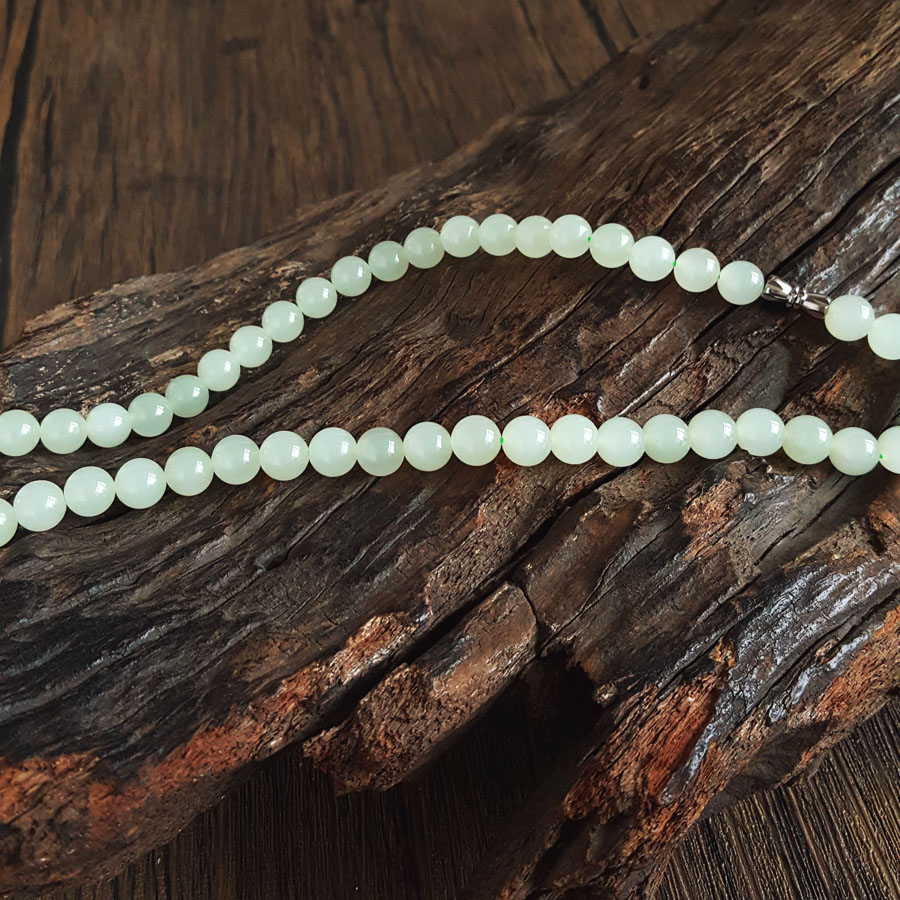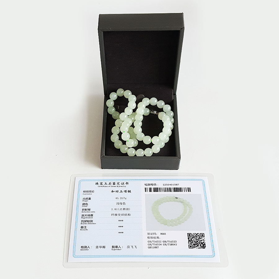 名称 | 天然约8.0MM无杂裂青海料晴水绿和田玉圆珠项链 |