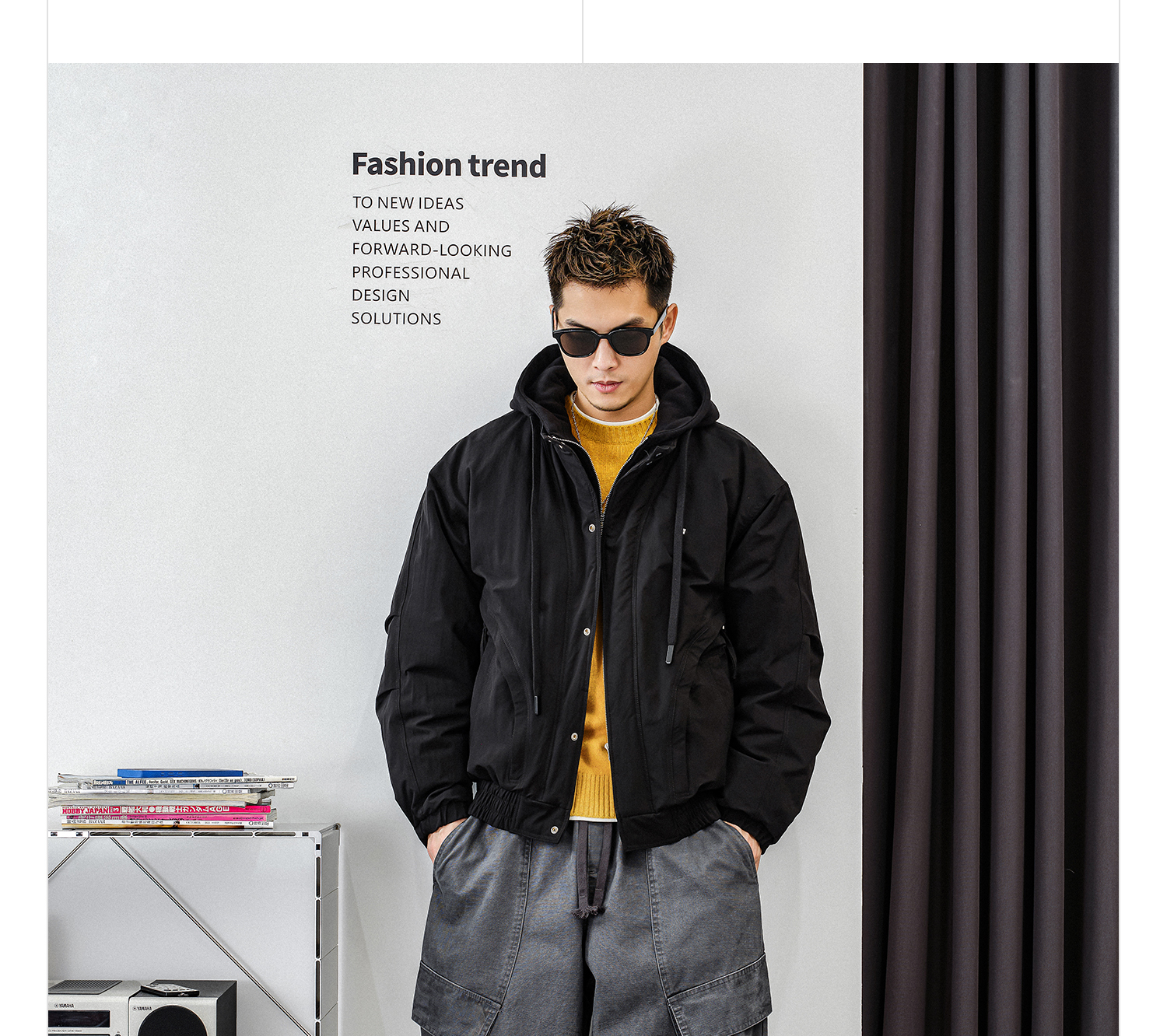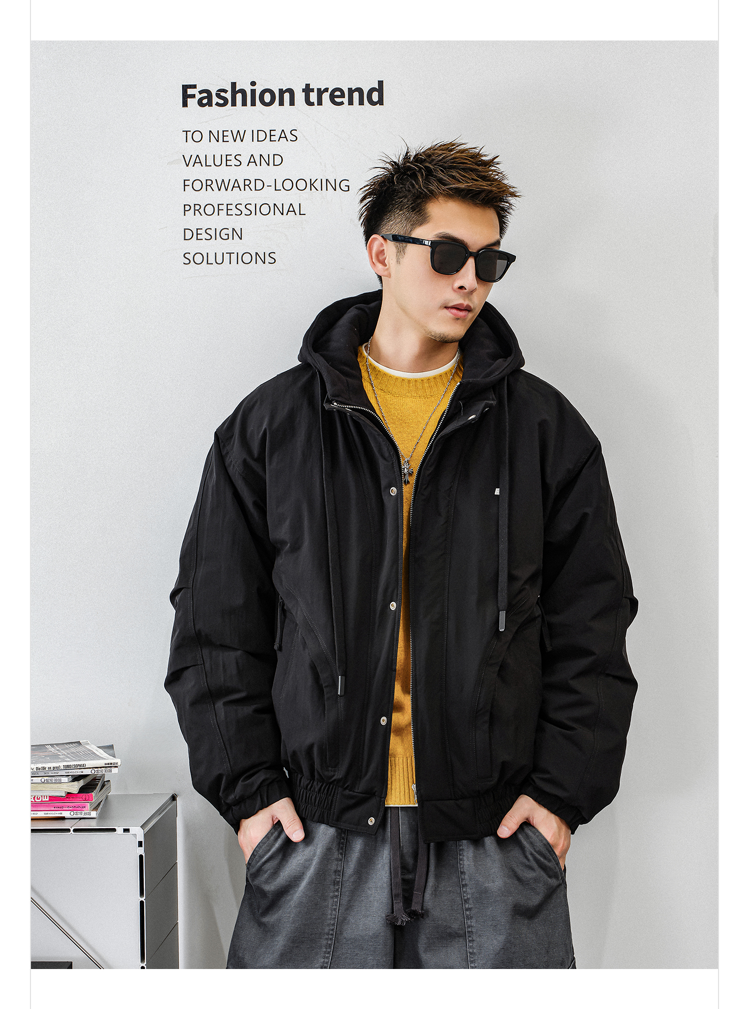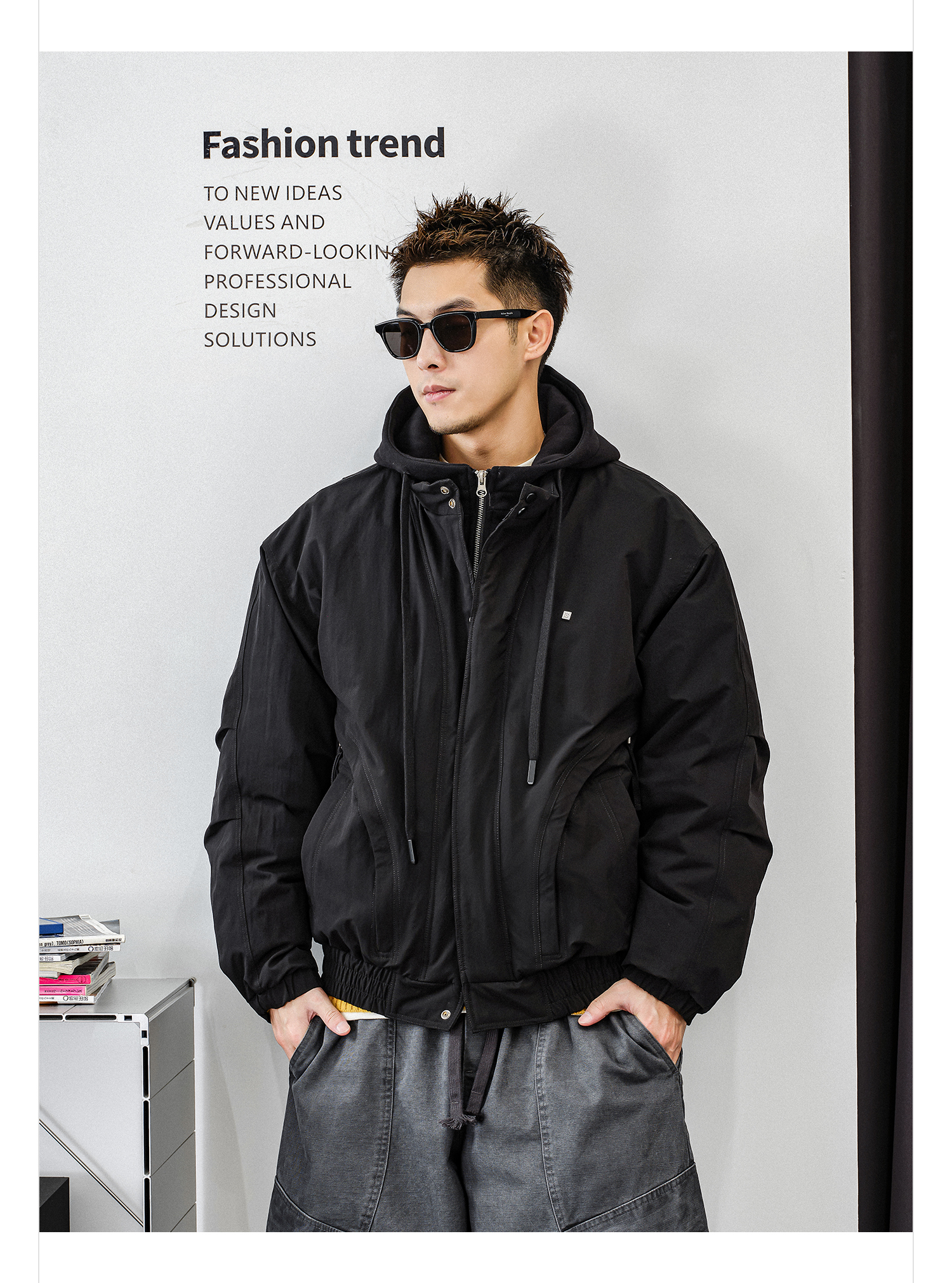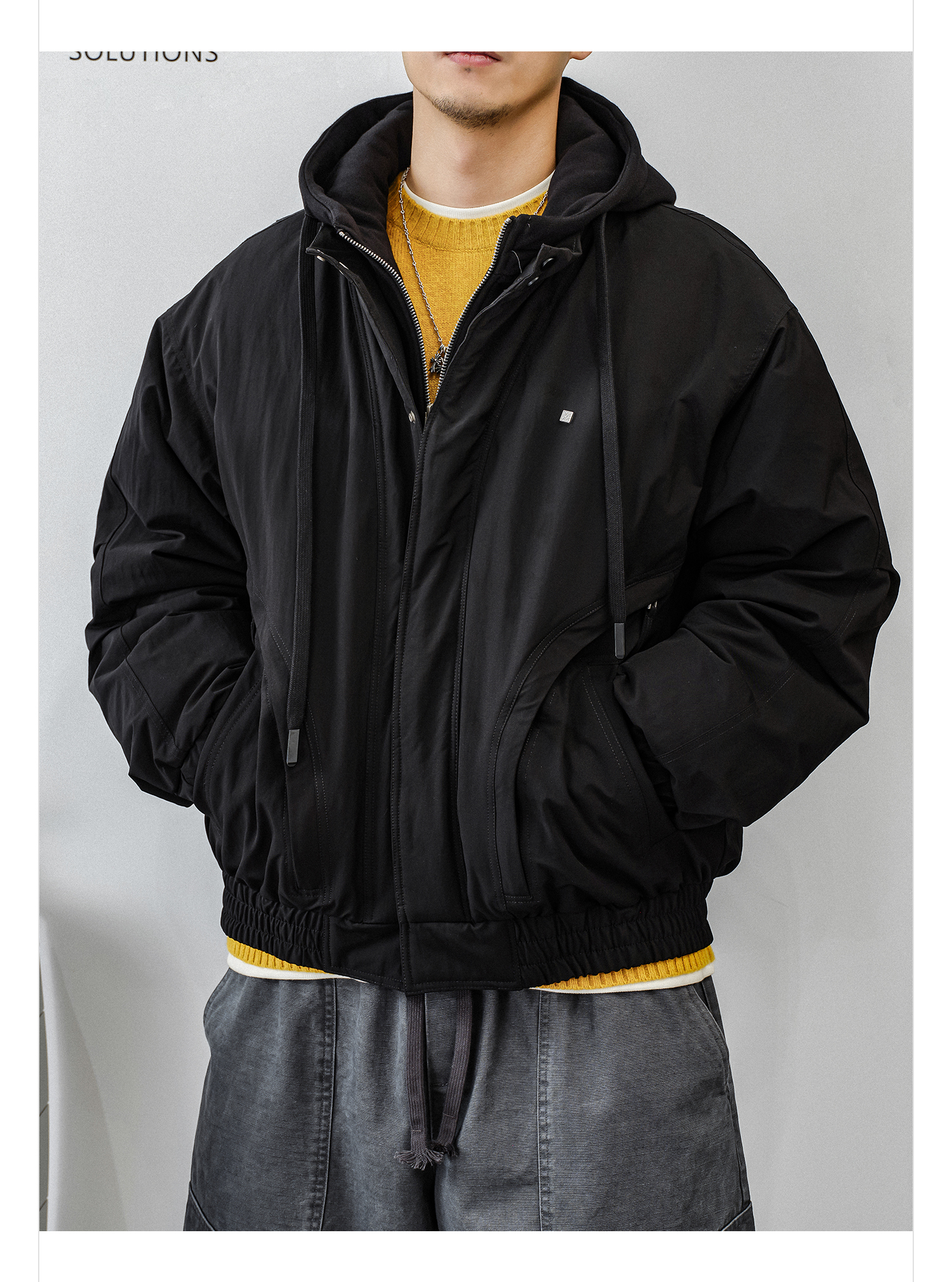徐太浪【抽绳连帽 工装风】黑色羽绒服男冬季厚款保暖防寒服外套