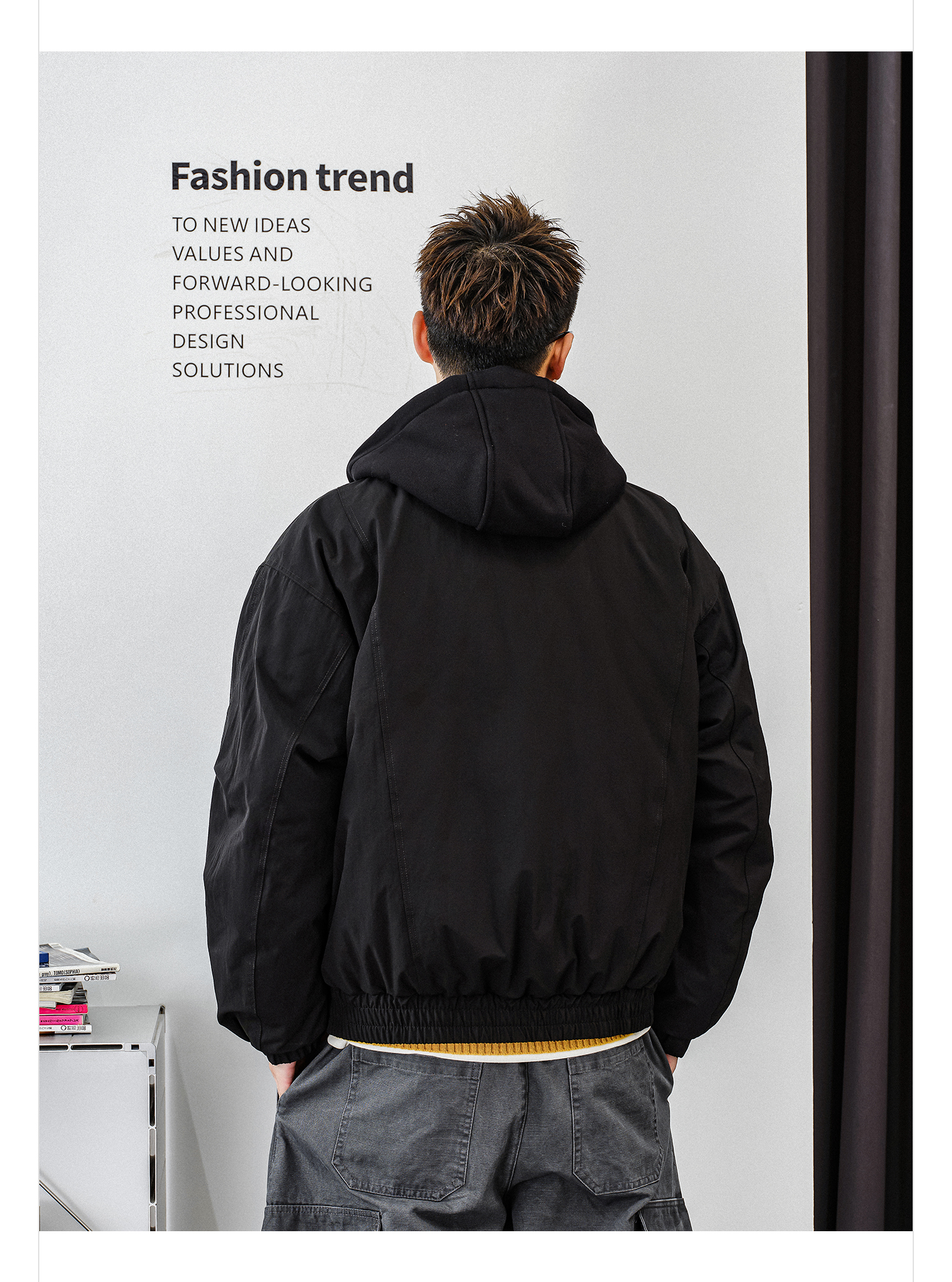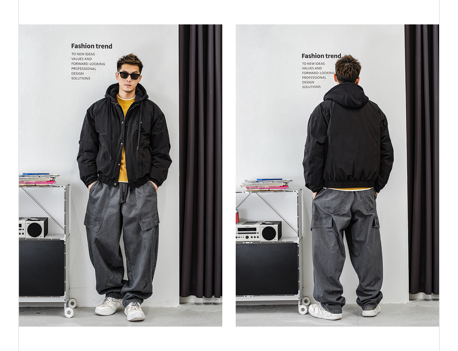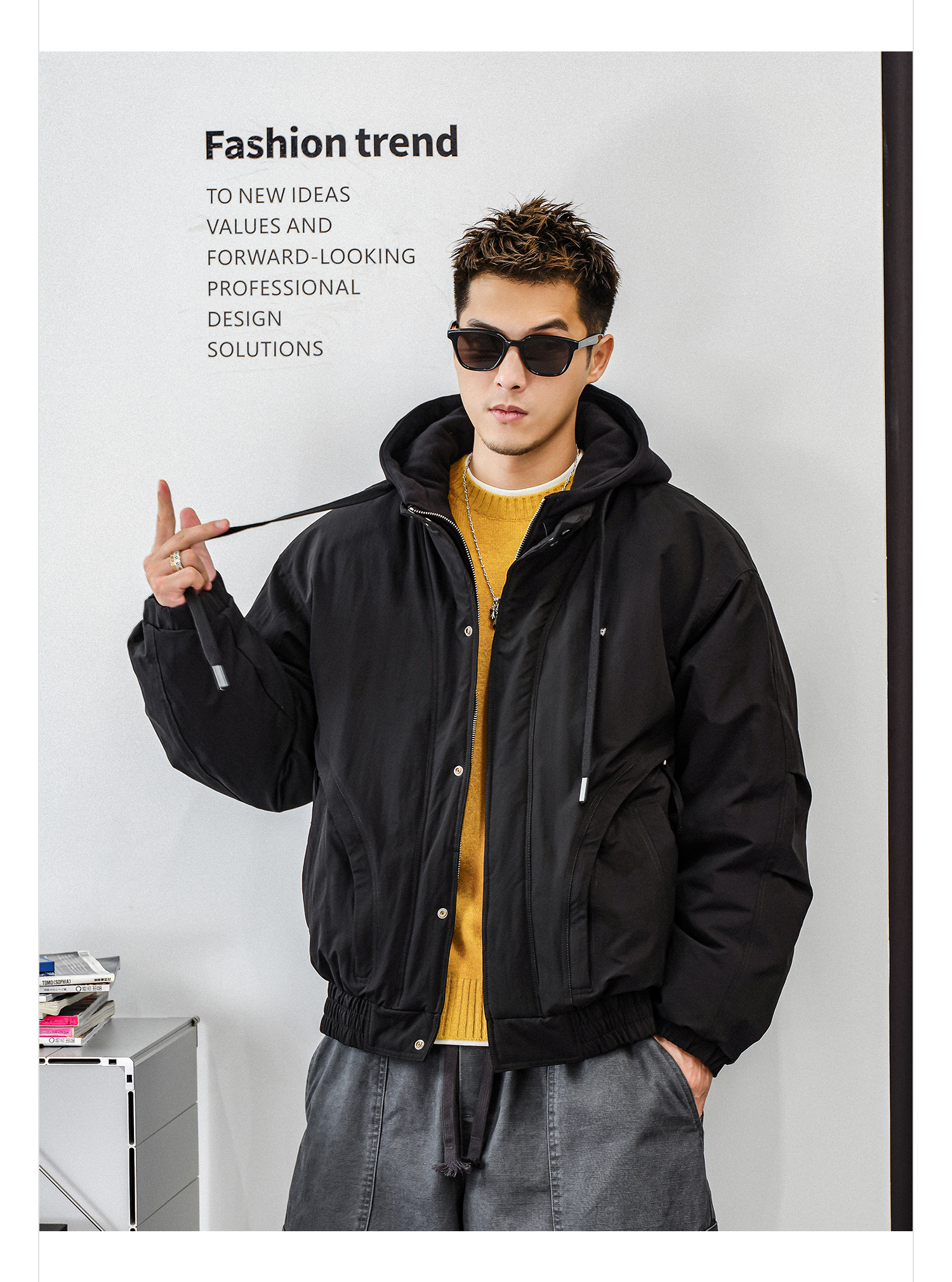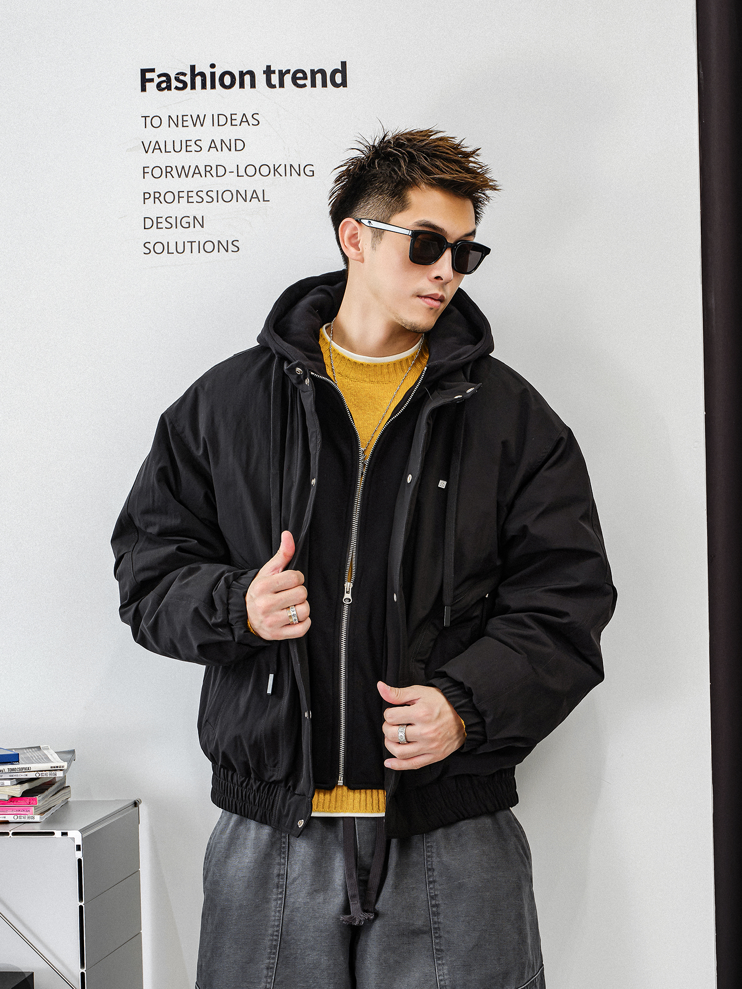 徐太浪【抽绳连帽 工装风】黑色羽绒服男冬季厚款保暖防寒服外套
