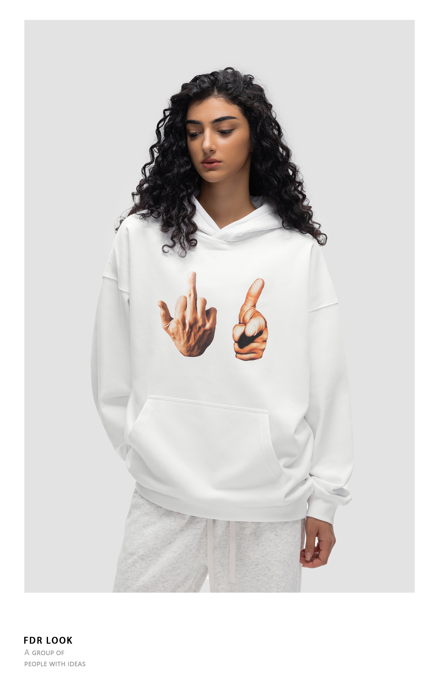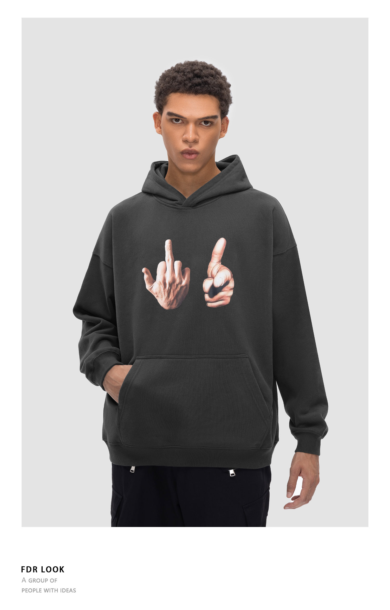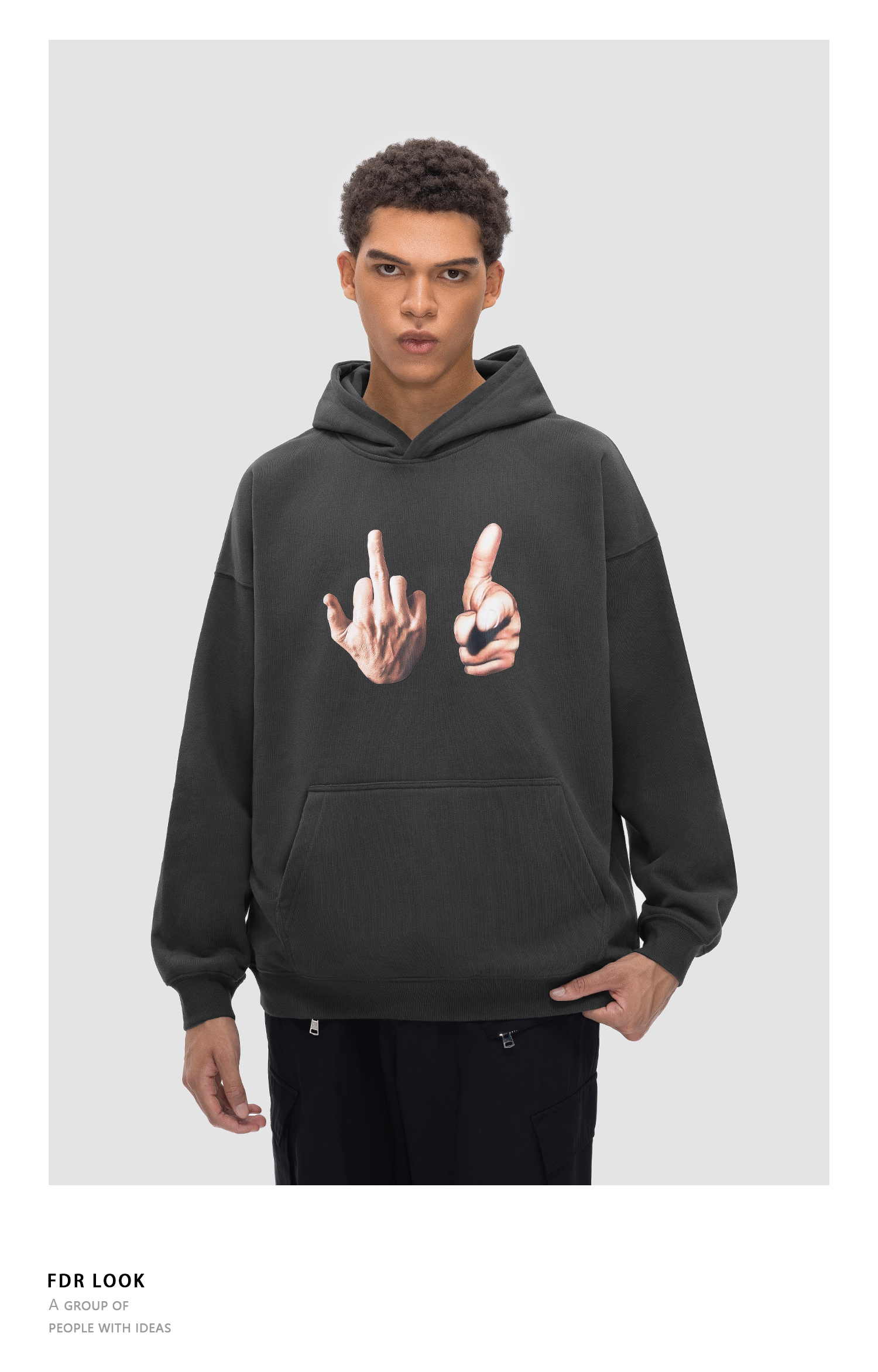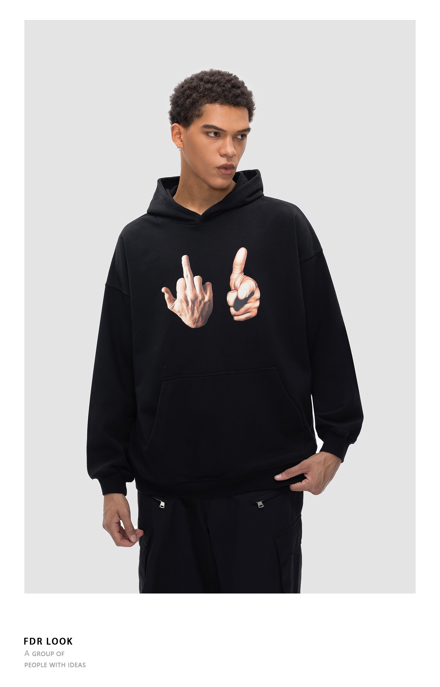 FDR 国潮手势印花重磅连帽卫衣男女春秋季潮牌高街情侣装宽松上衣