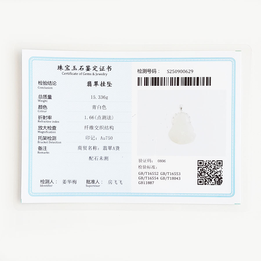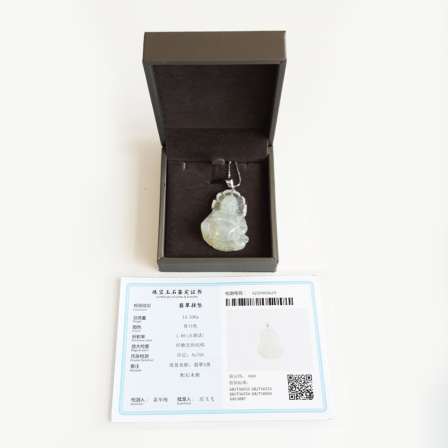 【天然正品】A货翡翠AU750白金镶天然糯冰种佛公造型翡翠(平安、吉祥)吊坠项链女士110925NJS15现售价:3980