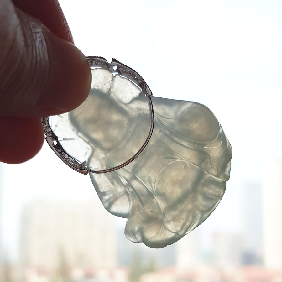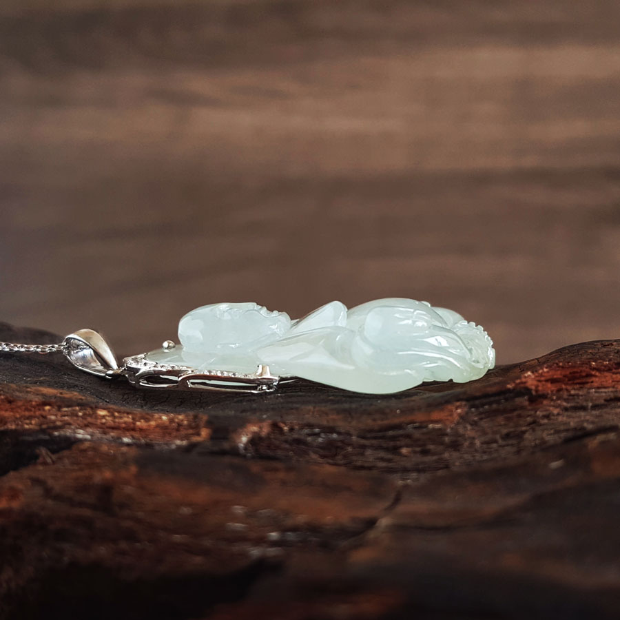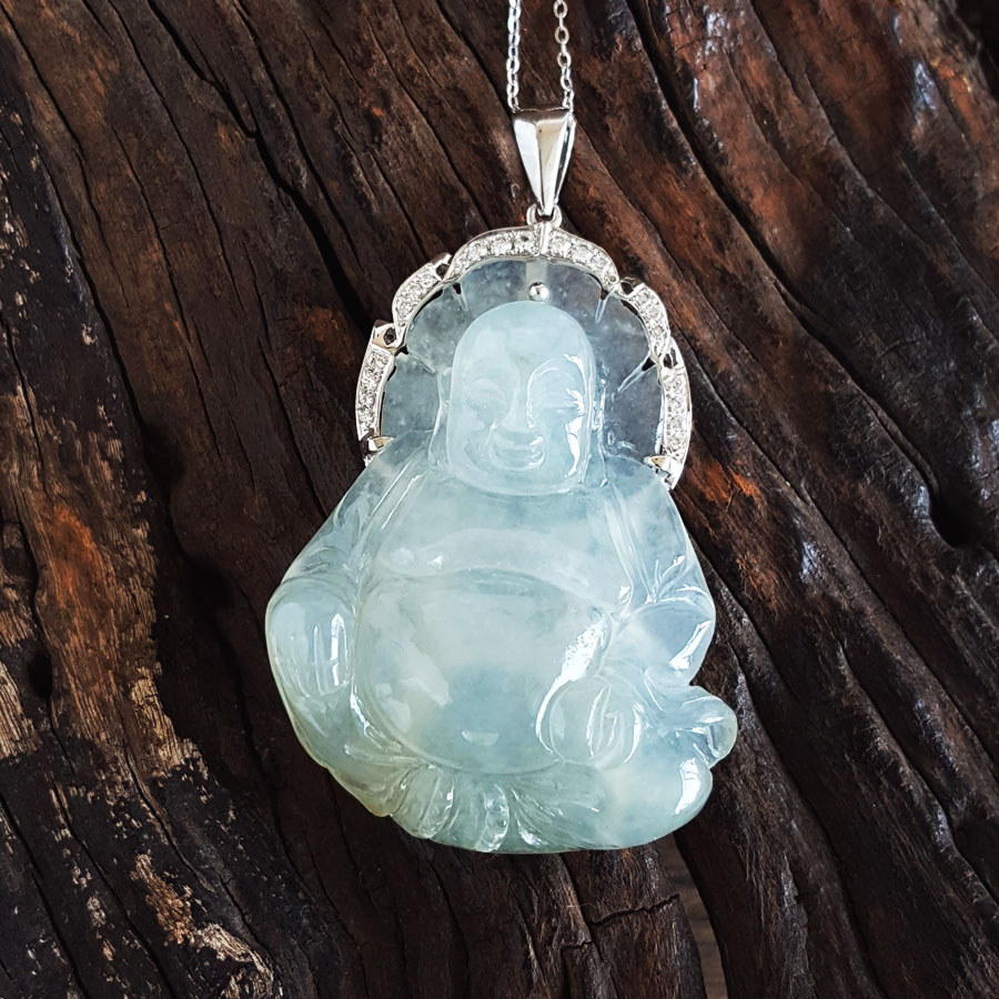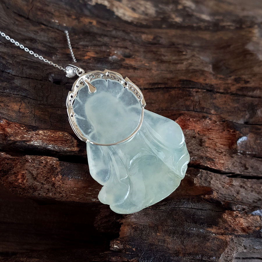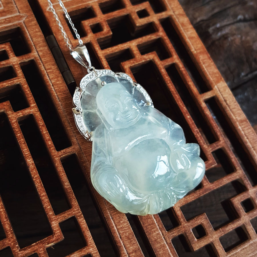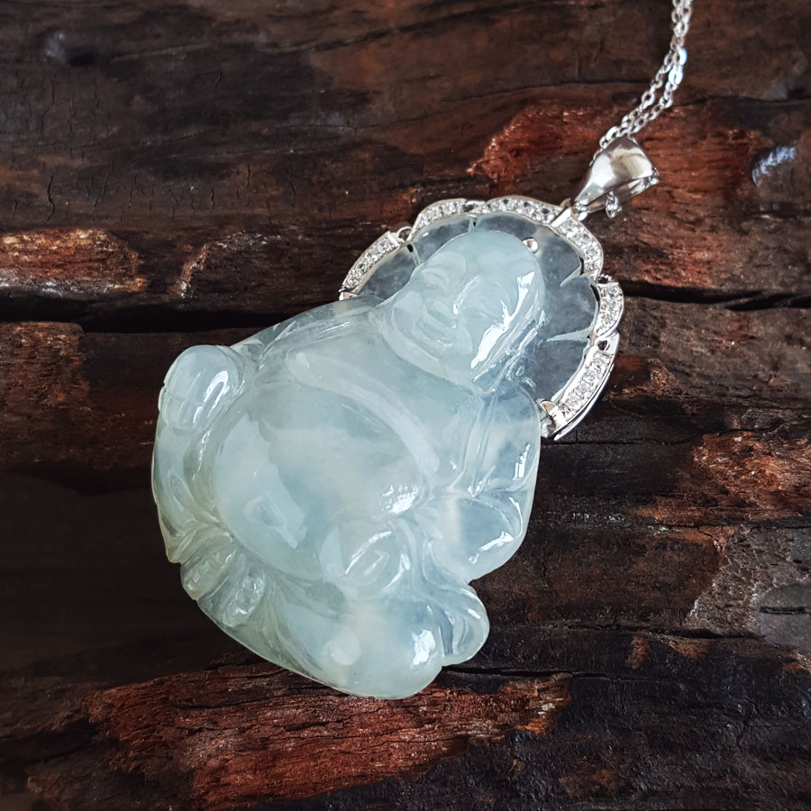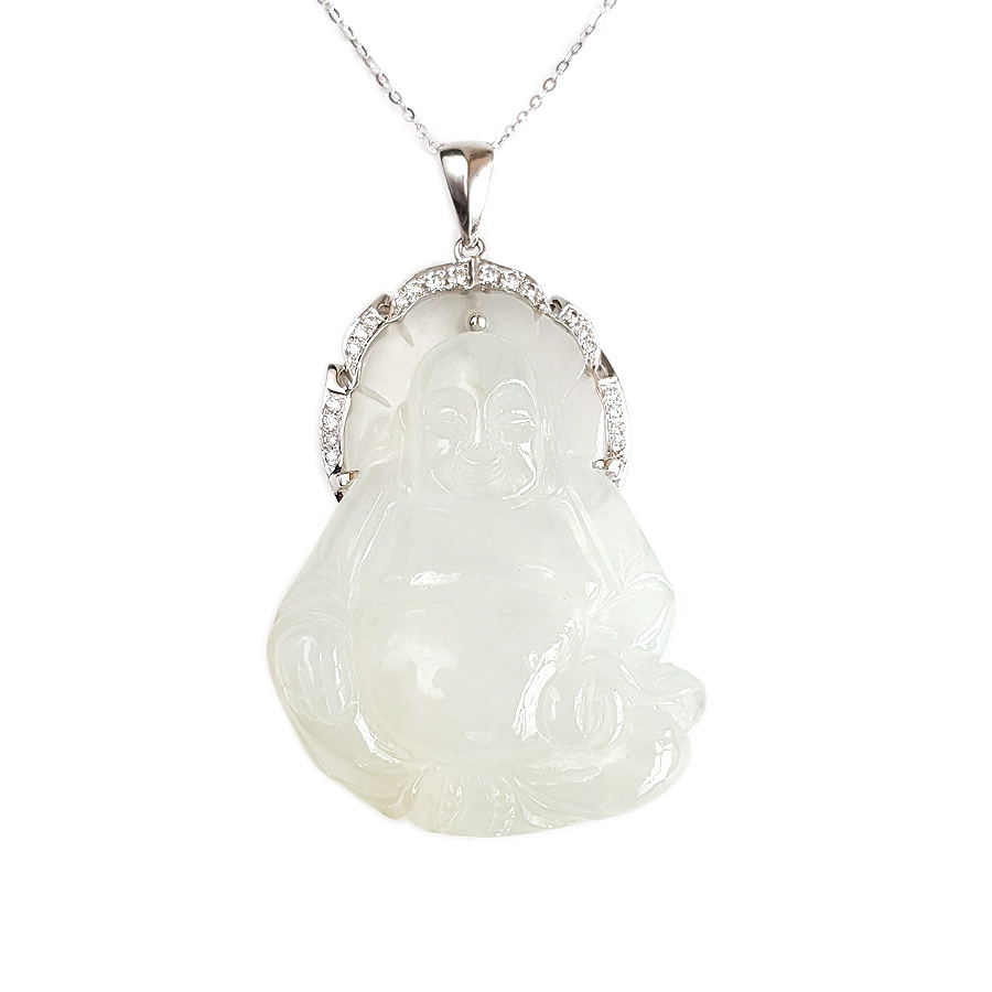 名称 | AU750白金镶天然糯冰种佛公造型翡翠(平安、吉祥)吊坠项链 |