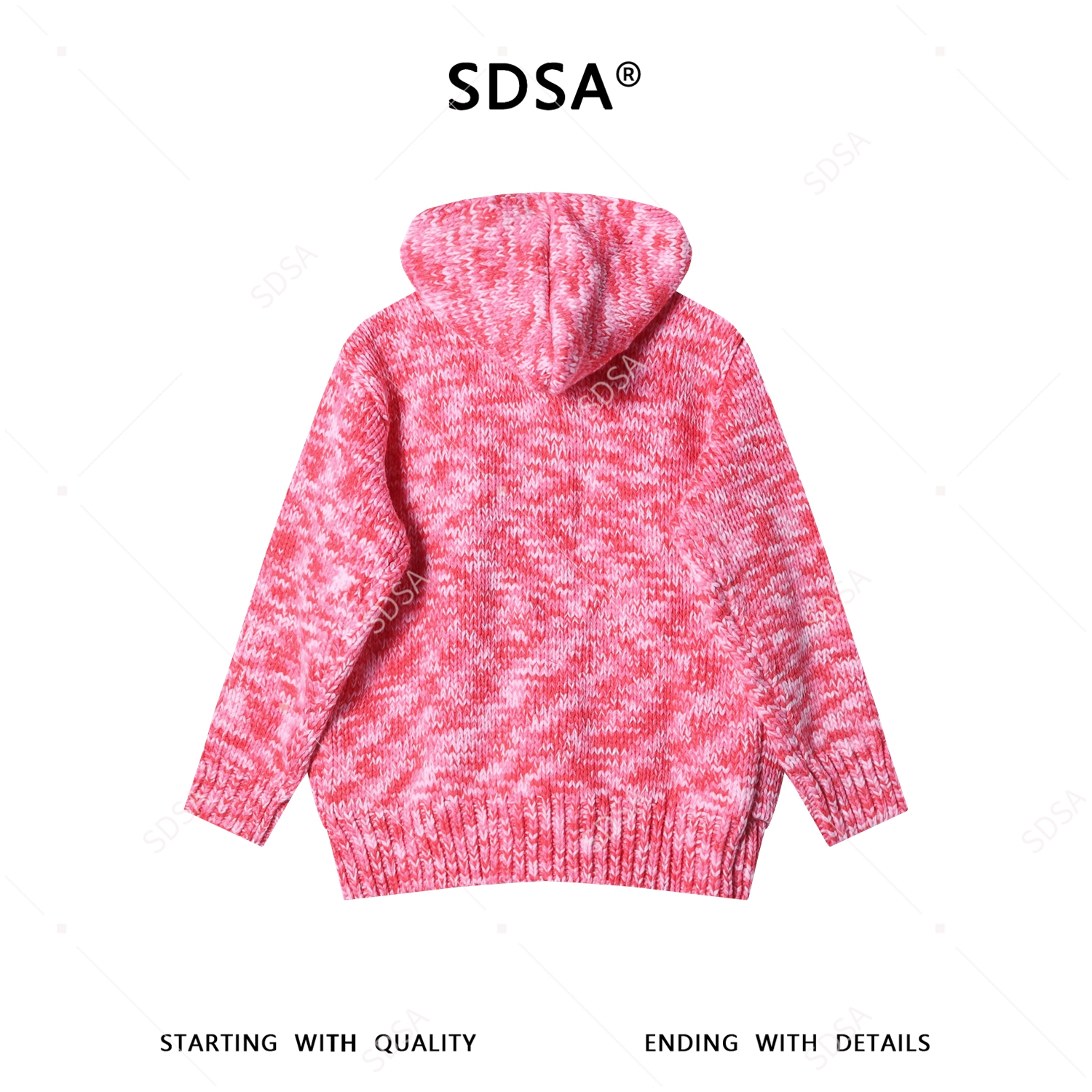 SDSA男装2026新款潮牌慵懒风针织开衫男女同款花纱连帽拉链毛衣