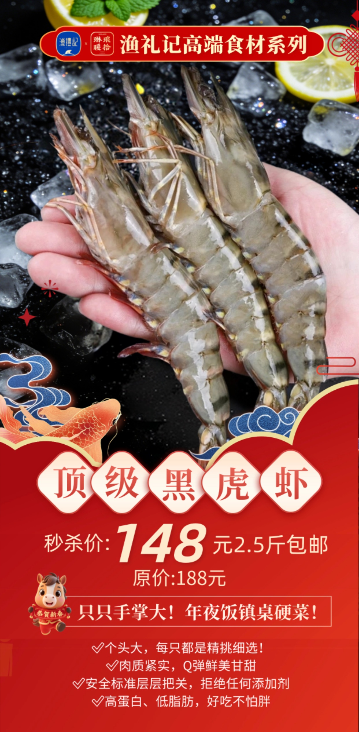 【顺丰冷链】顶级黑虎虾 16/20头 活虾极速锁鲜速冻 肉质紧实饱满 口感劲道 富含虾青素 - AYLJ
