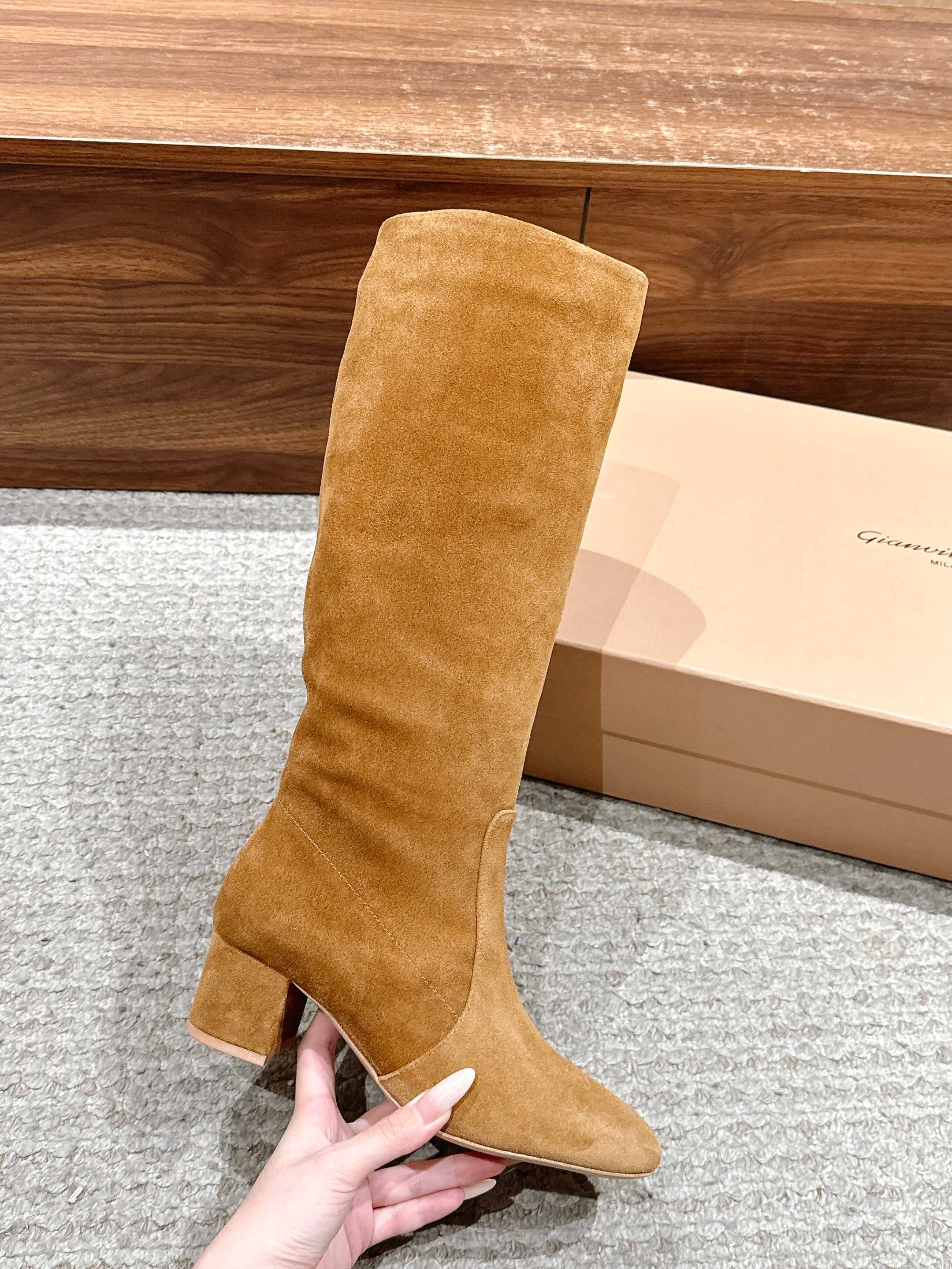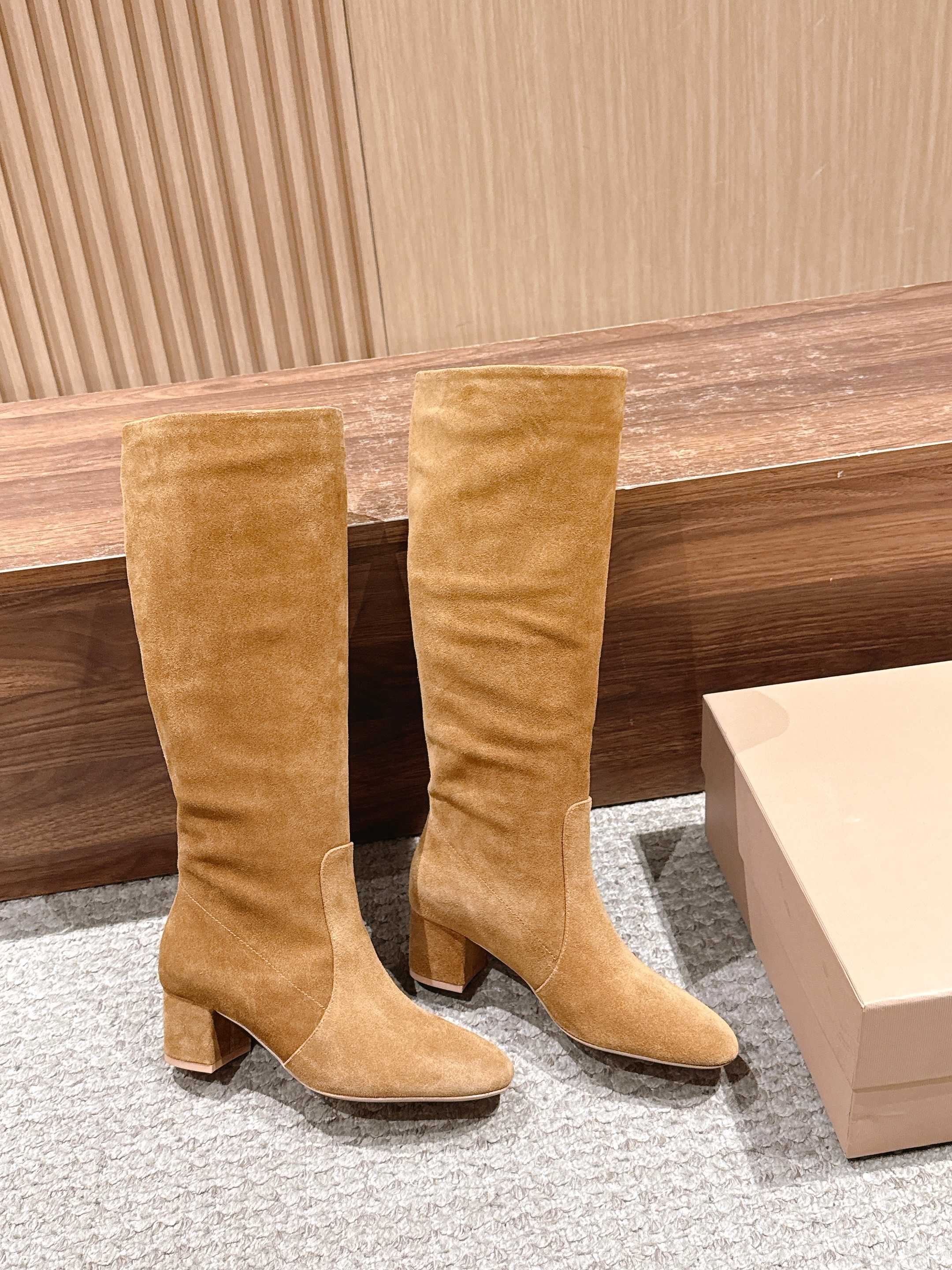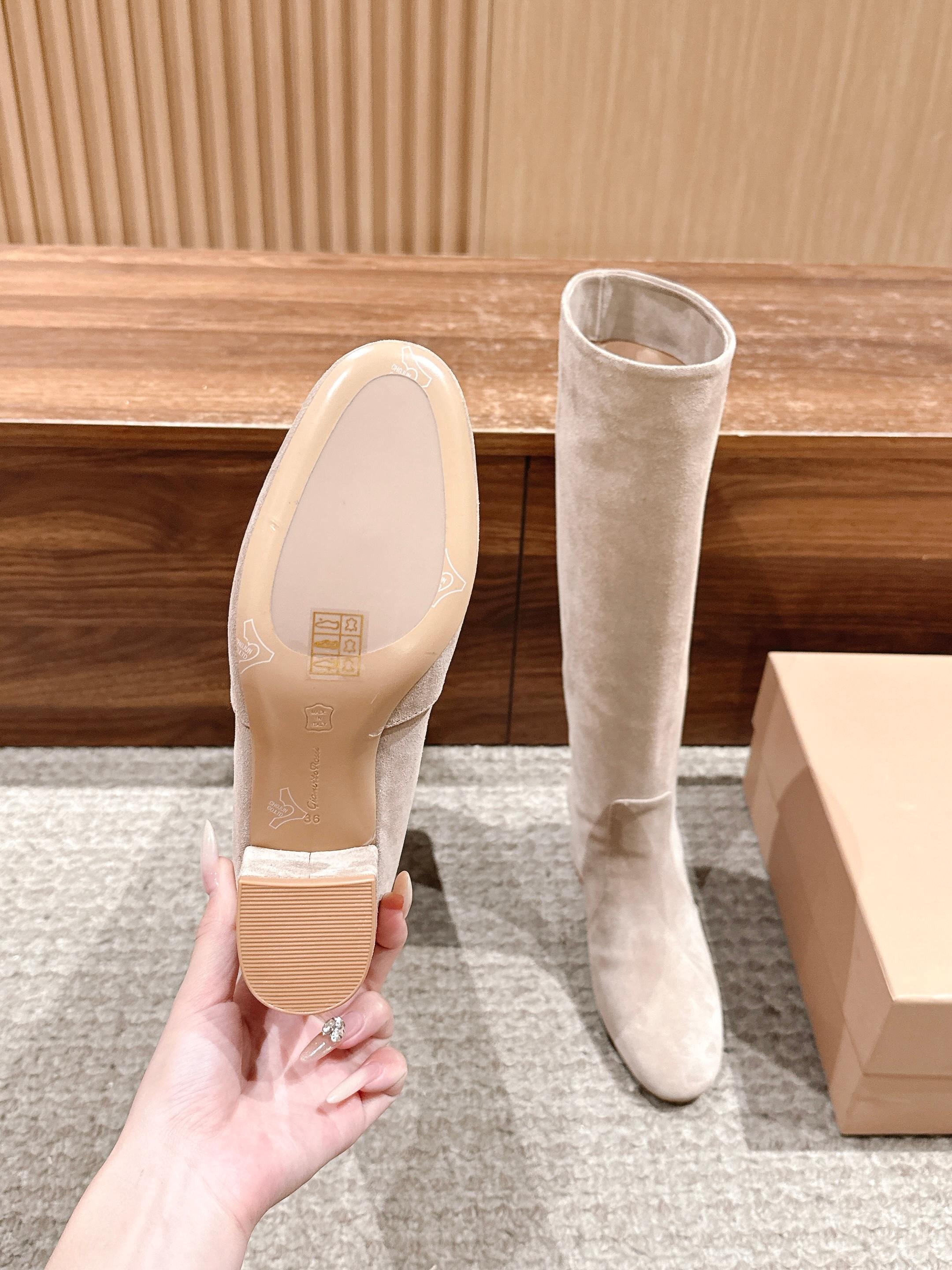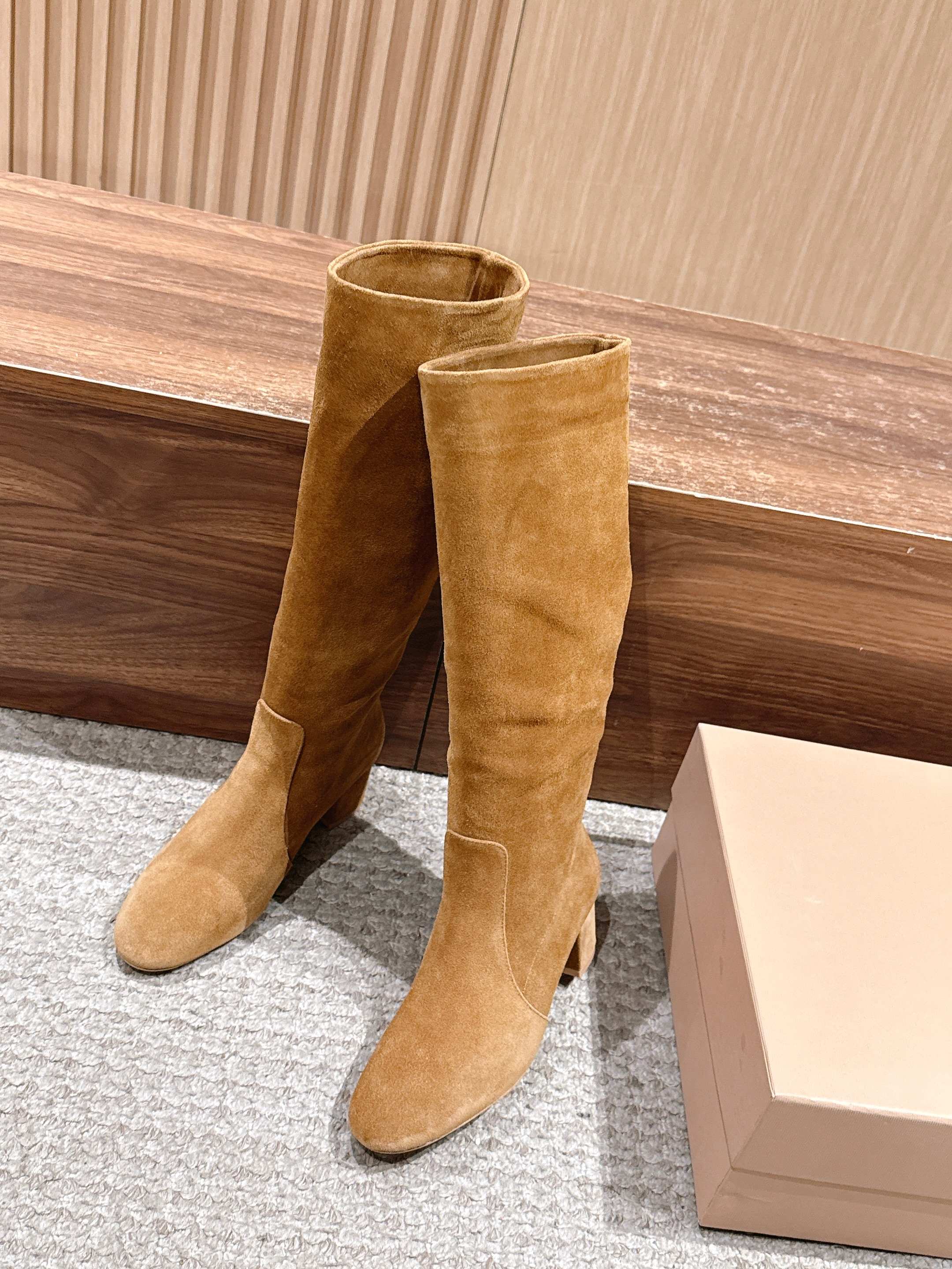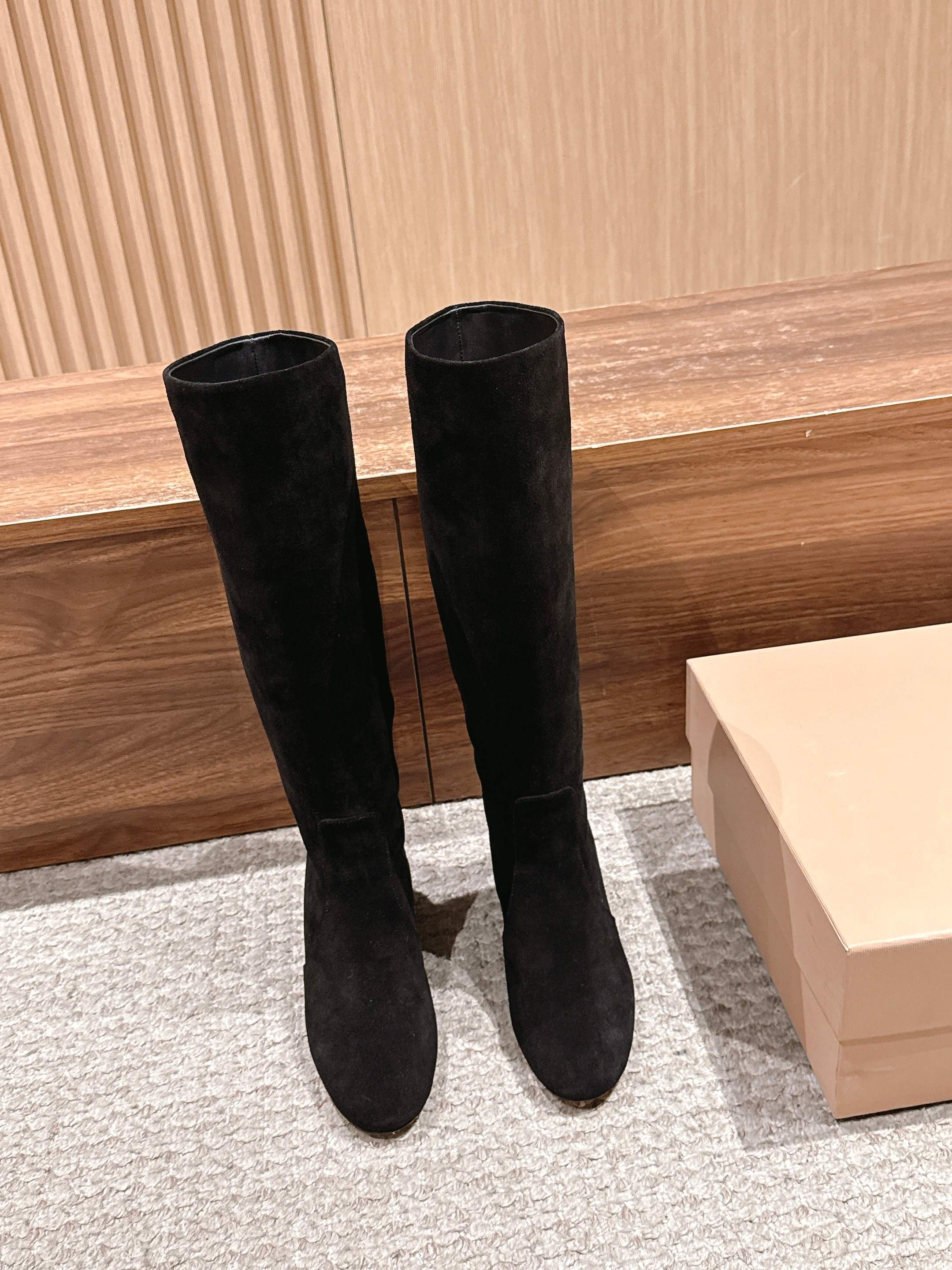 Gianvito Rossi 复古麂皮高跟堆堆靴 采用绒面革材质,质感细腻,呈现出高级的哑光效果,且不同颜色的绒面革在视觉和触觉上都极具质感。高跟长靴,靴筒较高,能够很好地修饰腿部线条;鞋跟为粗跟设计,兼具稳定性与时尚感,提升气场的同时也保证了行走的舒适度。 鞋头为方头设计,简约大气,符合当下的时尚潮流,同时也能容纳不同脚型;整体设计简约利落,没有过多繁杂的装饰,凸显出经典与优雅的风格,易于搭配各种服饰,无论是裙装还是裤装都能展现出不俗的时尚品味。 鞋面:胎牛反绒 内里:单里 大底:真皮大底注塑 增高:9cm Size:35-41码(40/41订做不退换)
