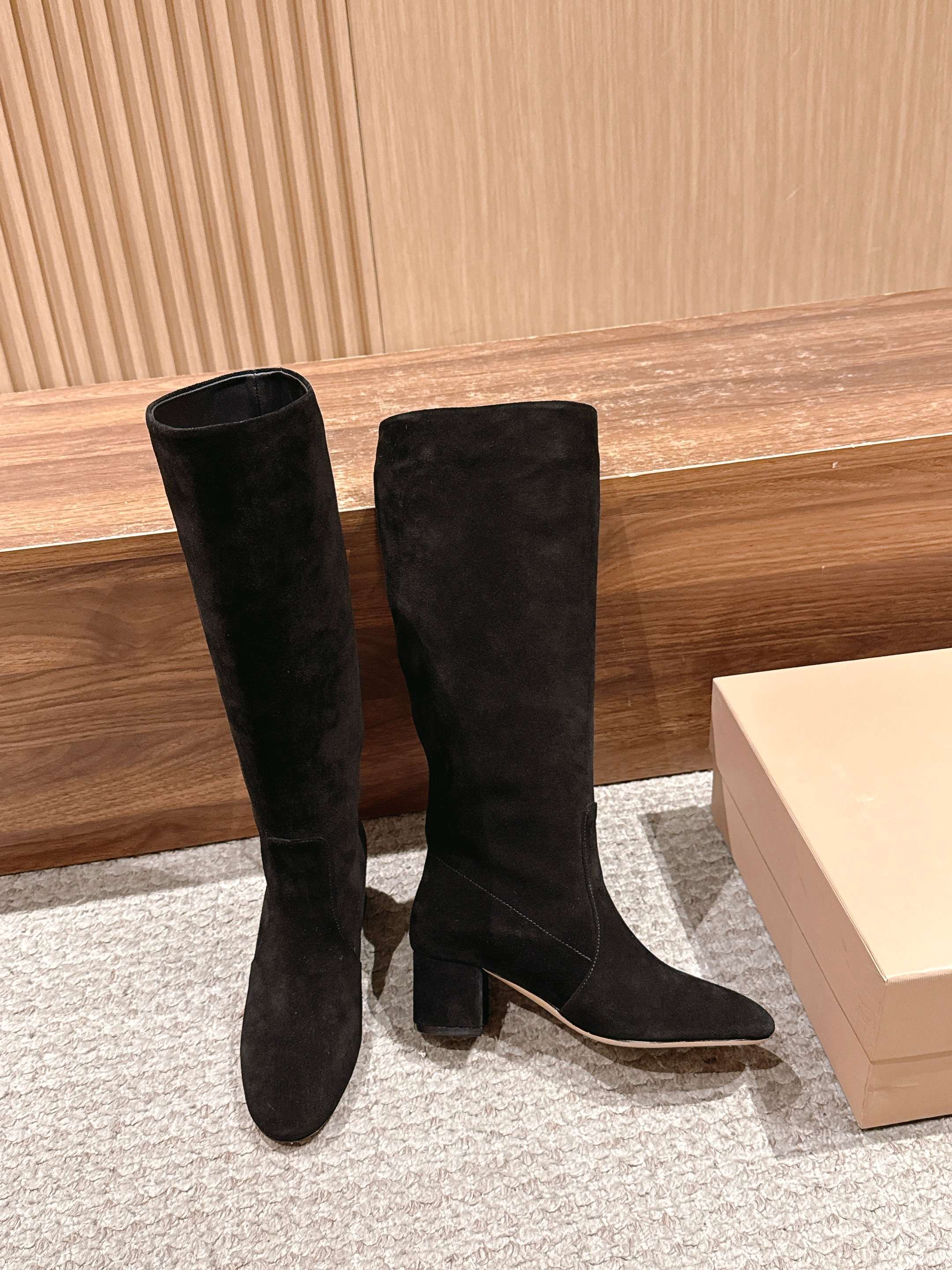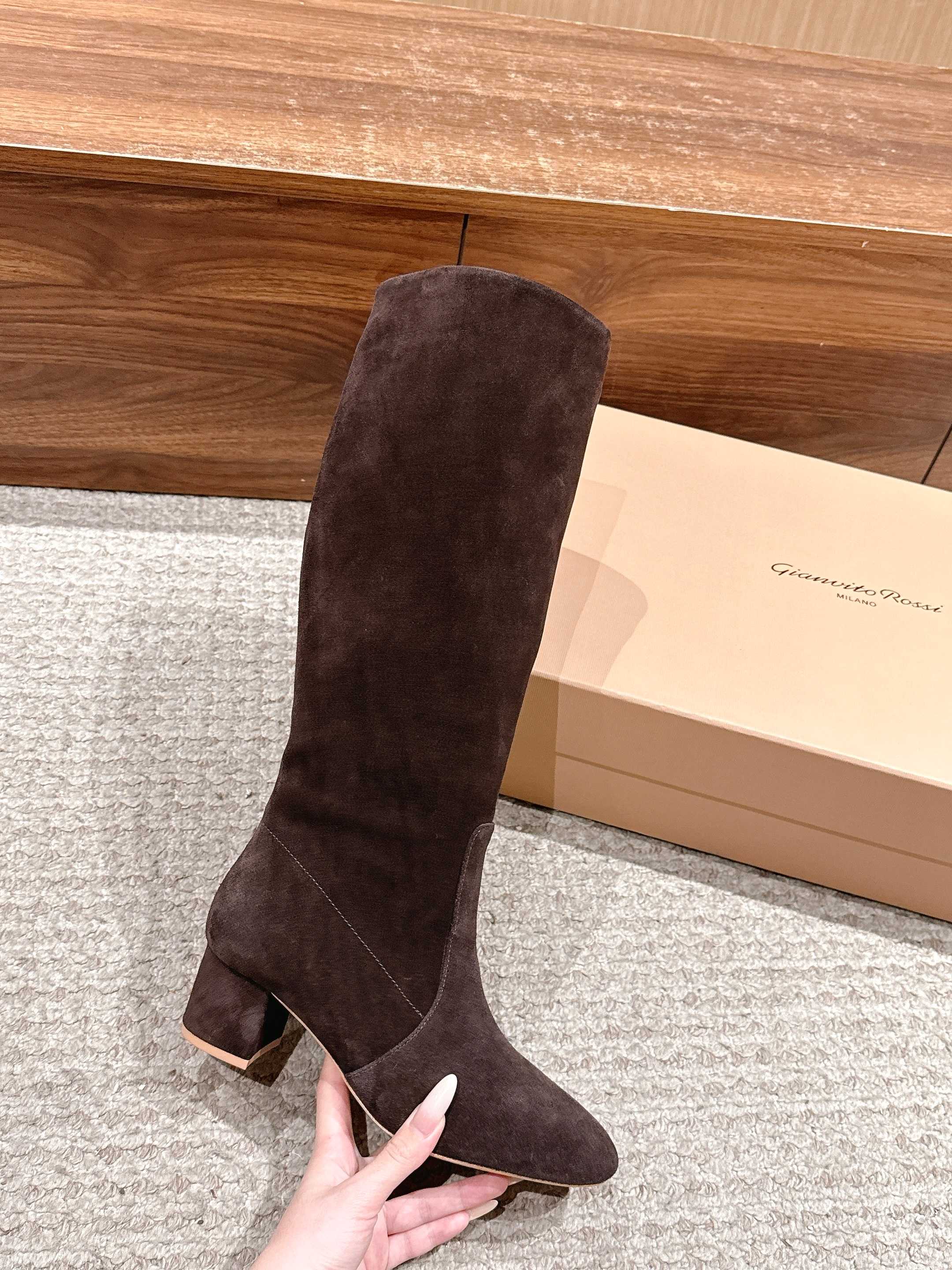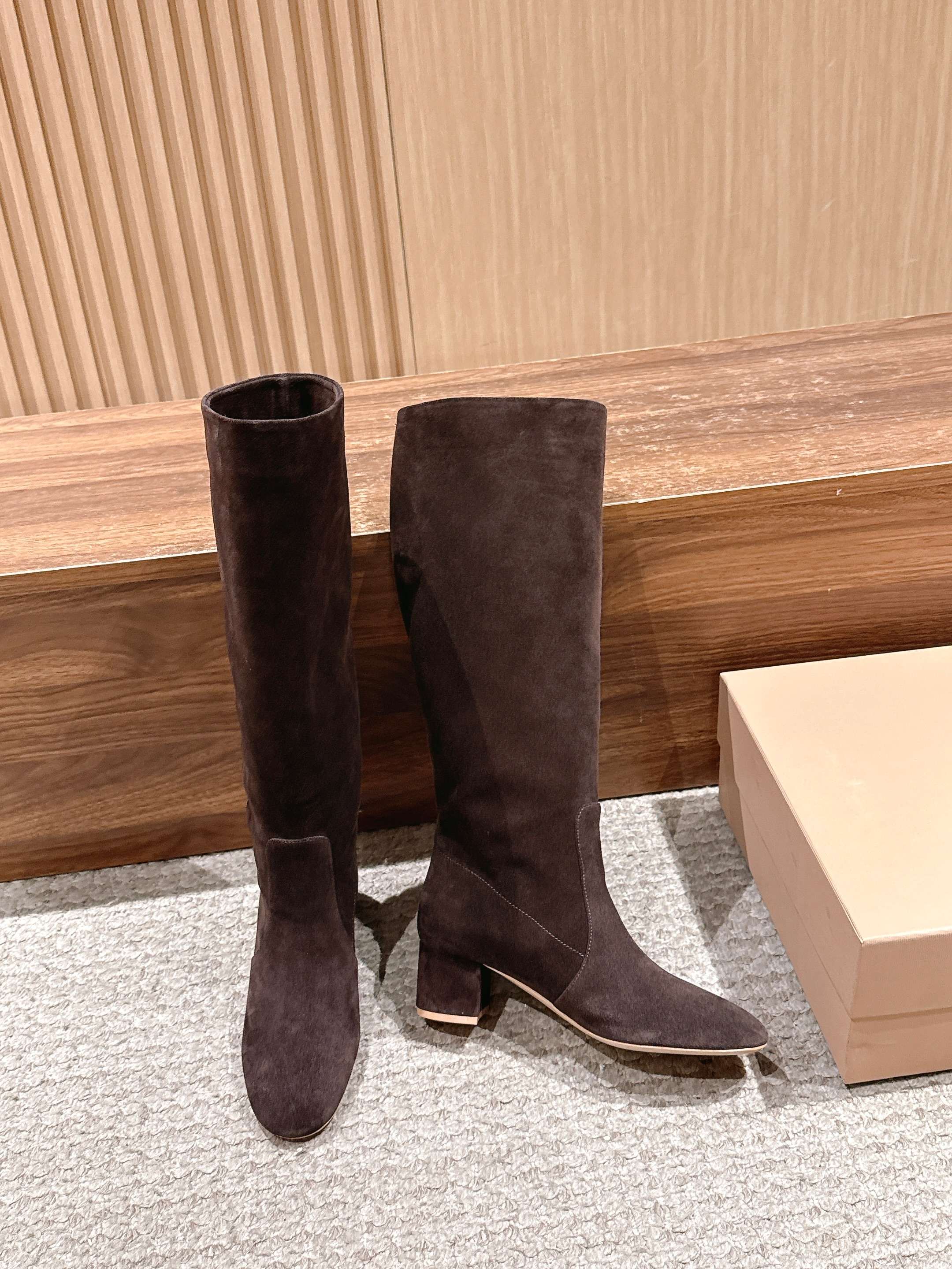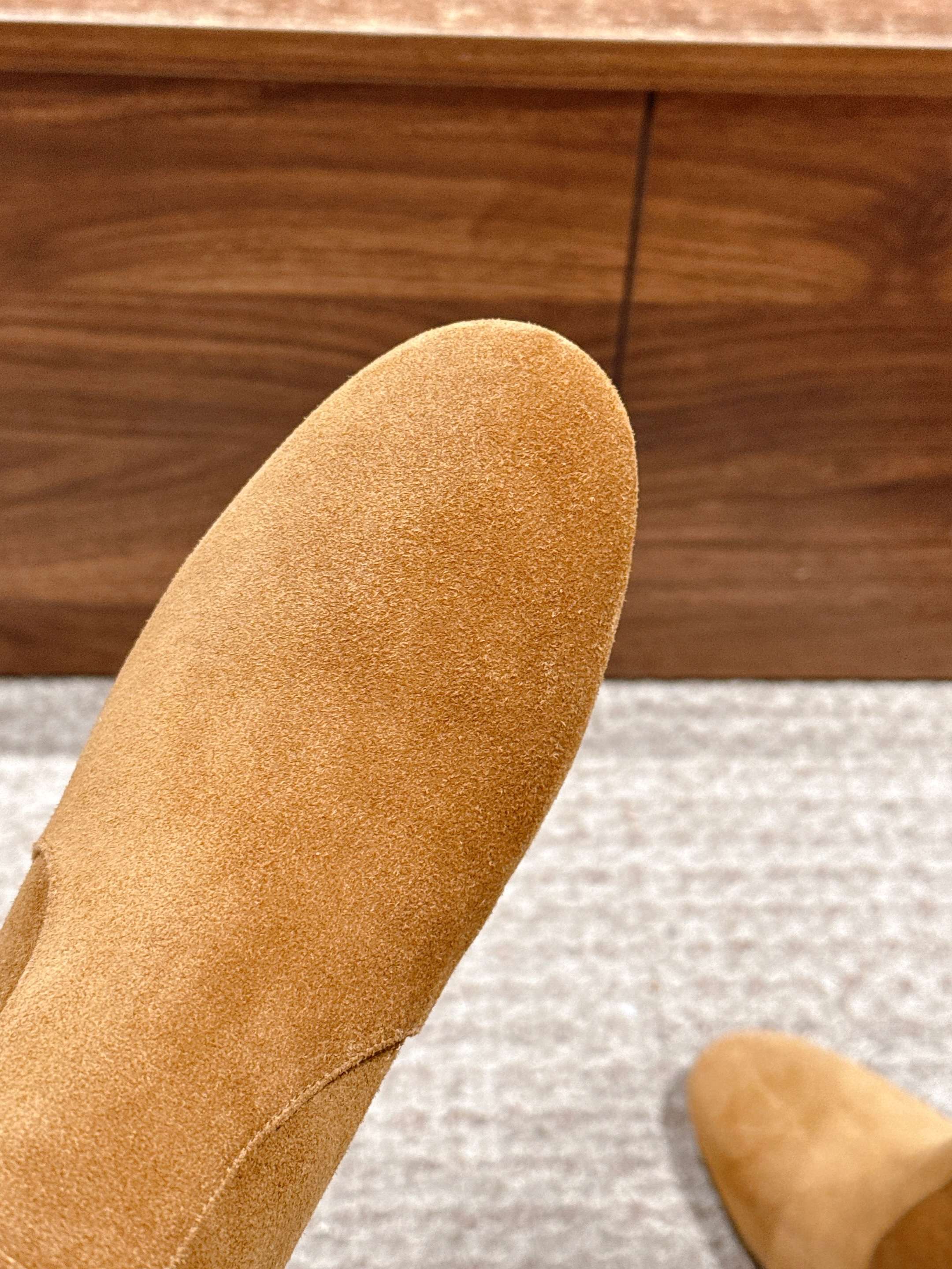 Gianvito Rossi 复古麂皮高跟堆堆靴 采用绒面革材质,质感细腻,呈现出高级的哑光效果,且不同颜色的绒面革在视觉和触觉上都极具质感。高跟长靴,靴筒较高,能够很好地修饰腿部线条;鞋跟为粗跟设计,兼具稳定性与时尚感,提升气场的同时也保证了行走的舒适度。 鞋头为方头设计,简约大气,符合当下的时尚潮流,同时也能容纳不同脚型;整体设计简约利落,没有过多繁杂的装饰,凸显出经典与优雅的风格,易于搭配各种服饰,无论是裙装还是裤装都能展现出不俗的时尚品味。 鞋面:胎牛反绒 内里:单里 大底:真皮大底注塑 增高:9cm Size:35-41码(40/41订做不退换)