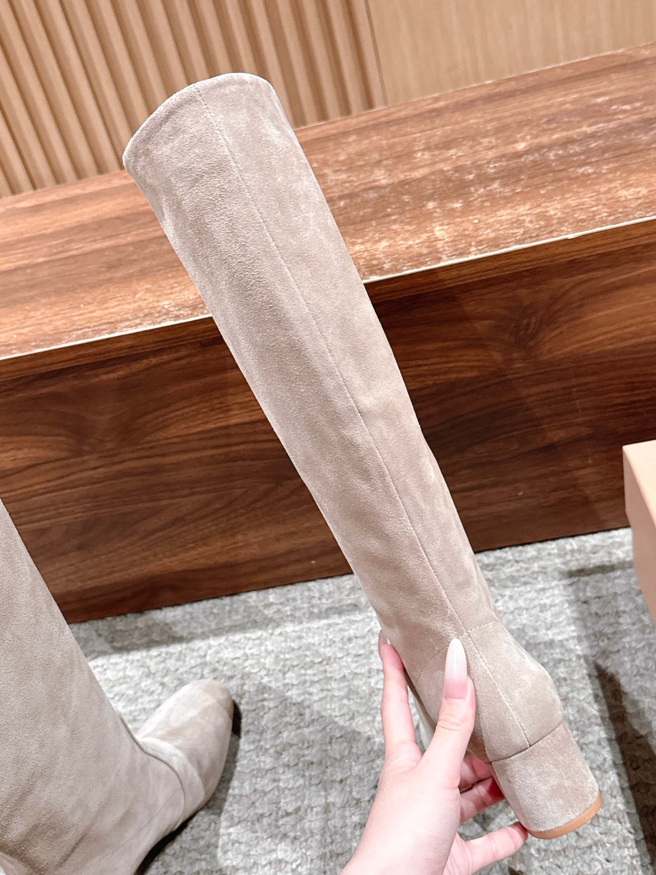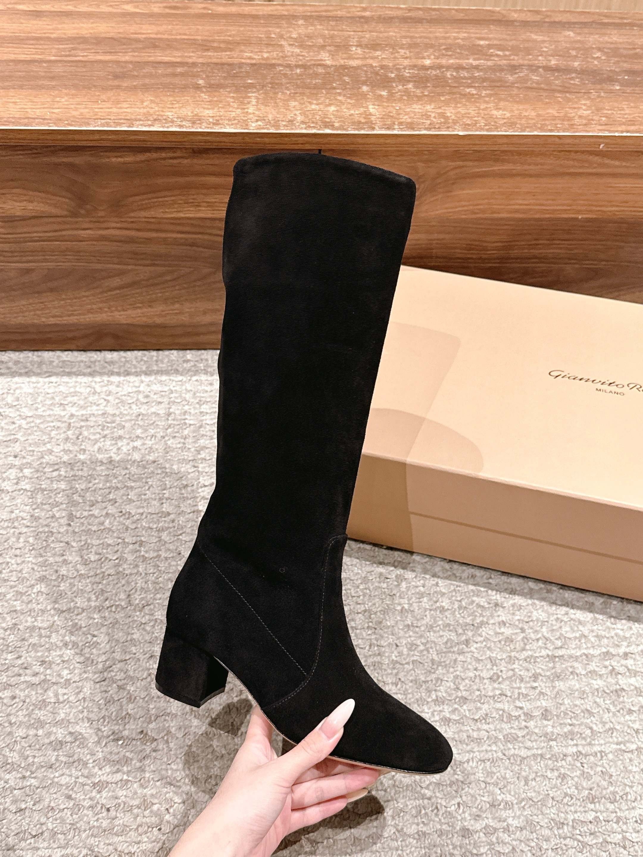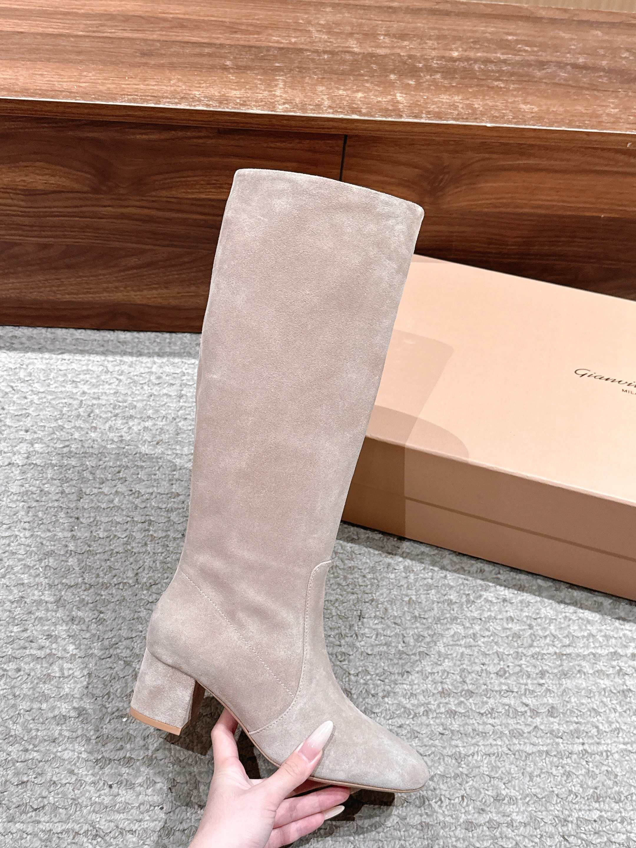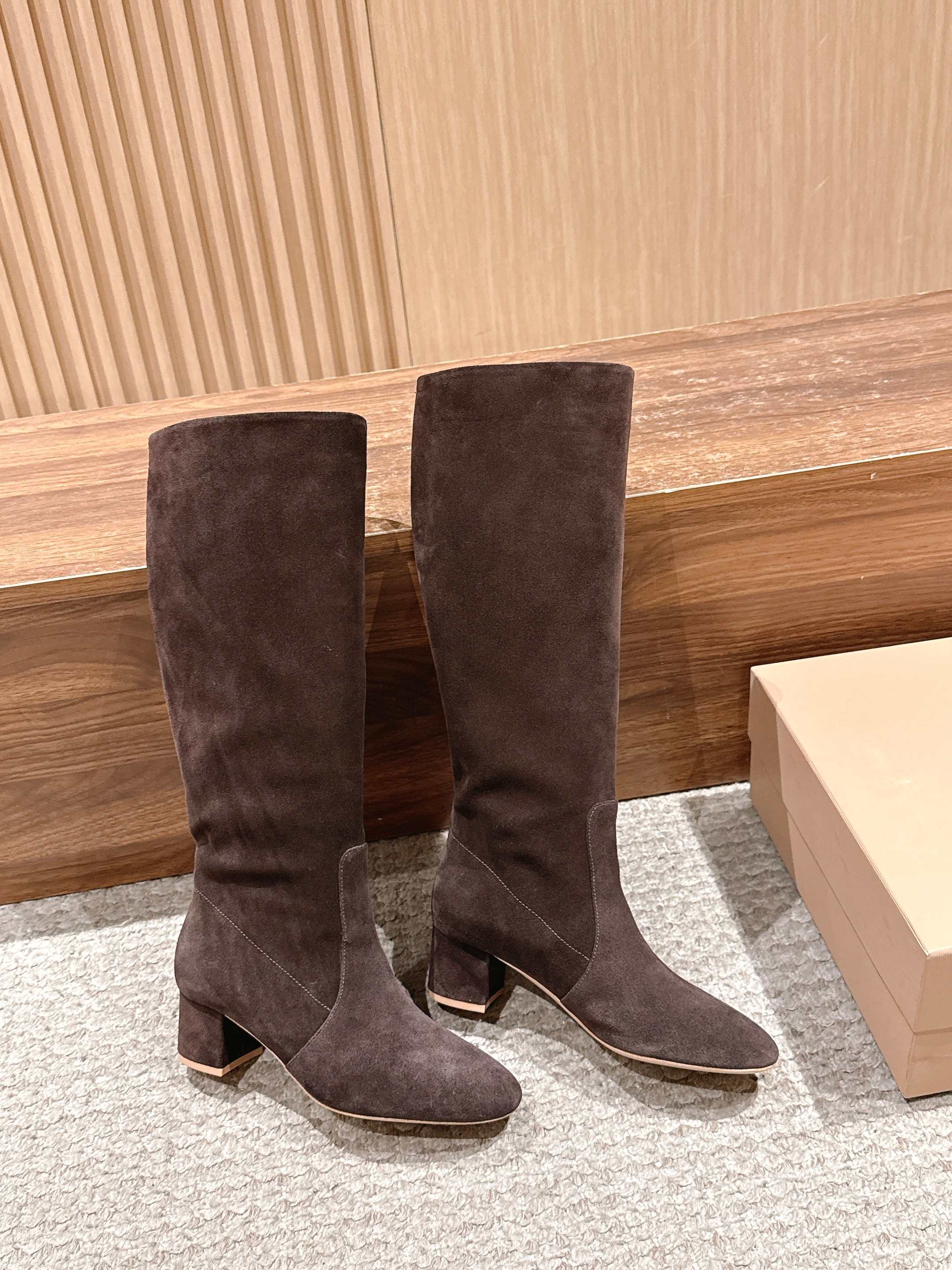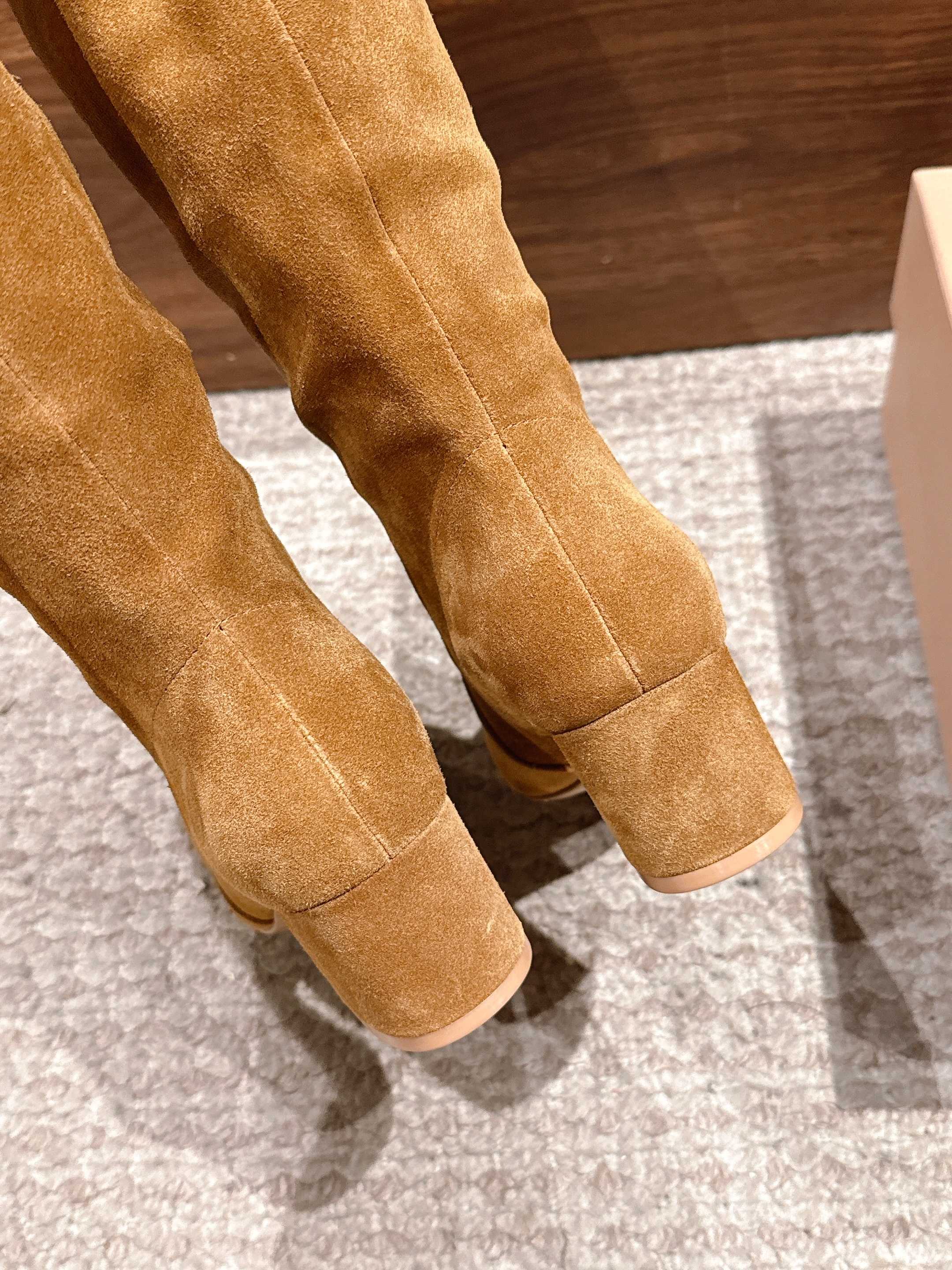 Gianvito Rossi 复古麂皮高跟堆堆靴 采用绒面革材质,质感细腻,呈现出高级的哑光效果,且不同颜色的绒面革在视觉和触觉上都极具质感。高跟长靴,靴筒较高,能够很好地修饰腿部线条;鞋跟为粗跟设计,兼具稳定性与时尚感,提升气场的同时也保证了行走的舒适度。 鞋头为方头设计,简约大气,符合当下的时尚潮流,同时也能容纳不同脚型;整体设计简约利落,没有过多繁杂的装饰,凸显出经典与优雅的风格,易于搭配各种服饰,无论是裙装还是裤装都能展现出不俗的时尚品味。 鞋面:胎牛反绒 内里:单里 大底:真皮大底注塑 增高:9cm Size:35-41码(40/41订做不退换)