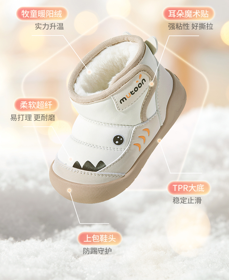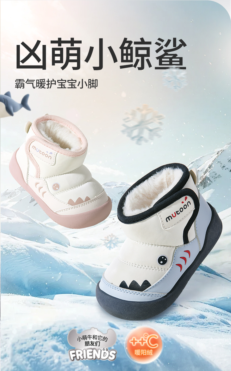牧童保暖加绒机能棉鞋子2025冬季新款幼儿园鞋宝宝软底防滑运动鞋