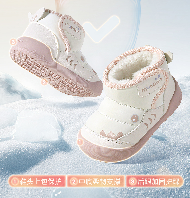 牧童2025冬季卡通保暖加绒学步鞋婴幼儿步前鞋新款宝宝软底机能鞋