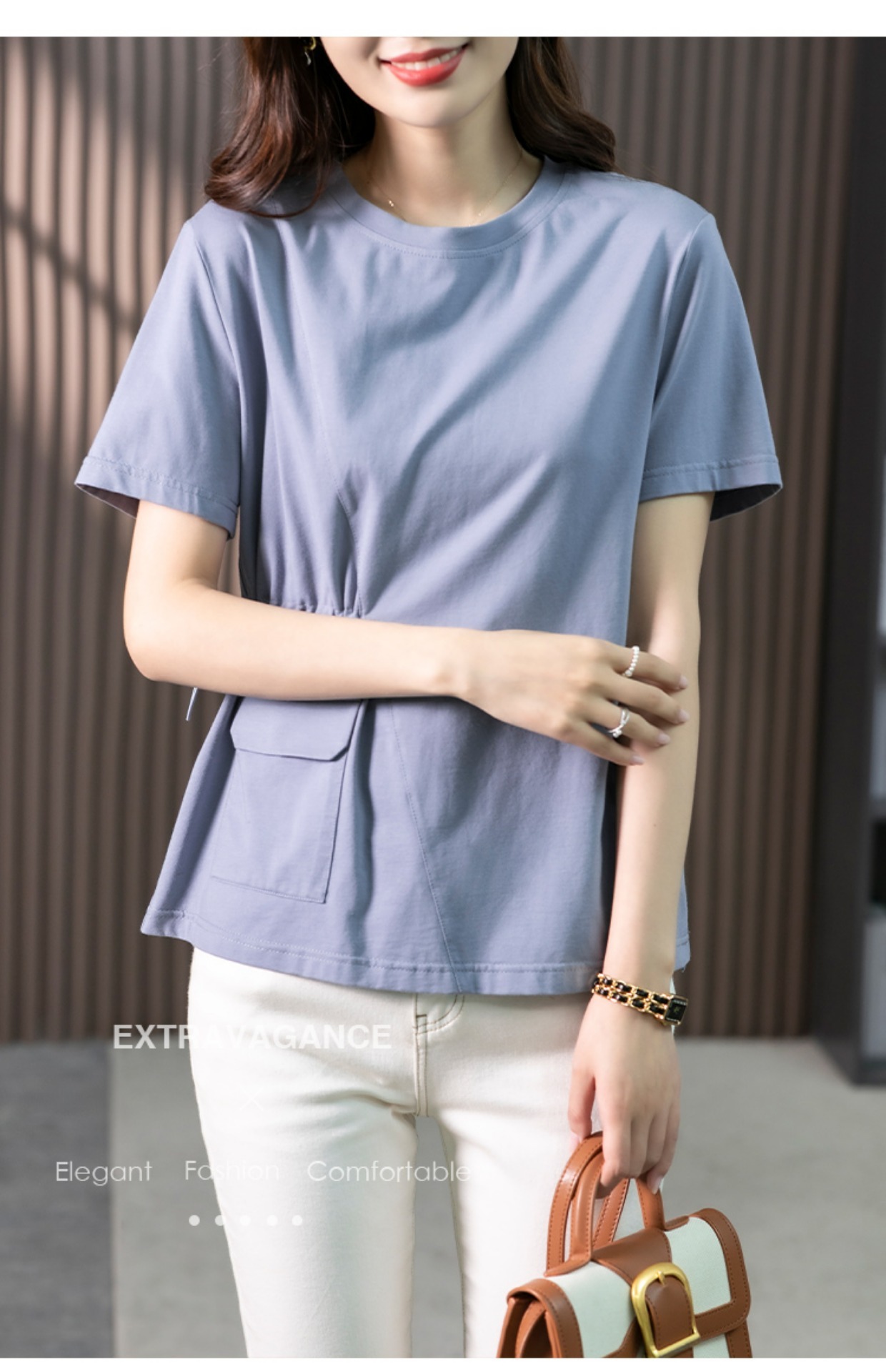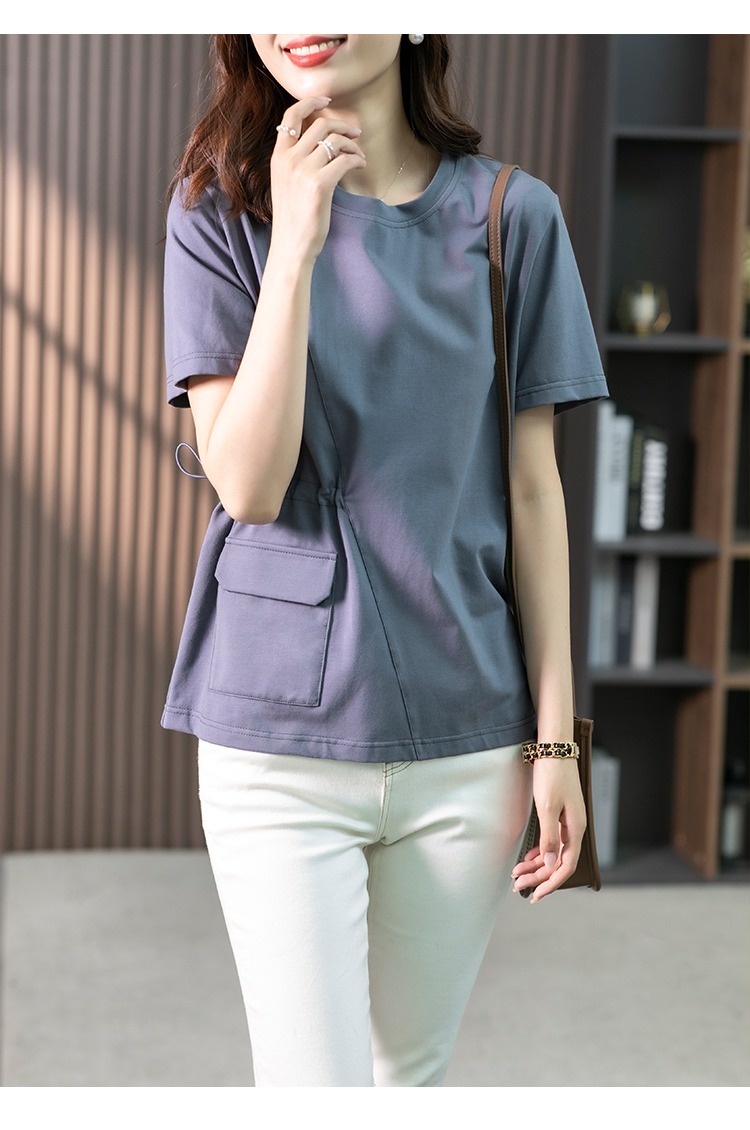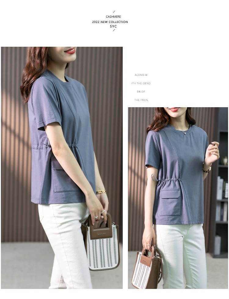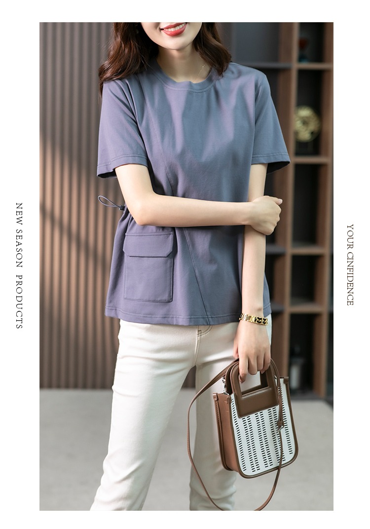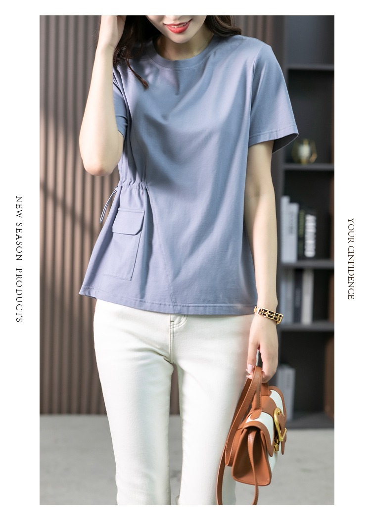 【现货7天】休闲短袖T恤女设计感小众2023夏季新款韩版收腰显瘦体恤上衣