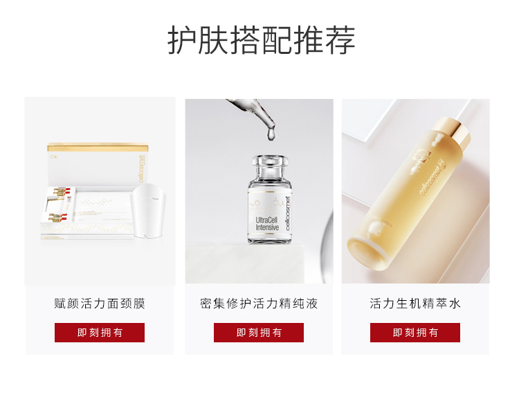 - 自1987年创立之初, Cellcosmet瑞妍便展现出瑞士化妆品科学的卓越性,并稳稳确立了该领域的黄金标准。位于瑞士的塞利普实验中心已在日内瓦湖畔潜心研发四十余年,致力于不断更新焕肤配方的功效。