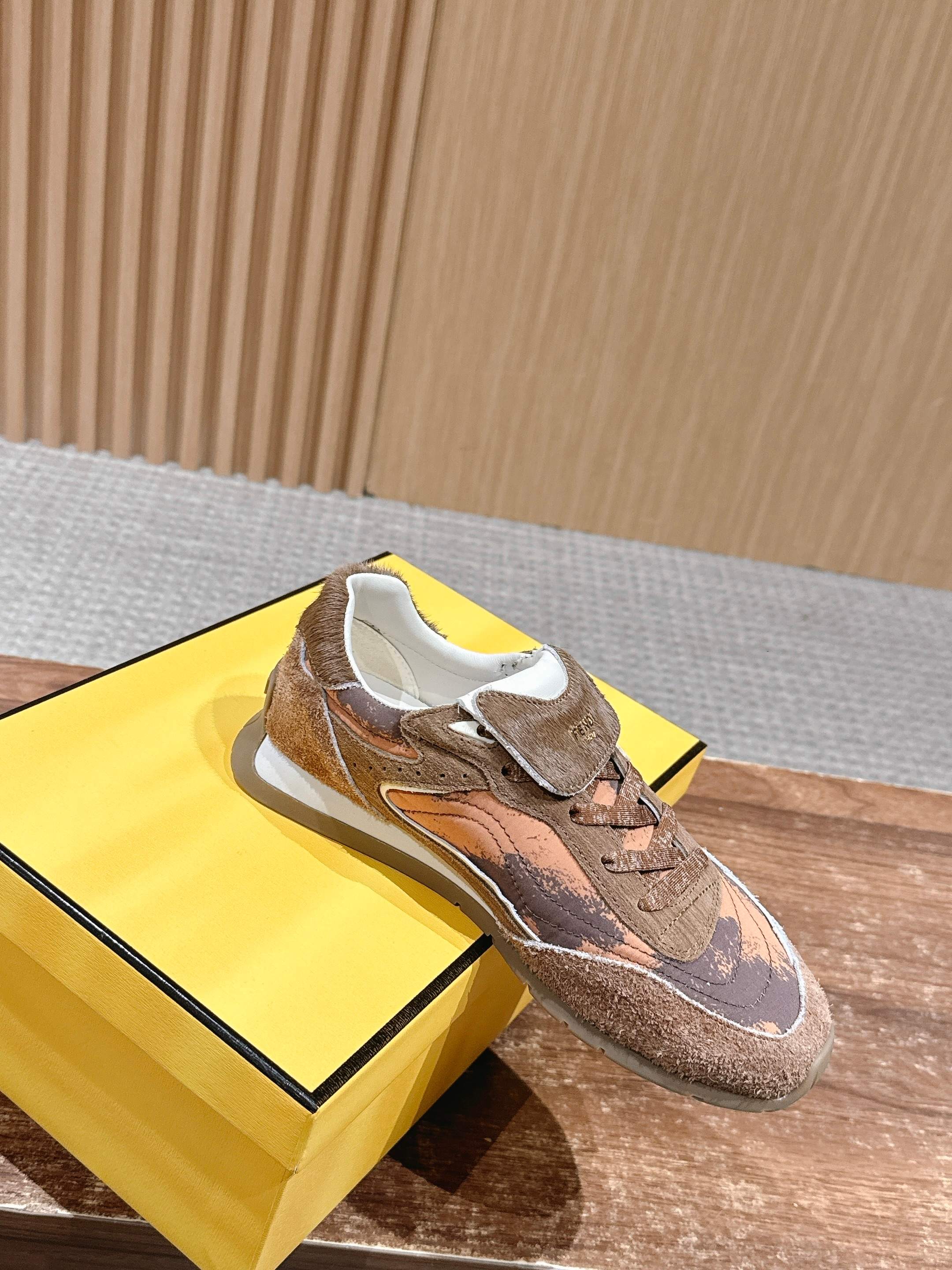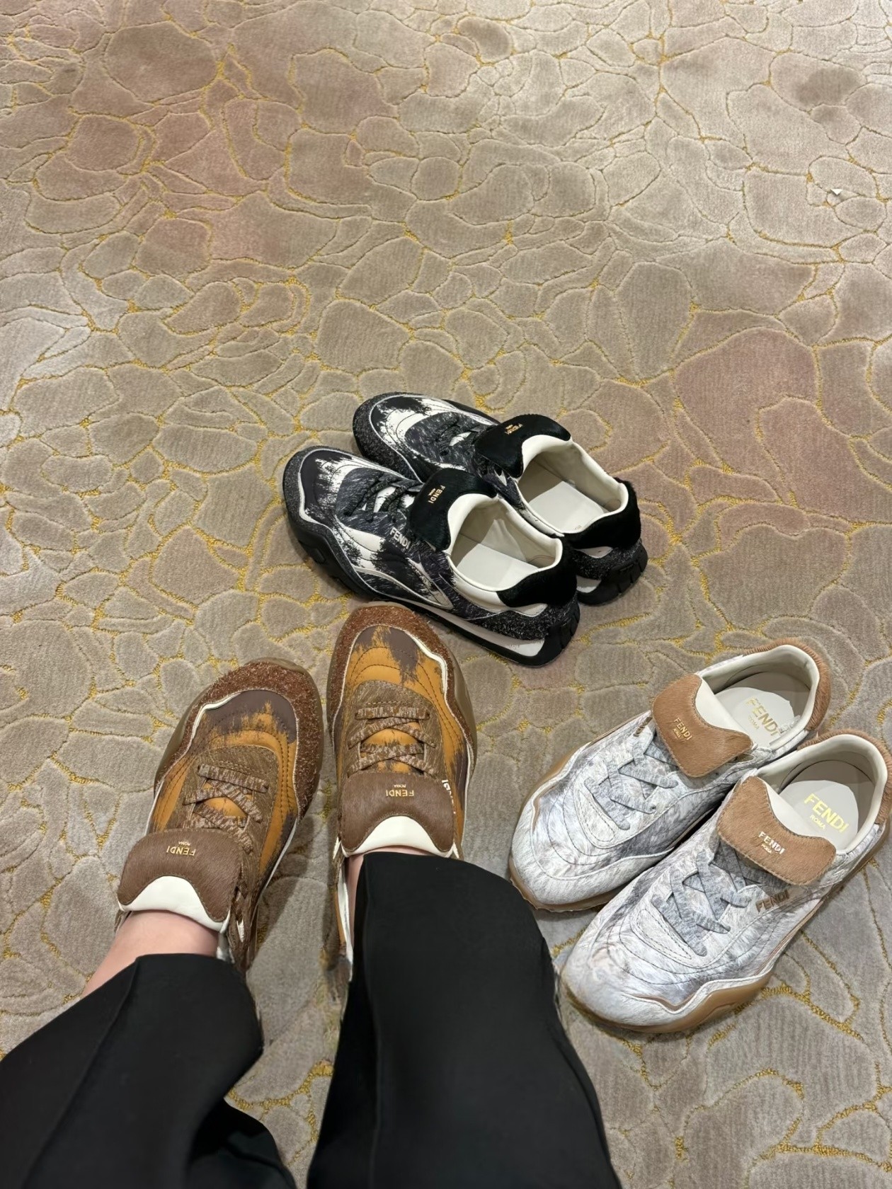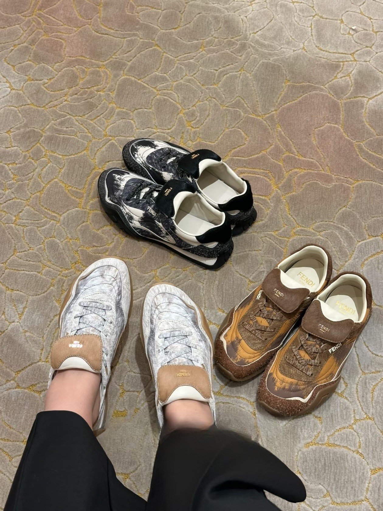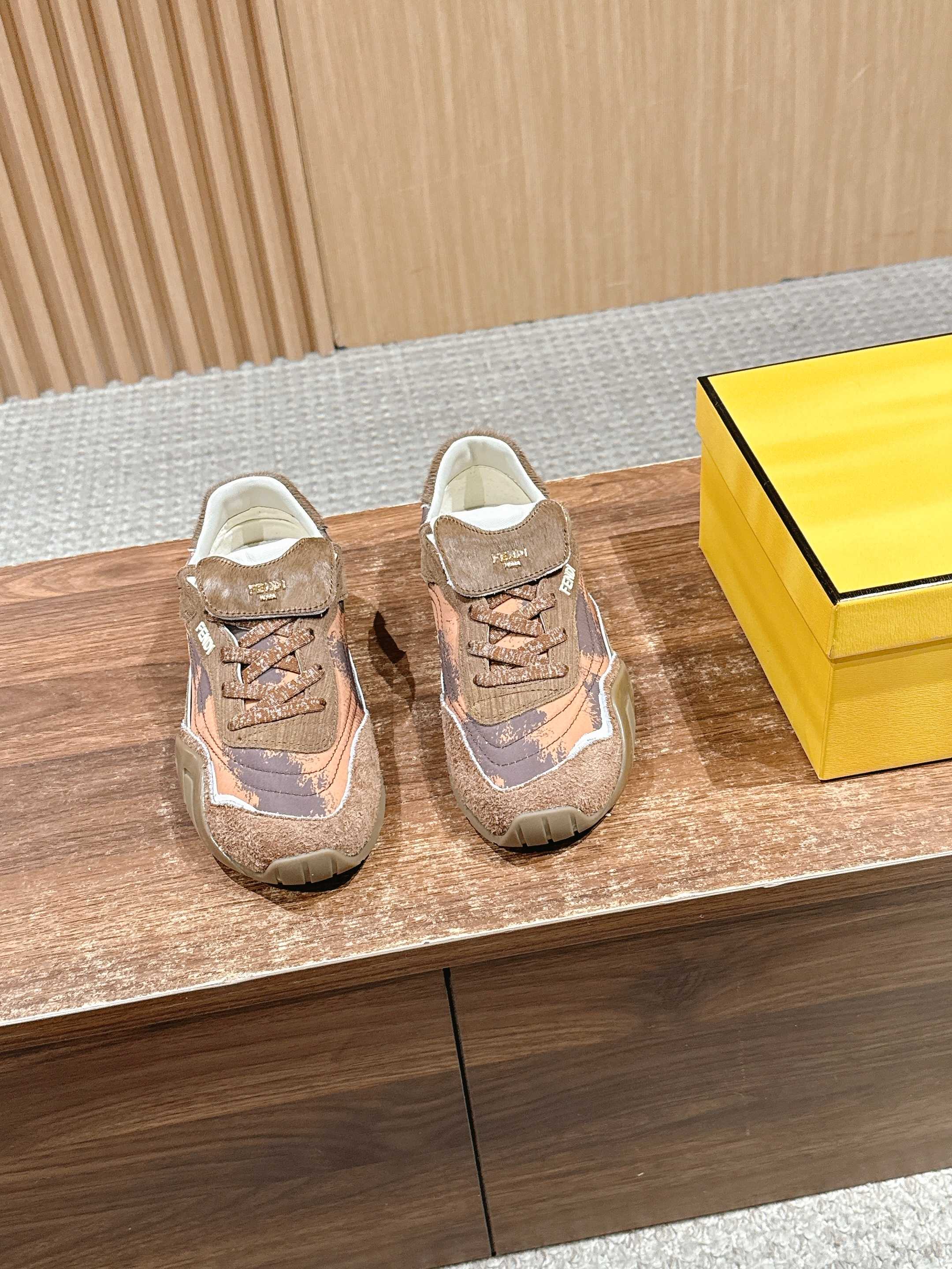 𝐅𝐄𝐍𝐃𝐈 芬迪新款复古风平底运动休闲鞋 鞋面是牛反绒+皮革拼接,自带做旧纹理,质感高级还显独特;鞋舌有FENDI标识,细节处藏着品牌辨识度。圆头+魔术贴搭扣,穿脱方便且适配不同脚型; 鞋型偏宽松,对脚宽/脚胖包容度高,同时视觉显脚小;配色是低饱和复古色系,自带松弛的“老钱风”调性。鞋底是轻质橡胶底,软弹不累脚,日常通勤或者逛街都适配;风格兼容复古、休闲、轻熟风,搭牛仔裤、西装裤、连衣裙都不违和。 鞋面:牛皮 内里:羊皮 大底:原版开模大底 增高:3cm Size:35-39码(40定制不退换)
